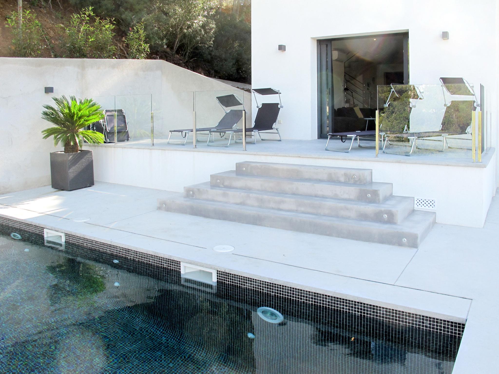Modern house "Sa Punta", built in 2018. 1.2 km from the centre of Playa de Pals, 48 km from the centre of Gerona, 137 km from the centre of Barcelona, on a slope, 400 m from the sea, 400 m from the beach. Private: property 850 m2 with wildlife garden, swimming pool (8 x 4 m, seasonal availability: 01.Jan. - 31.Dec.). Stepped path to the house. Parking (for 2 cars) on the premises, single garage. Supermarket 1 km, bus stop "Pals" 7 km, sandy beach "Playa de Pals" 400 m.