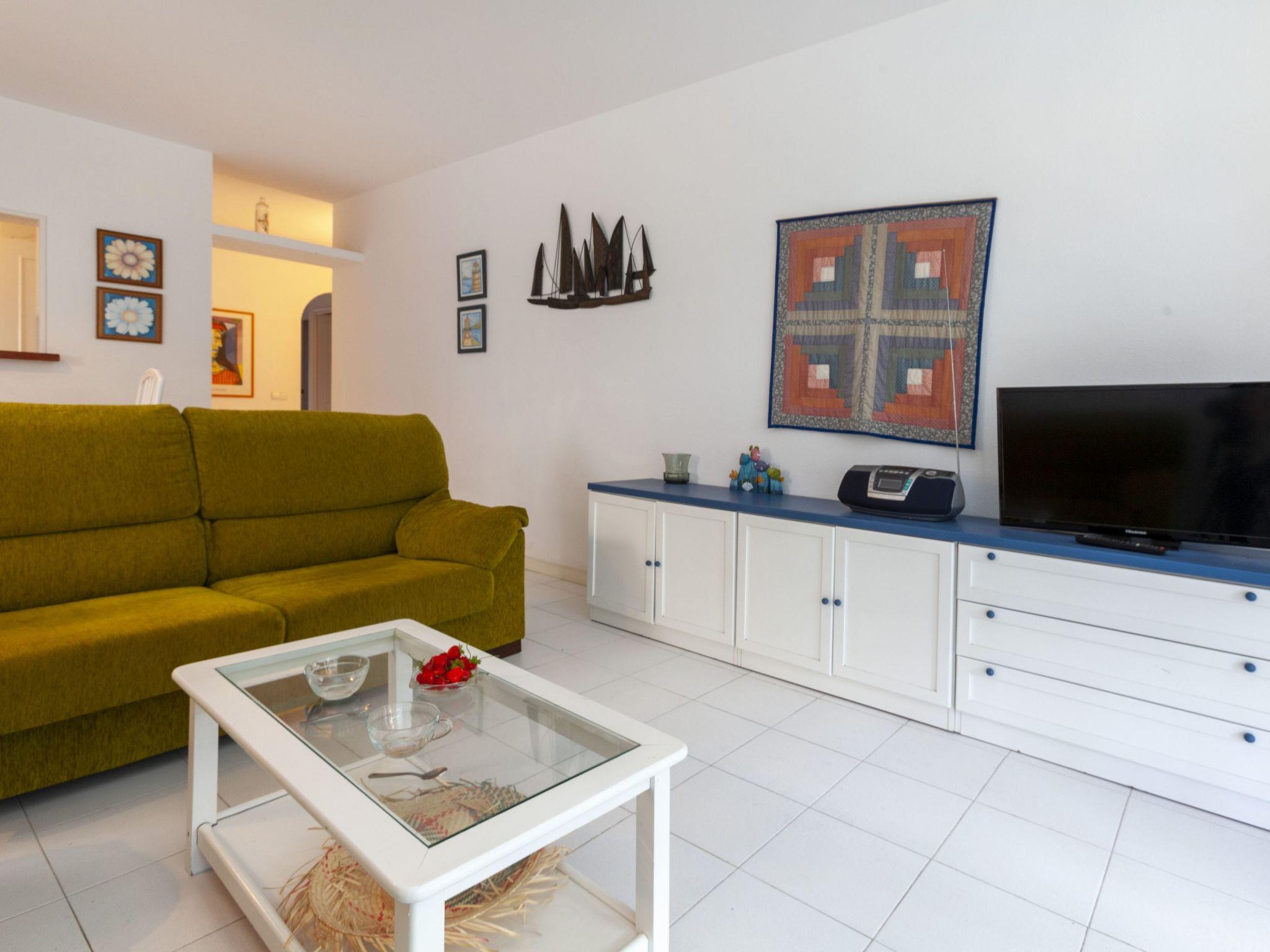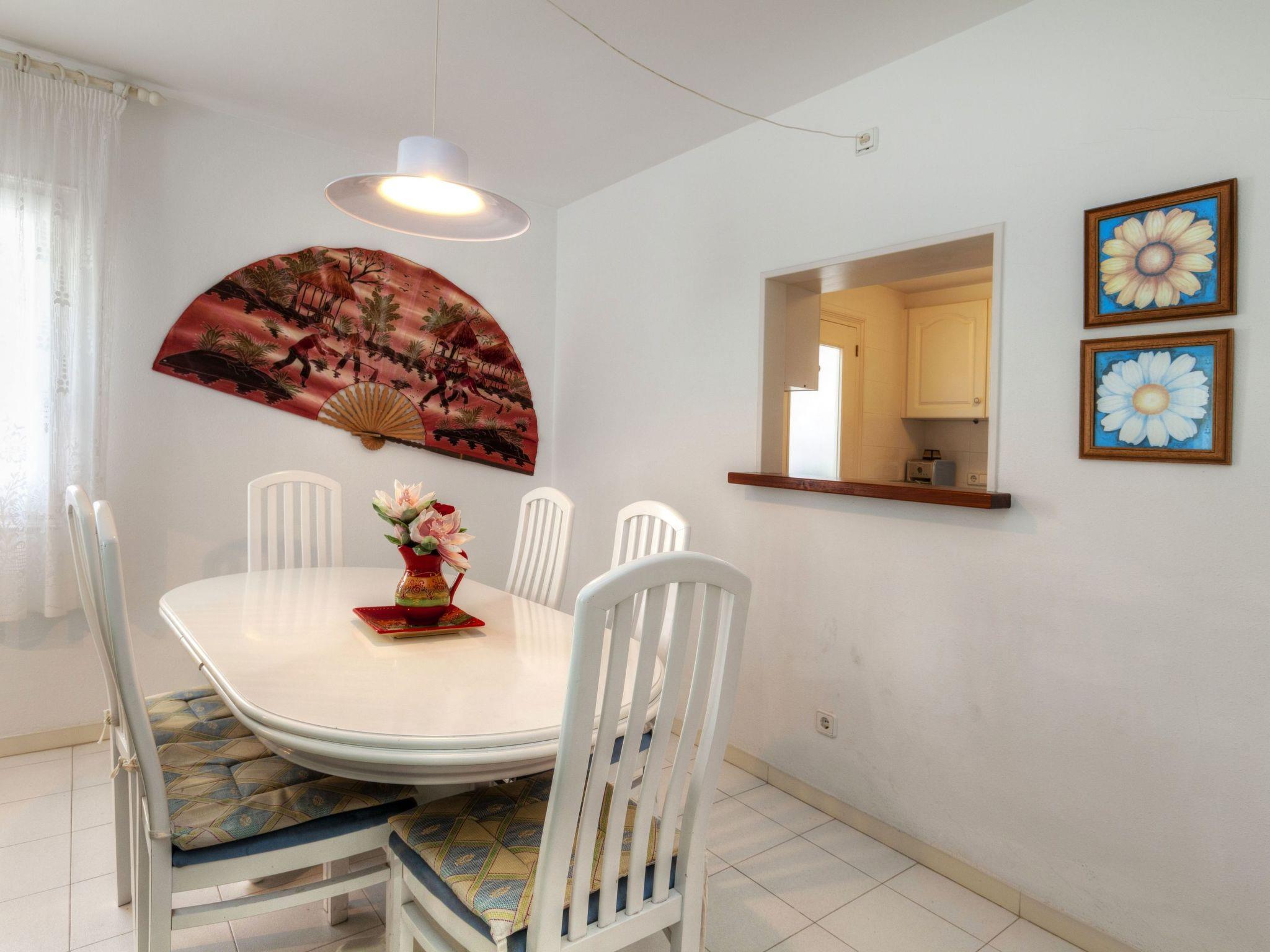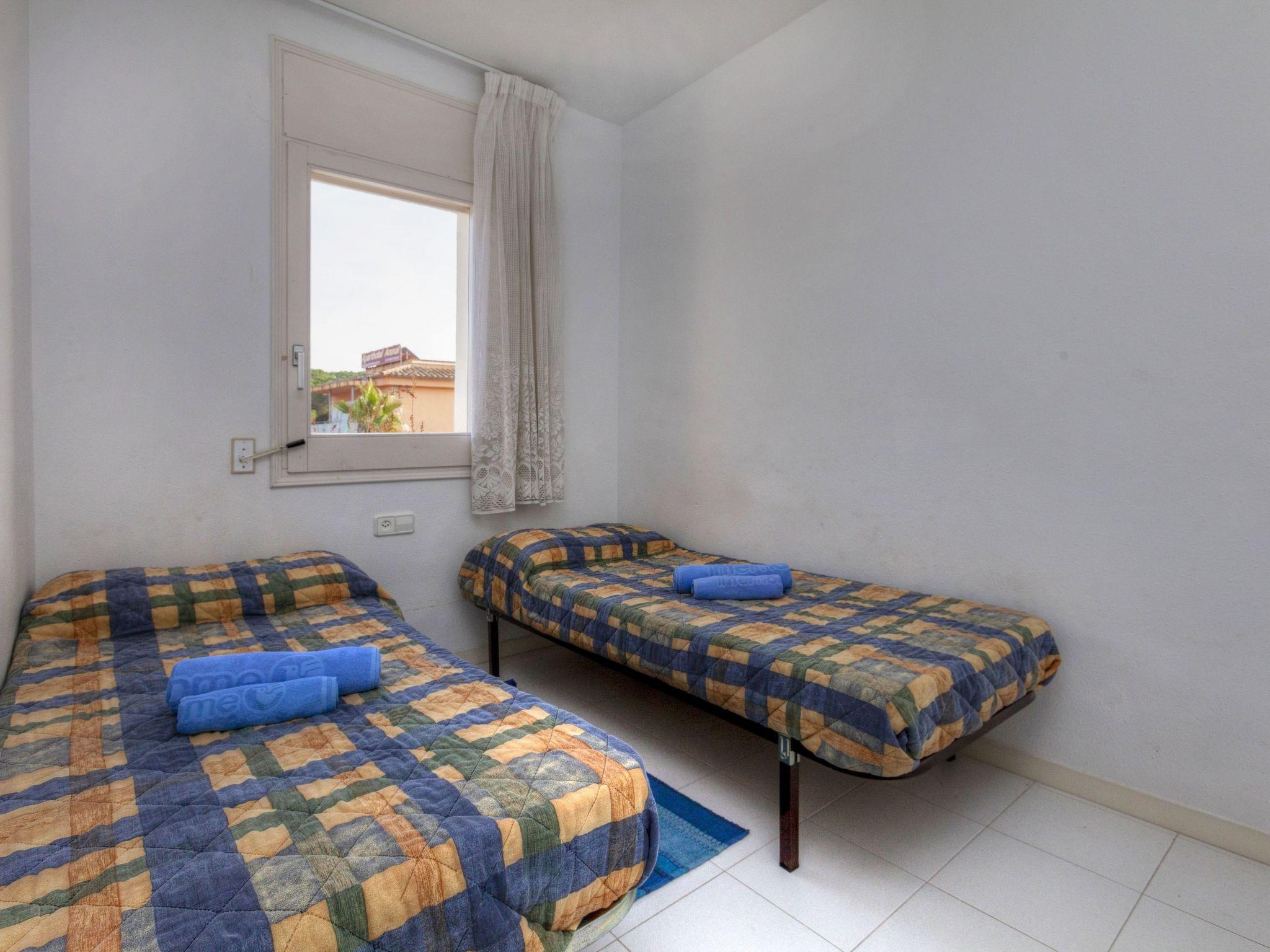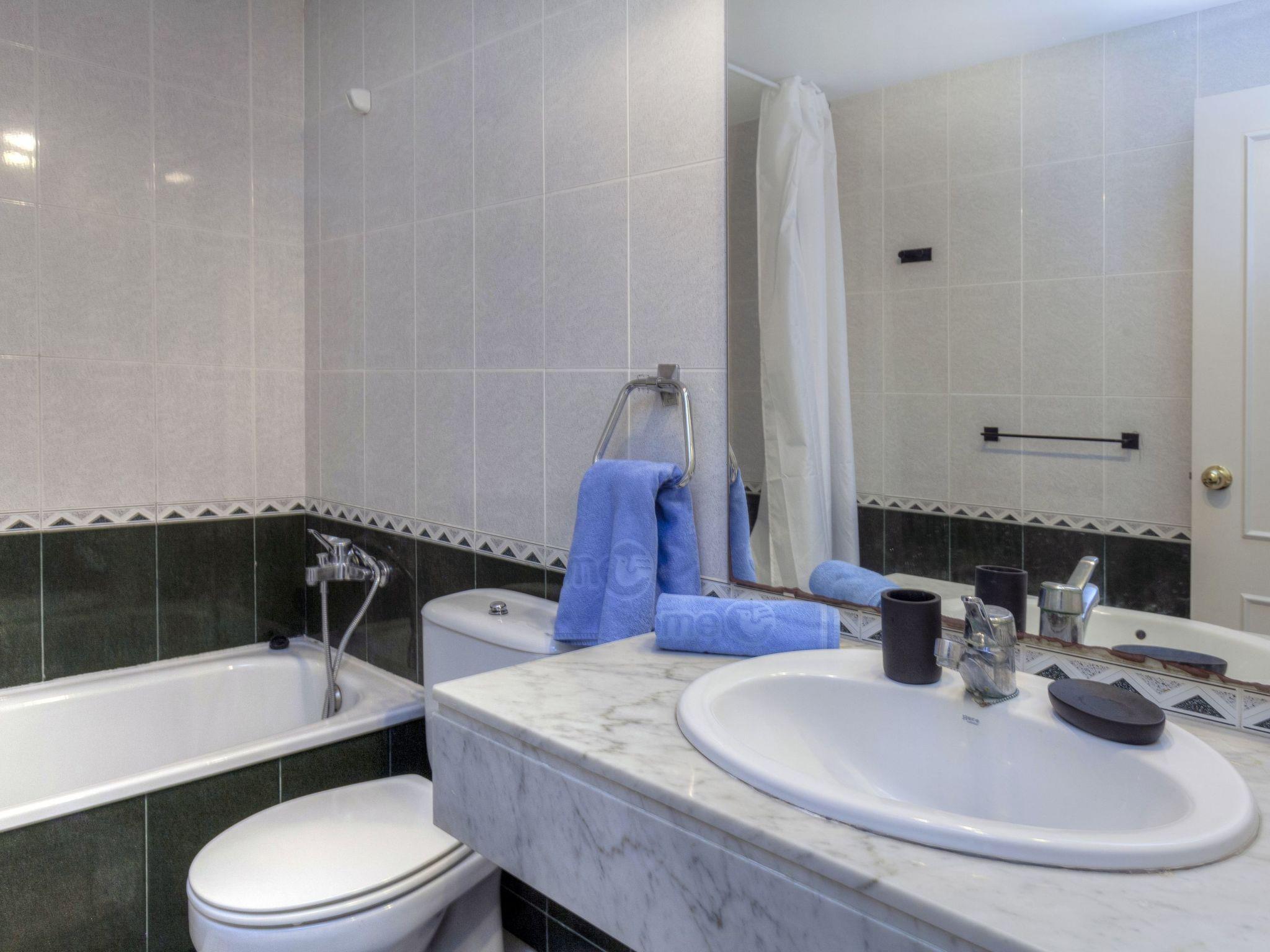 "Golf Royal Delta", 4-room apartment 70 m2 on 1st floor. Practical furnishings: living/dining room with dining table and digital TV. Exit to the terrace. 1 room with 1 french bed (135 cm, length 190 cm), bath/bidet/WC. 1 room with 2 beds (80 cm, length 195 cm). 1 room with 1 double bed (2 x 80 cm, length 185 cm). Kitchen (oven, 4 ceramic glass hob hotplates, toaster, kettle, microwave, freezer, electric coffee machine). Bath/WC. No heating option. Terrace. Terrace furniture. View of the swimming pool. Facilities: washing machine, iron, children's high chair, baby cot for up to 2 year olds, hair dryer. Parking space n (mismo Nº Apart). Please note: non-smokers only. TV only ES. HUTG-009485 // Reg. Nr.: ESFCTU00001700700001073200000000000000000HUTG-0094851
