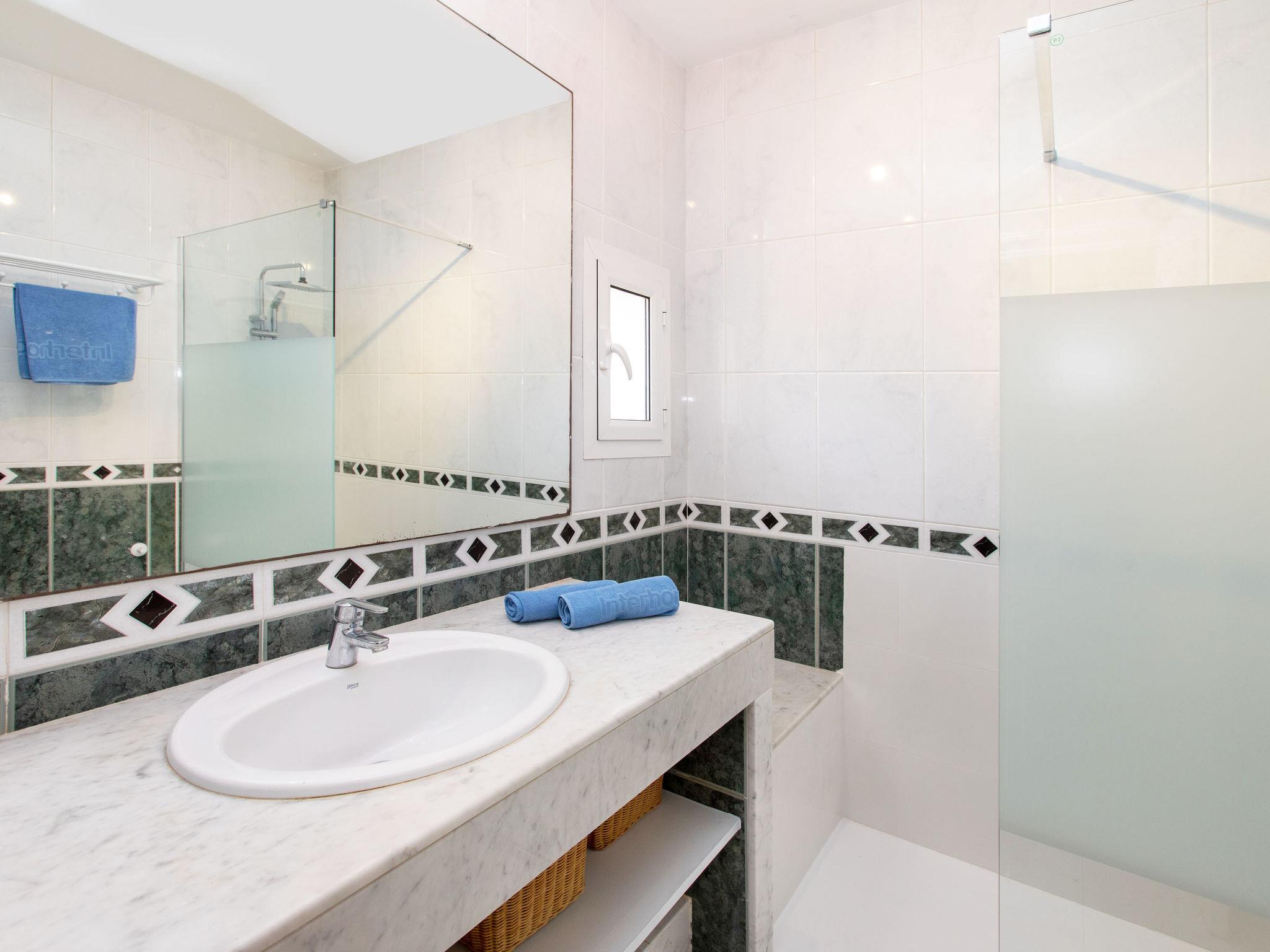 "Trebol Blanco", 3-room terraced house 80 m2 on 2 levels. Practical furnishings: living/dining room with digital TV and fan. Exit to the patio. Open kitchen (oven, dishwasher, 3 ceramic glass hob hotplates, microwave). Sep. WC. Boiler (100 litres). No heating option. Upper floor: 1 room with 1 french bed (150 cm, length 190 cm), fan. 1 room with 1 x 2 bunk beds (140 cm, length 190 cm), fan. Bath/WC. Patio. Terrace furniture. Facilities: washing machine, children's high chair, baby cot, hair dryer. Internet (WiFi, free). Parking (1 car). Please note: TV only ES. HUTG-003154 // Reg. Nr.: ESFCTU00001700700018358000000000000000000HUTG-0031544