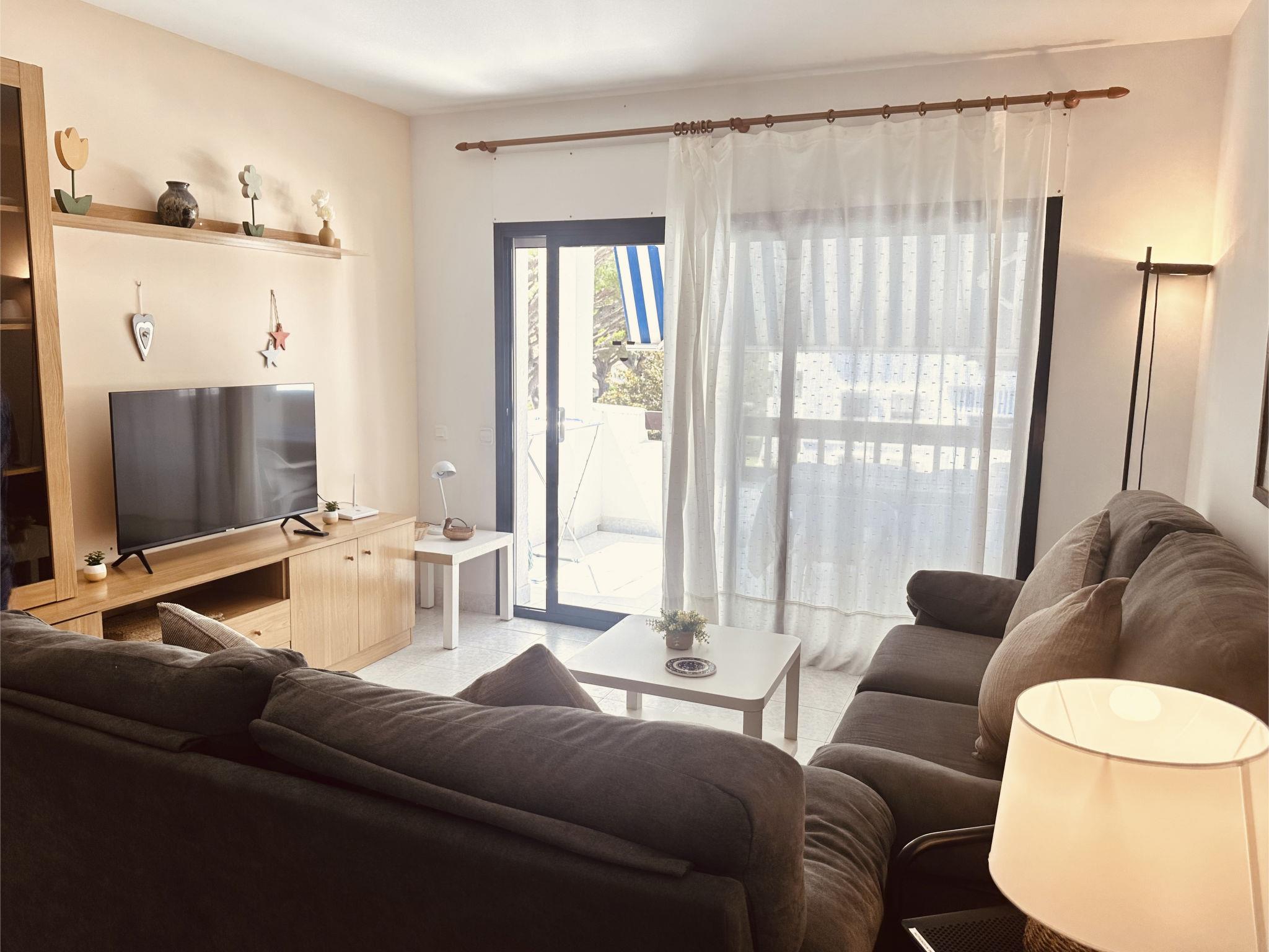"Nautic Golf C III", 3-room apartment 65 m2. Practical furnishings: living/dining room with dining table and digital TV. Exit to the terrace. 1 room with 1 french bed (145 cm, length 190 cm). 1 room with 1 pull-out bed (2 pers. 2 x 90 cm, length 190 cm). Open kitchen (oven, dishwasher, 3 ceramic glass hob hotplates, microwave). Bath/WC. Boiler (100 litres). No heating option. Terrace. Terrace furniture. View of the swimming pool. Facilities: washing machine, iron, children's high chair, baby cot, hair dryer. Internet (WiFi, free). Parking space n C301 Exterior. Please note: TV only ES. TV smart. HUTG-003334 // Reg. Nr.: ESFCTU00001700700014510600000000000000000HUTG-0033342