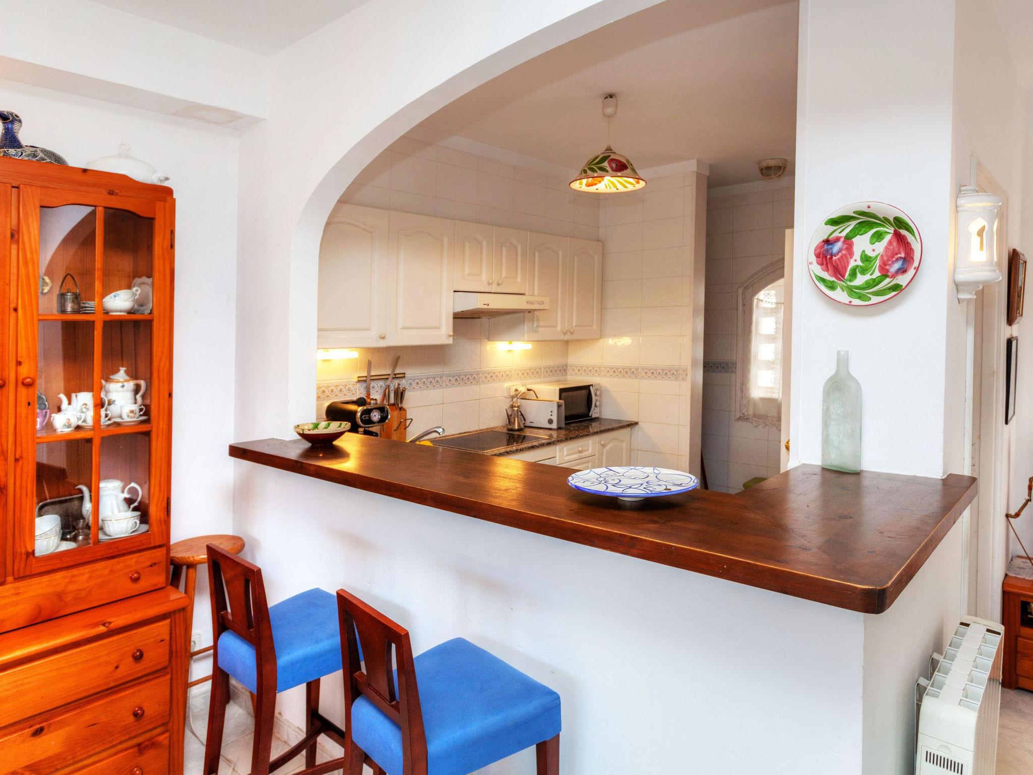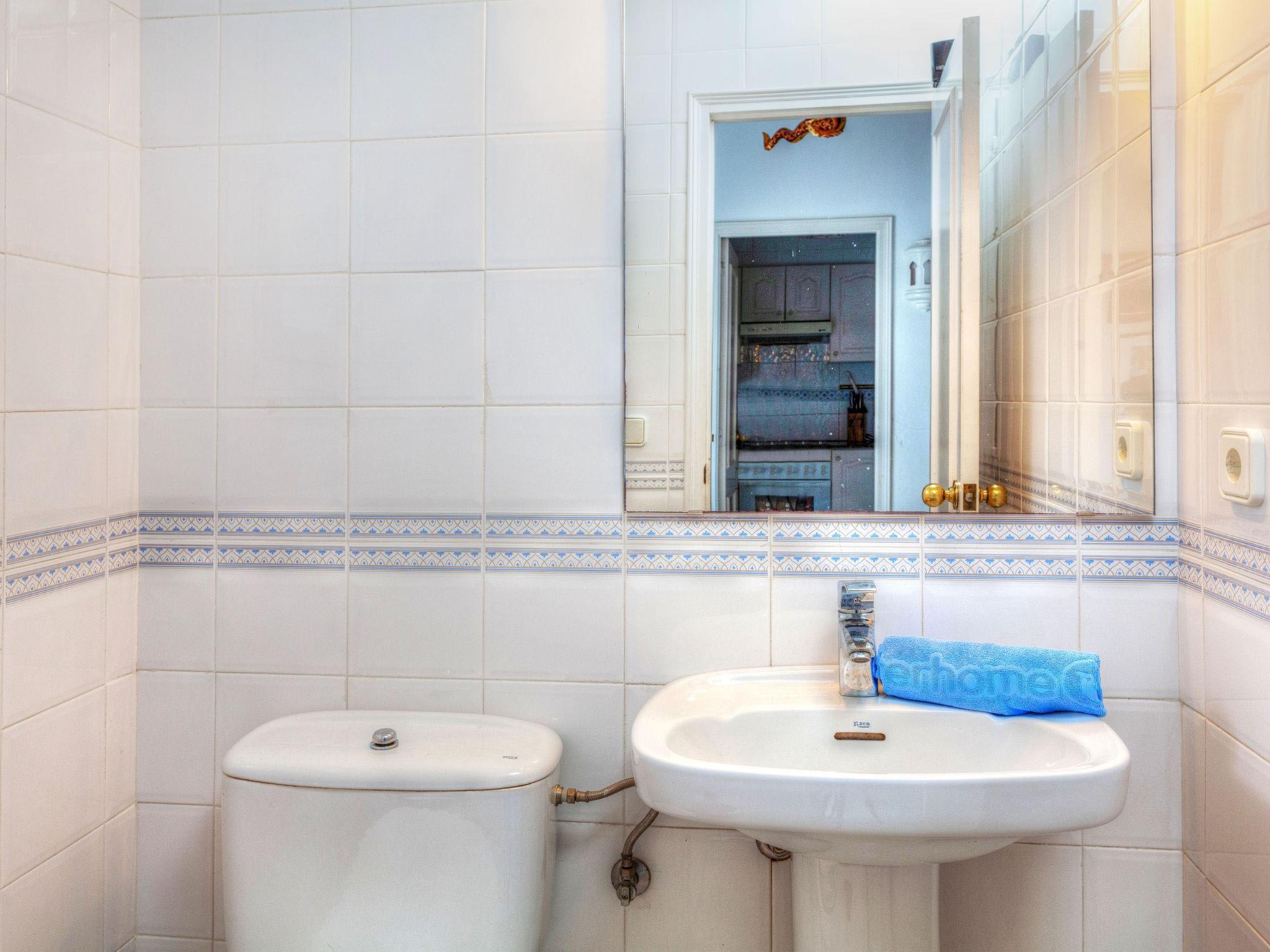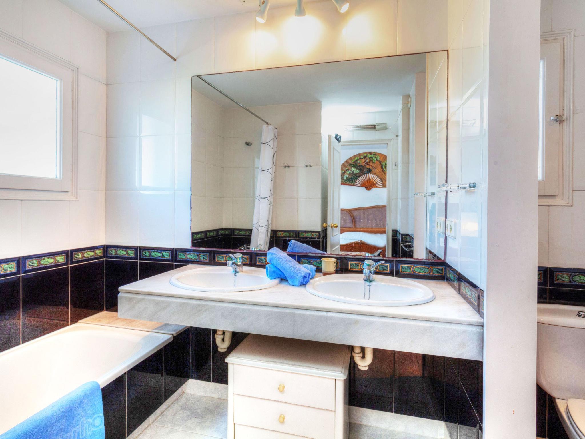 "La Reserva I", 4-room terraced house 90 m2 on 2 levels. Practical furnishings: living/dining room with open-hearth fireplace, digital TV and boiler (150 litres). Exit to the patio. Open kitchen (oven, dishwasher, 4 ceramic glass hob hotplates, microwave, electric coffee machine). Sep. WC. Upper floor: 1 room with 2 beds (90 cm, length 190 cm). Exit to the balcony. 1 room with 1 double bed (2 x 80 cm, length 190 cm), bath/bidet/WC. Exit to the balcony. 1 room with 2 beds (90 cm, length 190 cm). Bath/WC. Small patio. Terrace furniture, barbecue, deck chairs. Facilities: washing machine, iron, children's high chair, baby cot, hair dryer. Internet (WiFi, free). Parking space n 17 (1 car). Please note: TV only ES. HUTG-007626 // Reg. Nr.: ESFCTU00001700700007987600000000000000000HUTG-0076264