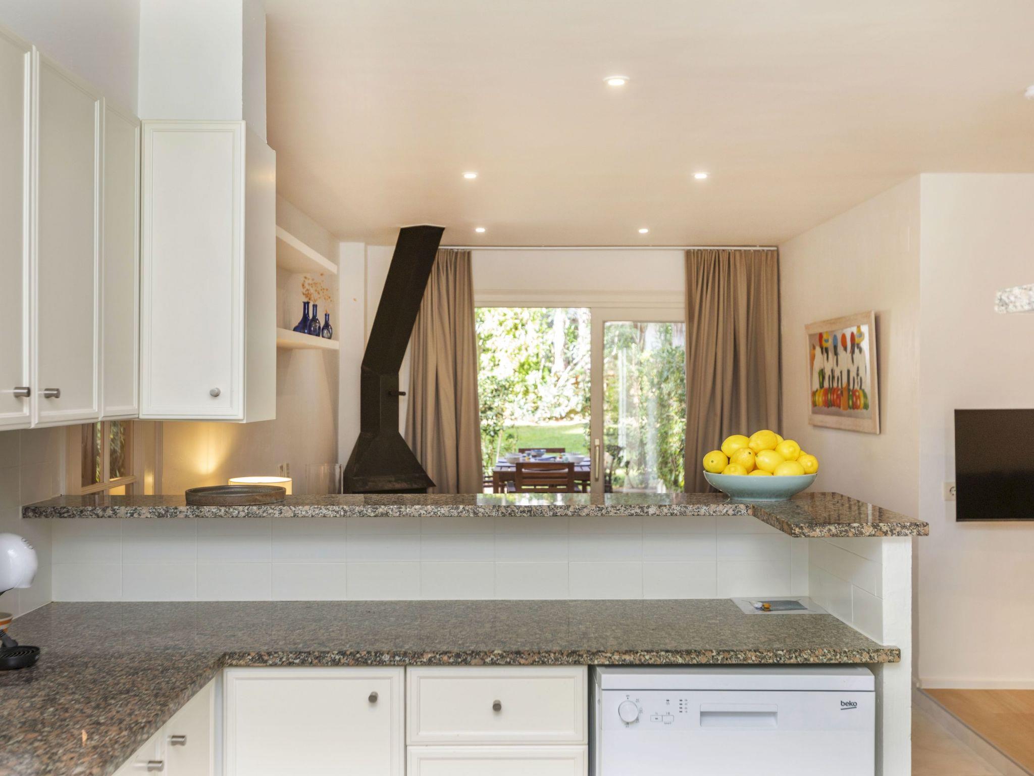 "Country Club family garden big terrace", 4-room apartment 88 m2, on the upper ground floor. Practical and beautiful furnishings: living/dining room with open-hearth fireplace (only for decoration), satellite TV. Exit to the terrace. 1 room with 1 french bed (160 cm, length 200 cm), fan. 1 room with 2 beds (90 cm, length 200 cm), fan. 1 room with 1 french bed (180 cm, length 200 cm), fan. Open kitchen (oven, dishwasher, 3 induction hot plates, toaster, kettle, microwave, electric coffee machine). Bath/WC, shower/WC. Large terrace. Terrace furniture (2). Facilities: washing machine, iron, children's high chair, baby cot for up to 2 year olds, hair dryer. Internet (WiFi, free). Parking at the house. Please note: non-smoking house. HUTG-003370 // Reg. Nr.: ESFCTU00001700700007494900000000000000000HUTG-0033706