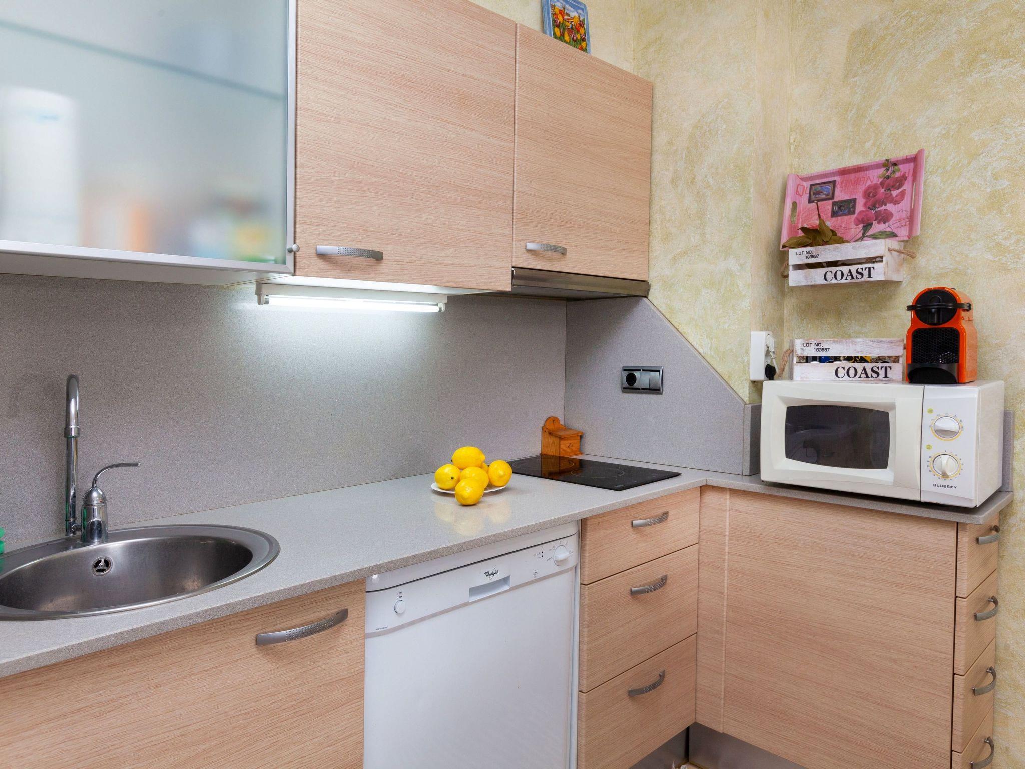 "Coto Gamo Holiday Escape", 3-room apartment 55 m2. Practical furnishings: living/dining room with digital TV. Exit to the patio. 1 room with 1 x 2 bunk beds (90 cm, length 180 cm). 1 room with 1 french bed (150 cm, length 195 cm), TV. Kitchenette (2 induction hot plates, microwave, electric coffee machine) with dining table. Bath/WC. Boiler (75 litres). No heating option. Patio. Terrace furniture. View of the swimming pool and the garden. Facilities: washing machine, iron, children's high chair, baby cot, hair dryer. Internet (WiFi, free). Parking space n Exterior at 250 m. Please note: TV only ES. HUTG-003133 // Reg. Nr.: ESFCTU00001700700034162100000000000000000HUTG-0031331