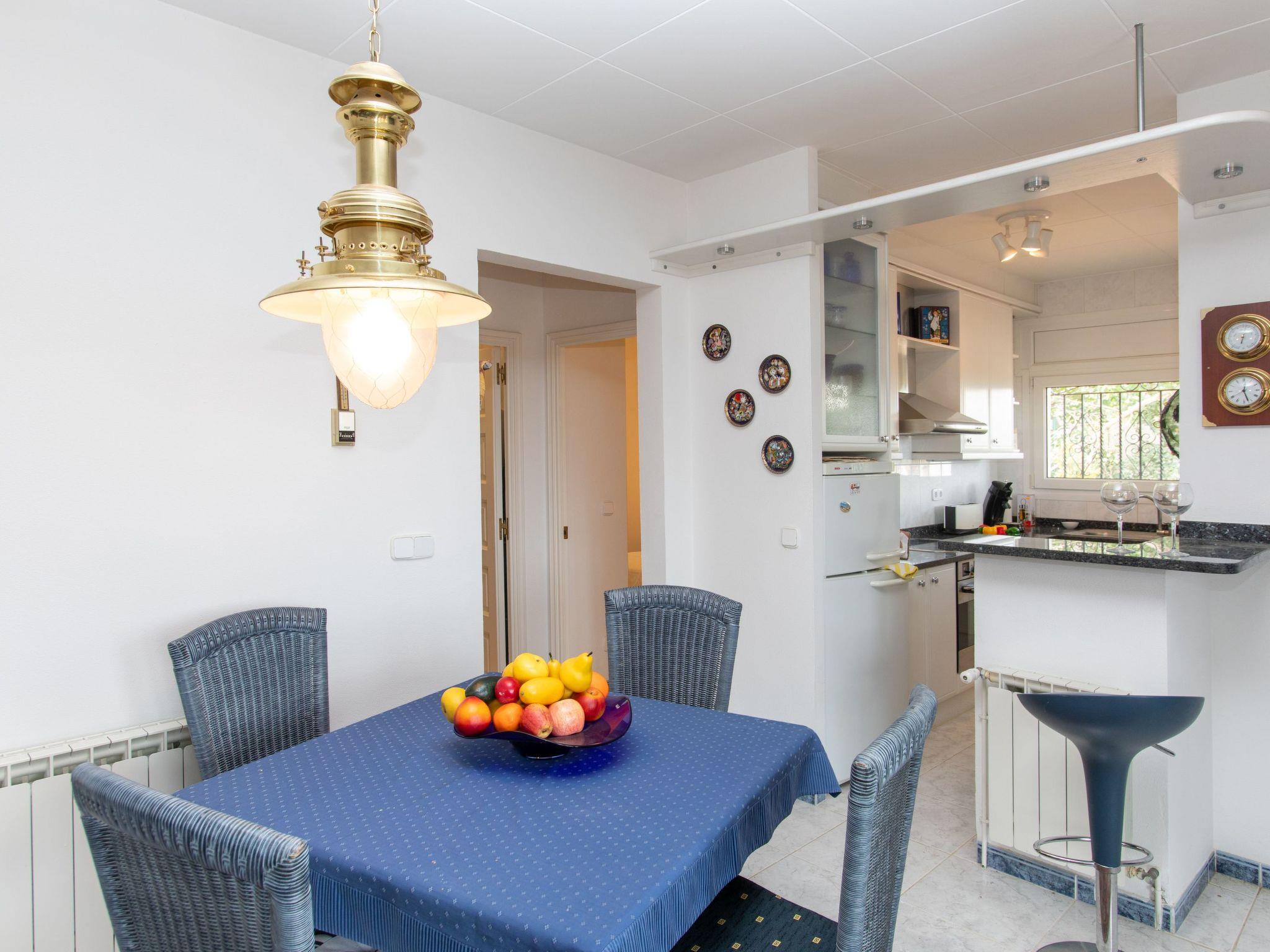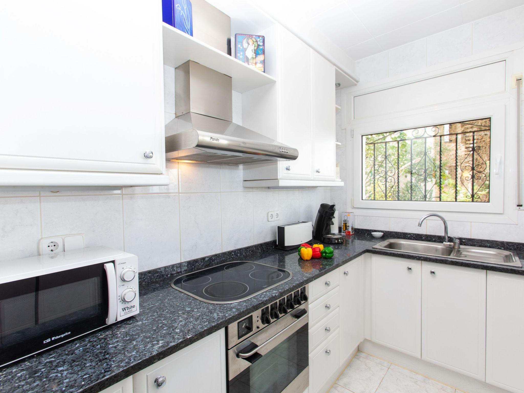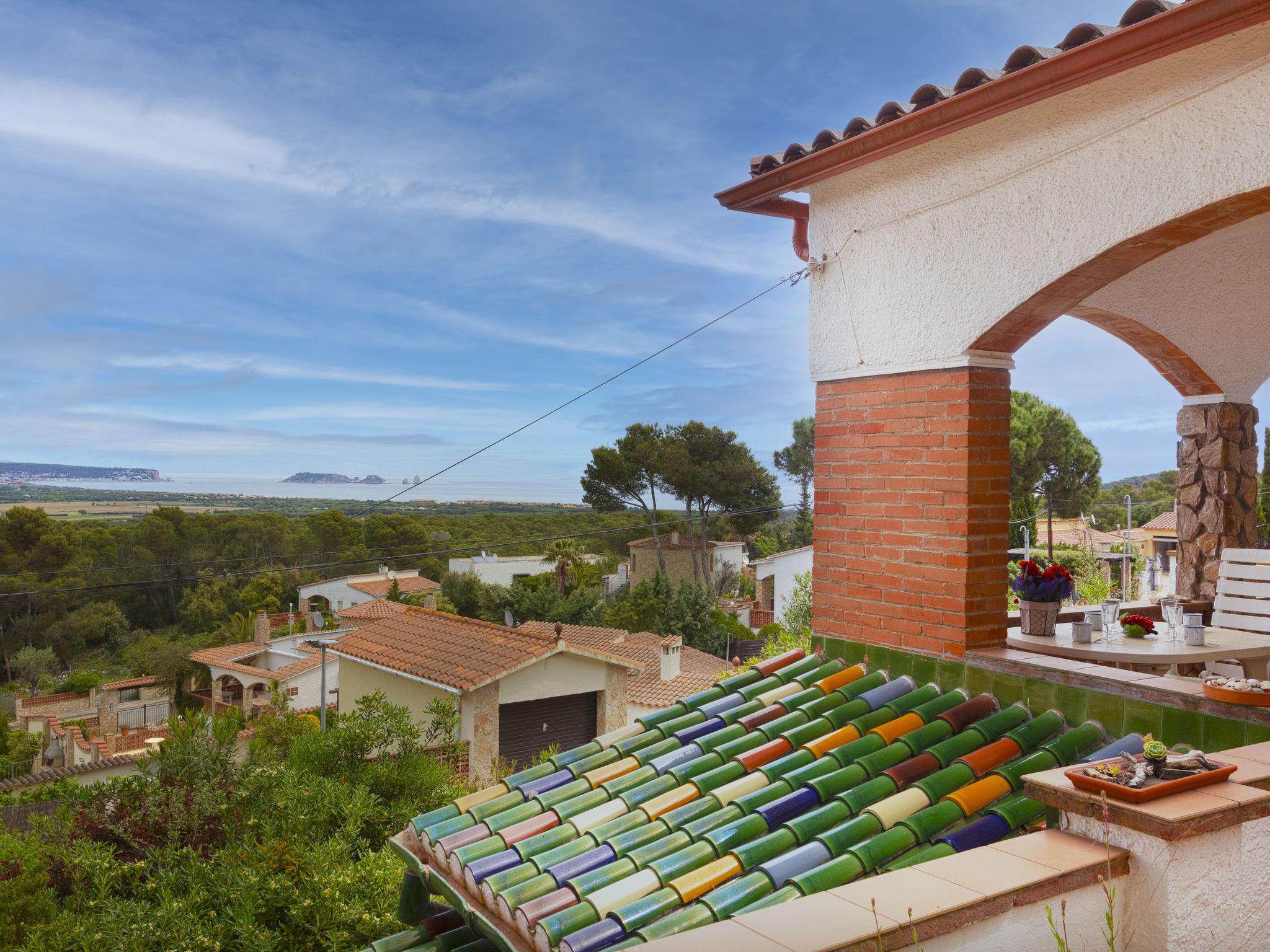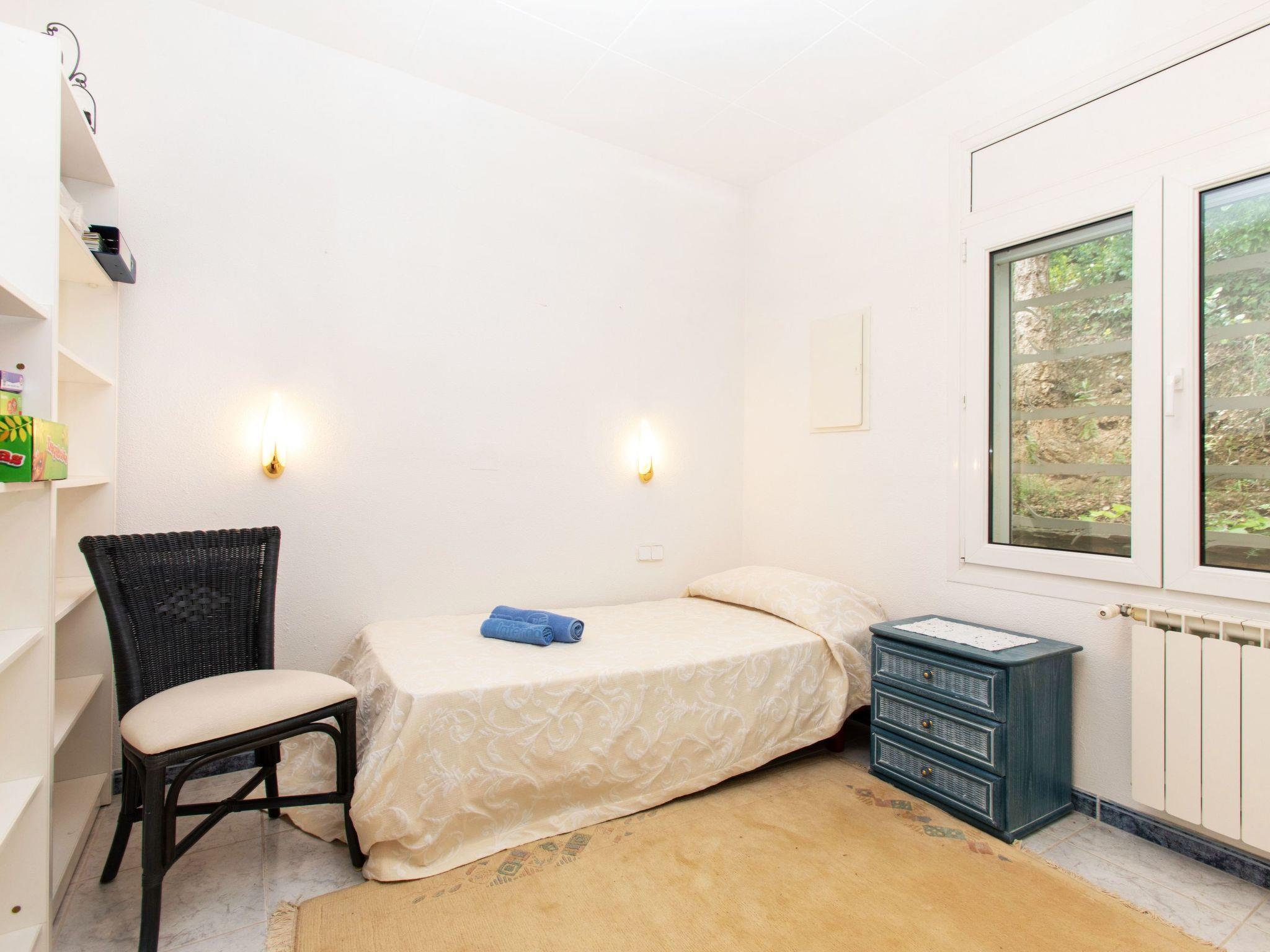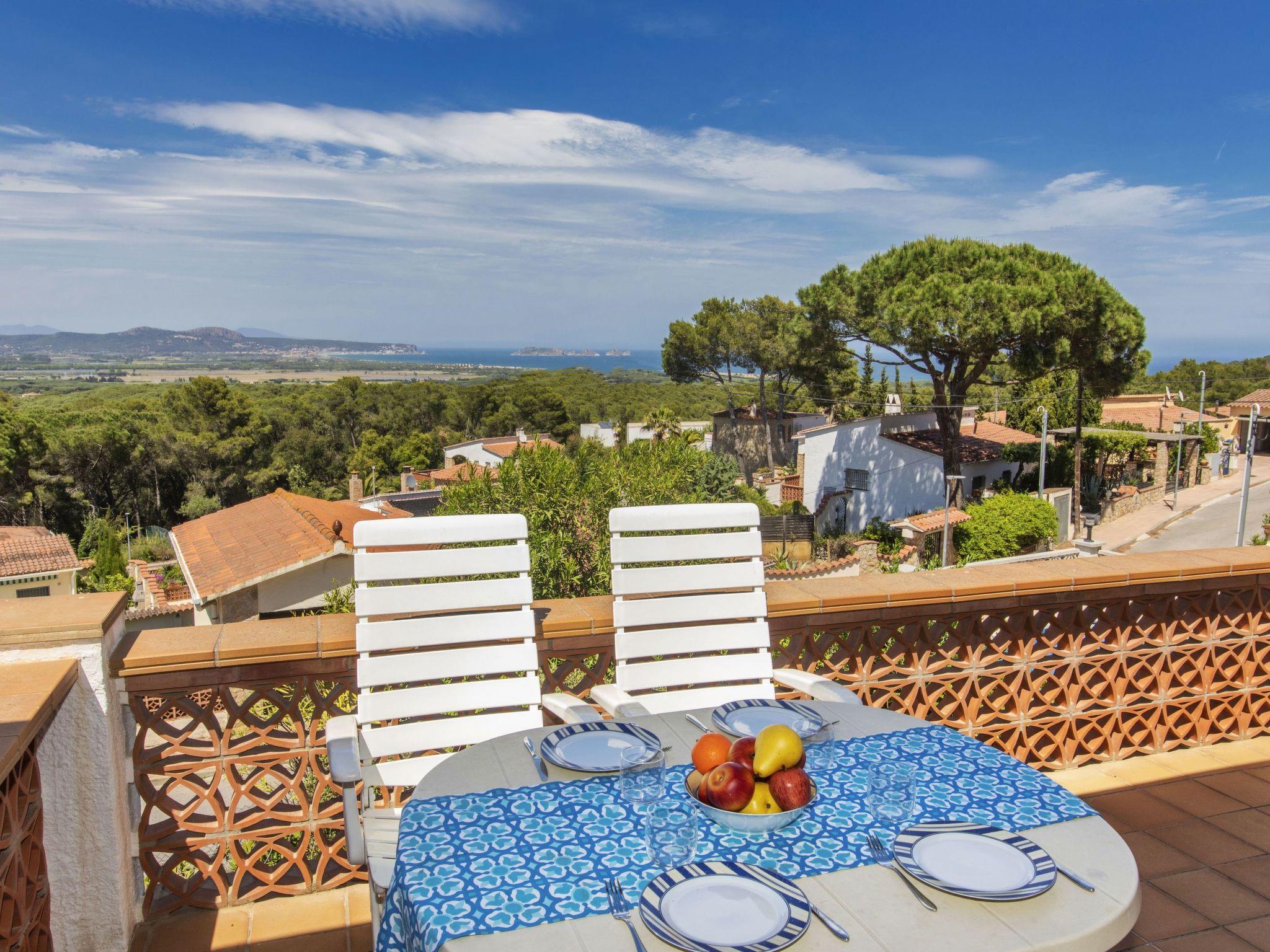 "Can Berta", 4-room house 150 m2 on 2 levels. Practical furnishings: living/dining room with digital TV. Exit to the terrace. 1 room with 1 french bed (150 cm, length 200 cm). 1 room with 2 beds (90 cm, length 200 cm). Kitchen (3 hot plates, oven, 4 ceramic glass hob hotplates, toaster, kettle, microwave, freezer, electric coffee machine). Shower/WC. No heating option. On the lower ground floor: 1 room with 2 beds (90 cm, length 200 cm), air conditioning. Shower/WC. Large terrace, patio. Terrace furniture, barbecue, deck chairs. Panoramic view of the sea, the mountains and the countryside. Facilities: washing machine, iron, children's high chair, baby cot, hair dryer. Internet (WiFi, free). Please note: TV only ES. No internal connecting door between the floors. HUTG-058498 // Reg. Nr.: ESFCTU00001700700024455700000000000000000HUTG-0584981