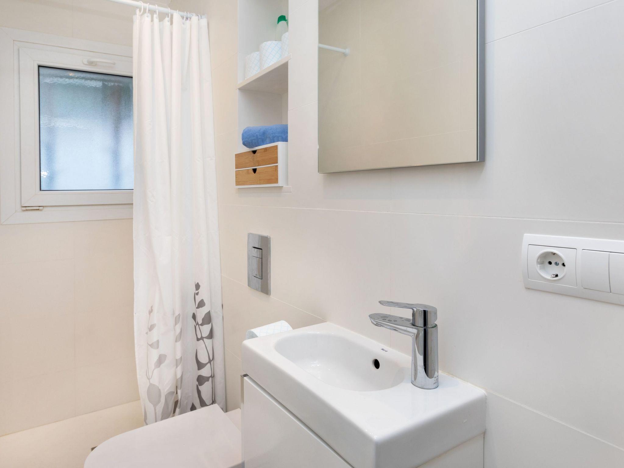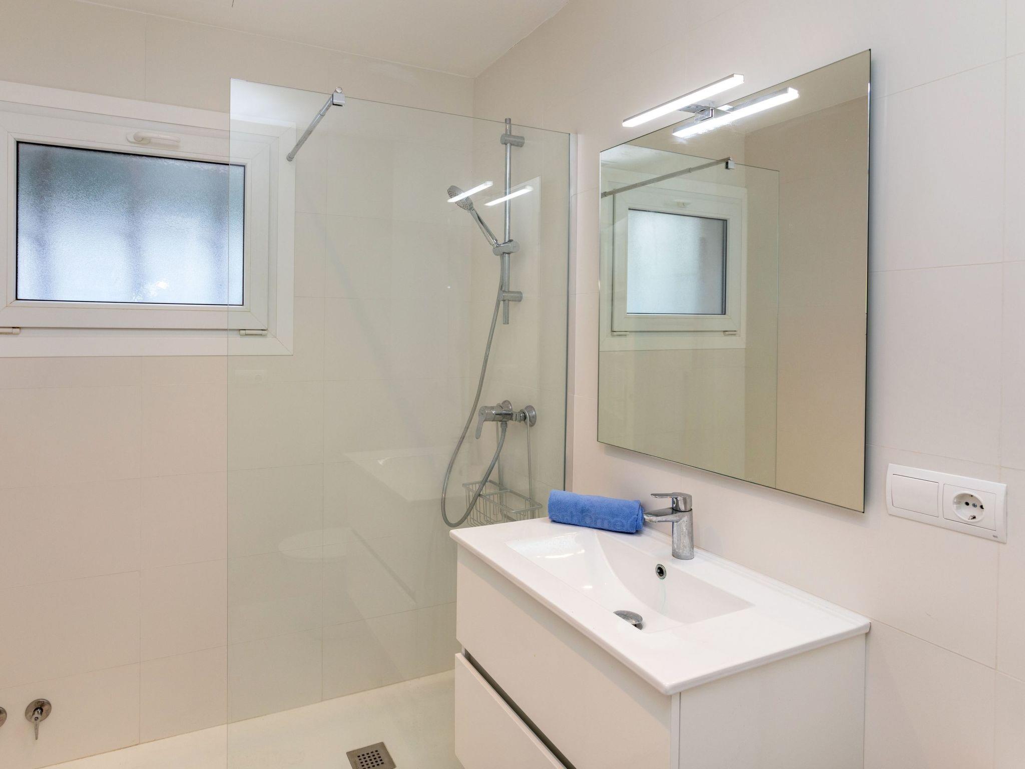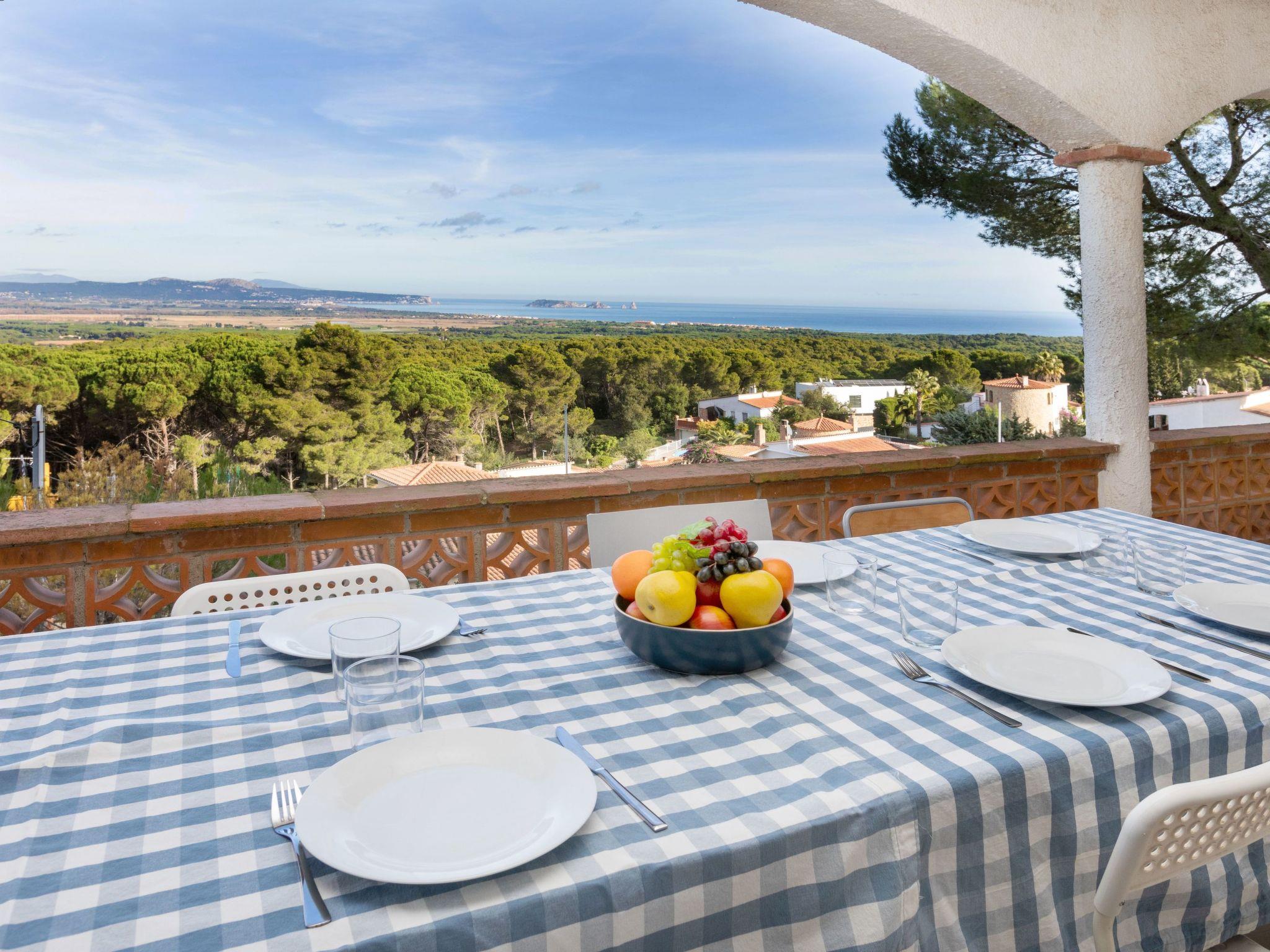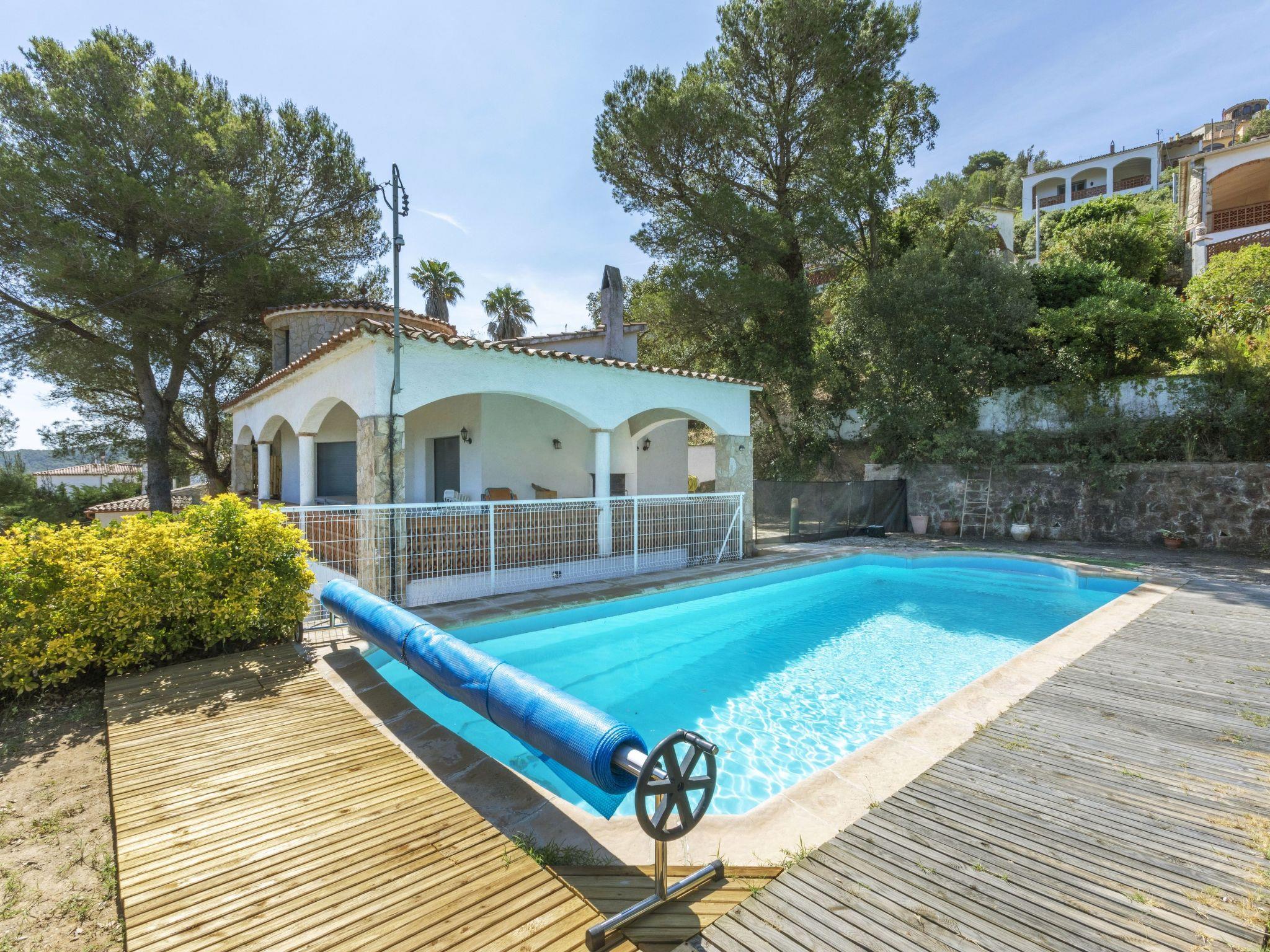 "Can Delmas", 4-room house 100 m2, on the upper floor. Practical furnishings: living/dining room with digital TV and air conditioning. Exit to the garden, to the terrace, to the swimming pool. 2 rooms, each room with 1 french bed (160 cm, length 190 cm), air conditioning. 1 room with 1 x 2 bunk beds (90 cm, length 190 cm), air conditioning. Kitchen (oven, dishwasher, 3 induction hot plates, toaster, kettle, microwave, freezer, electric coffee machine). 2 showers/WC. No heating option. Terrace furniture, deck chairs. Very beautiful view of the sea, the countryside and the resort. Facilities: washing machine, children's high chair, baby cot, hair dryer. Internet (WiFi, free). HUTG-065904 // Reg. Nr.: ESFCTU00001700700000601800000000000000000HUTG-0659045