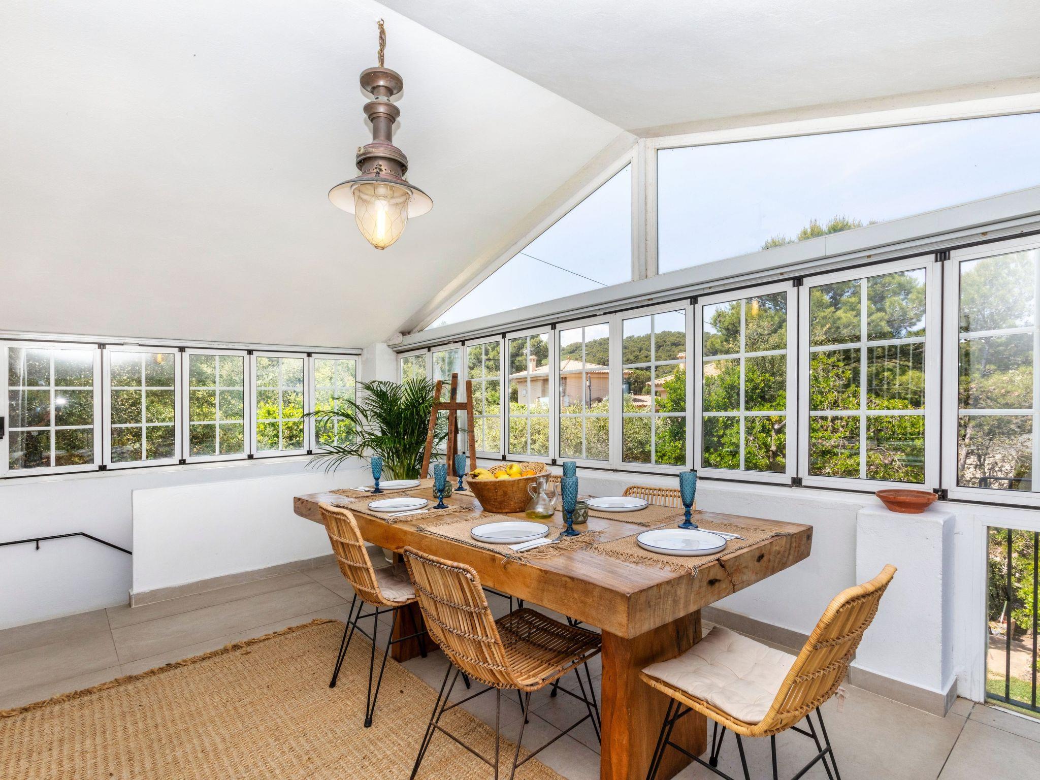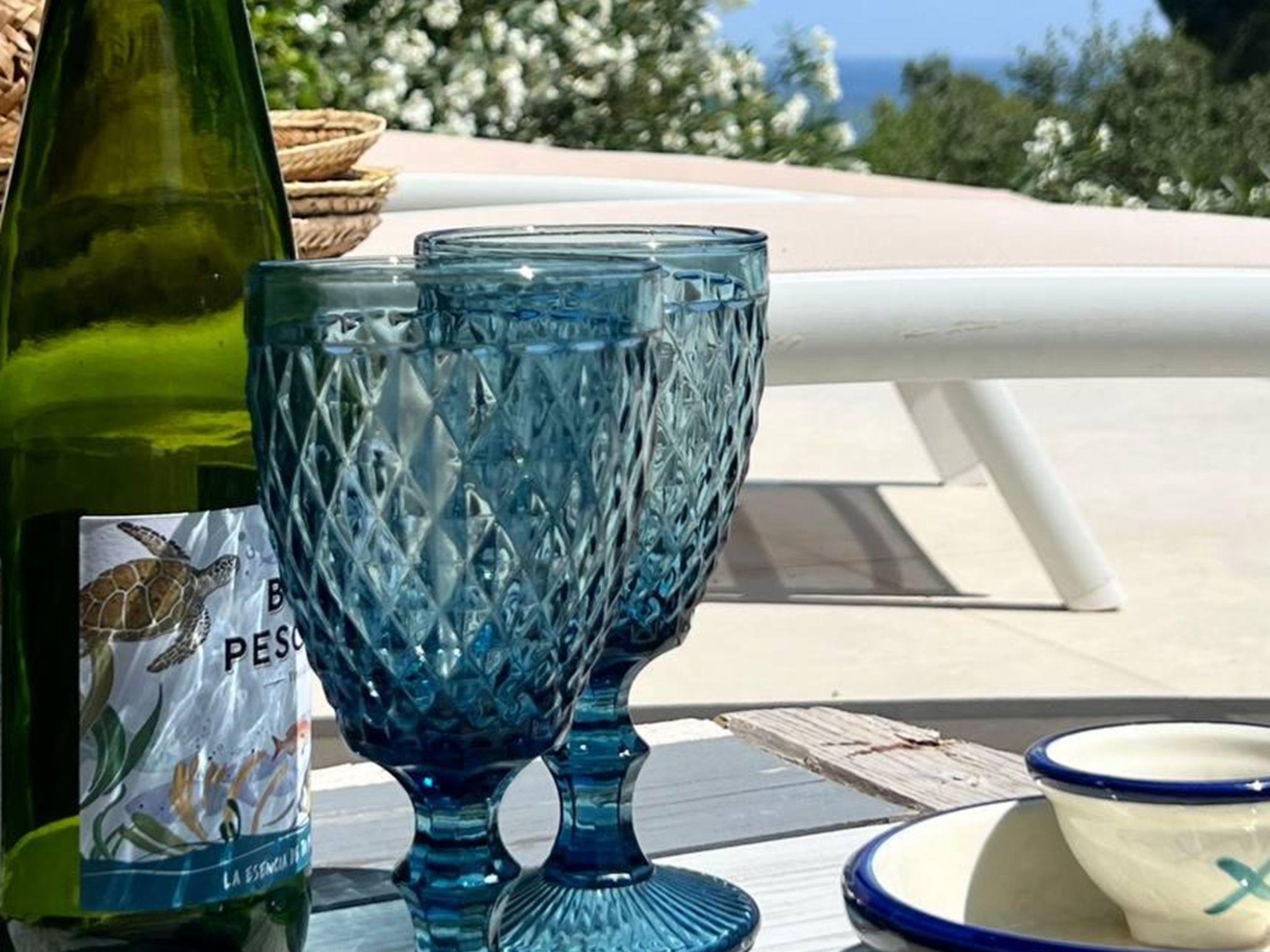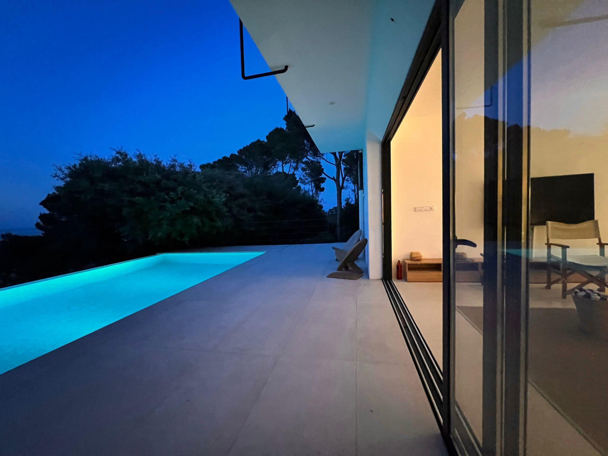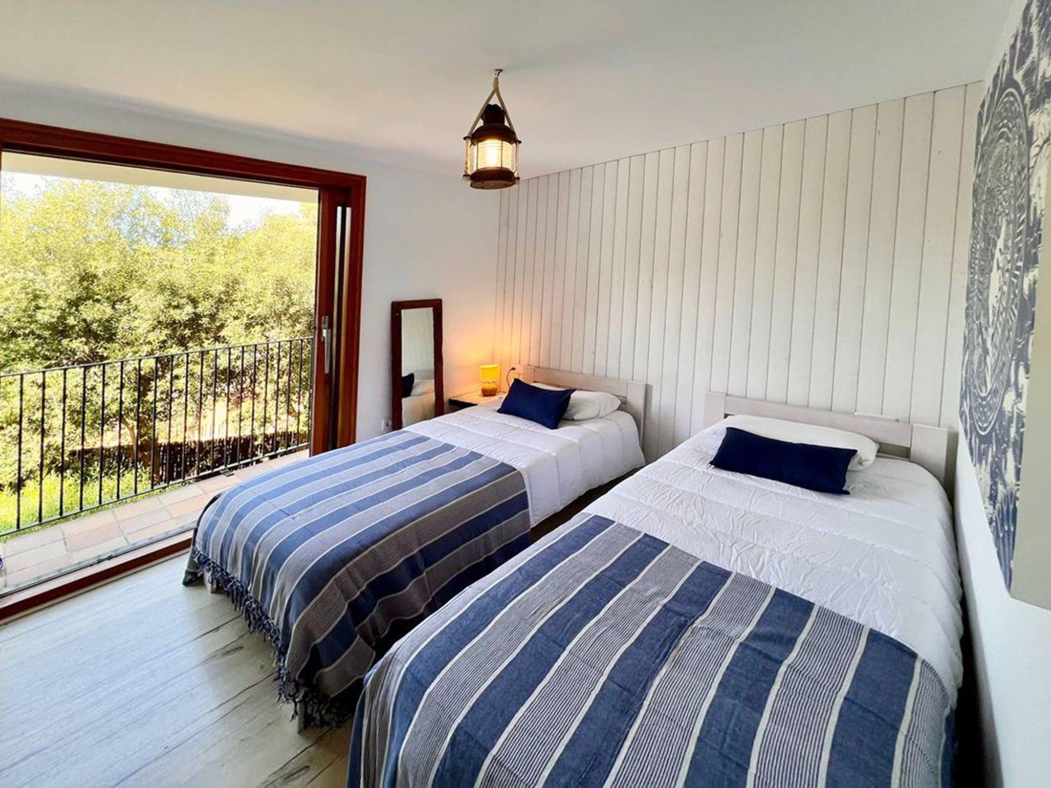 "Casa Blue Art", 6-room house 200 m2 on 2 levels. Comfortable furnishings: living/dining room with TV. Exit to the terrace. 1 room with 1 french bed (150 cm, length 190 cm), air conditioning. Kitchen (4 hot plates, oven, dishwasher, toaster, kettle, microwave, freezer, electric coffee machine). Shower/WC, sep. WC. On the lower ground floor: living/dining room. Exit to the garden, to the swimming pool. 1 room with 1 french bed (150 cm, length 190 cm). 2 rooms, each room with 2 beds (90 cm, length 190 cm). 1 room with 1 french bed (135 cm, length 190 cm). Kitchenette). 2 showers/WC. Patio. Terrace furniture, deck chairs (3). Panoramic view of the sea, the countryside and the resort. Facilities: washing machine, iron, children's high chair, baby cot, hair dryer. Internet (WiFi, free). Parking at the house. Suitable for families. HUTG-029559 // Reg. Nr.: ESFCTU00001700700016321600000000000000000HUTG-0295599