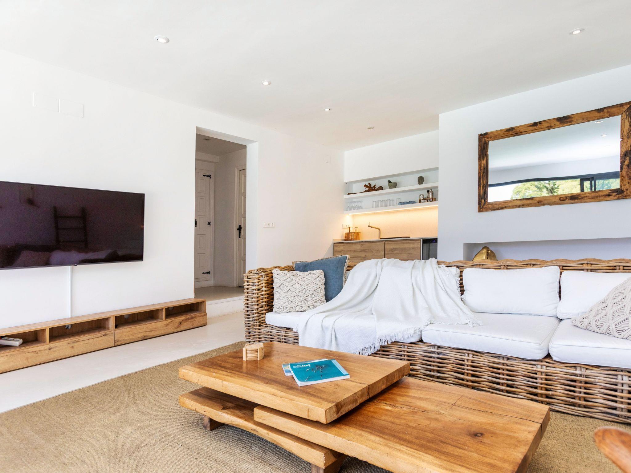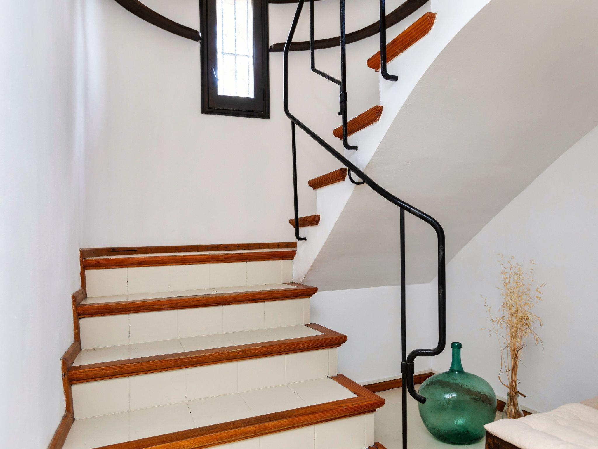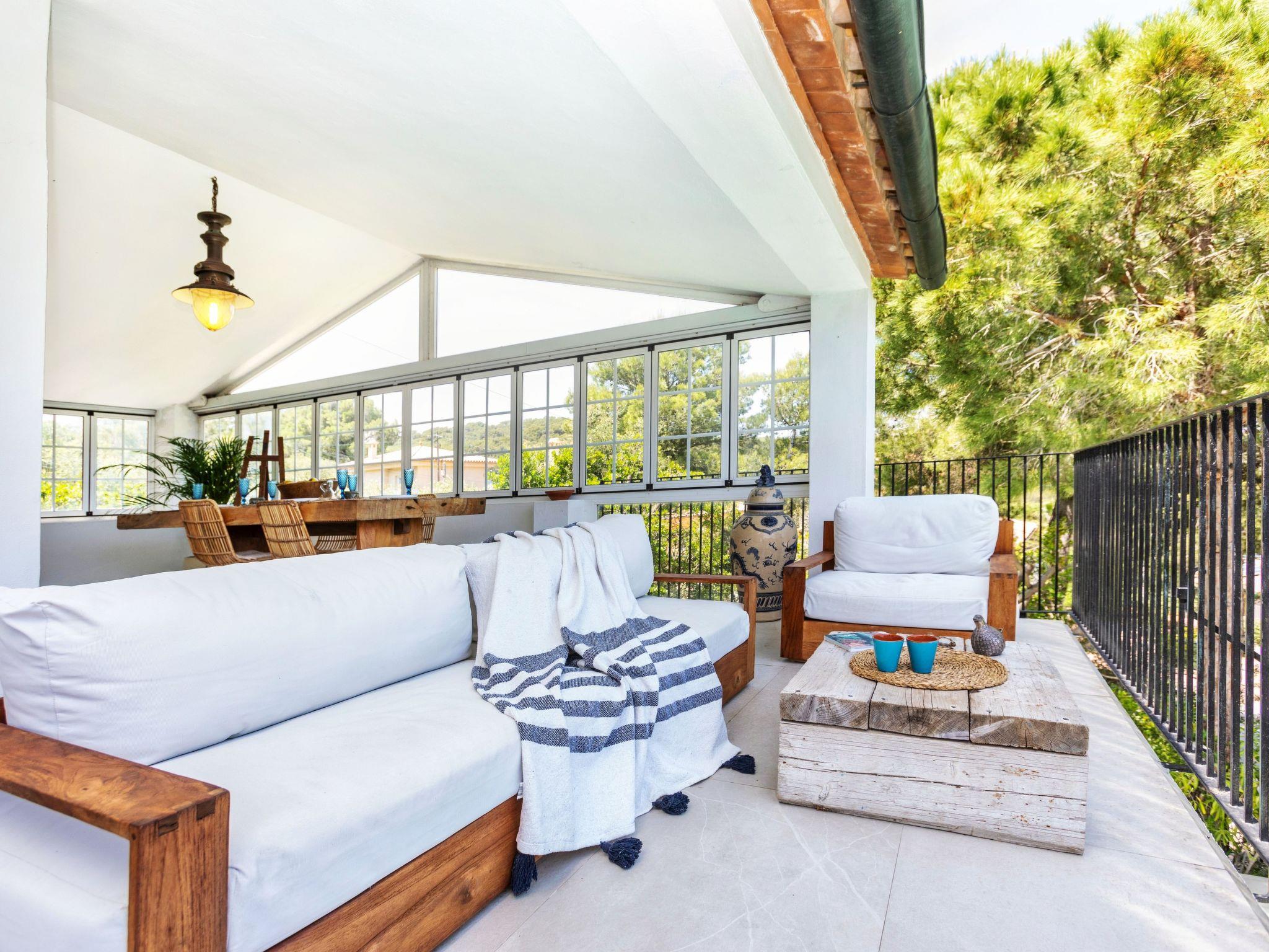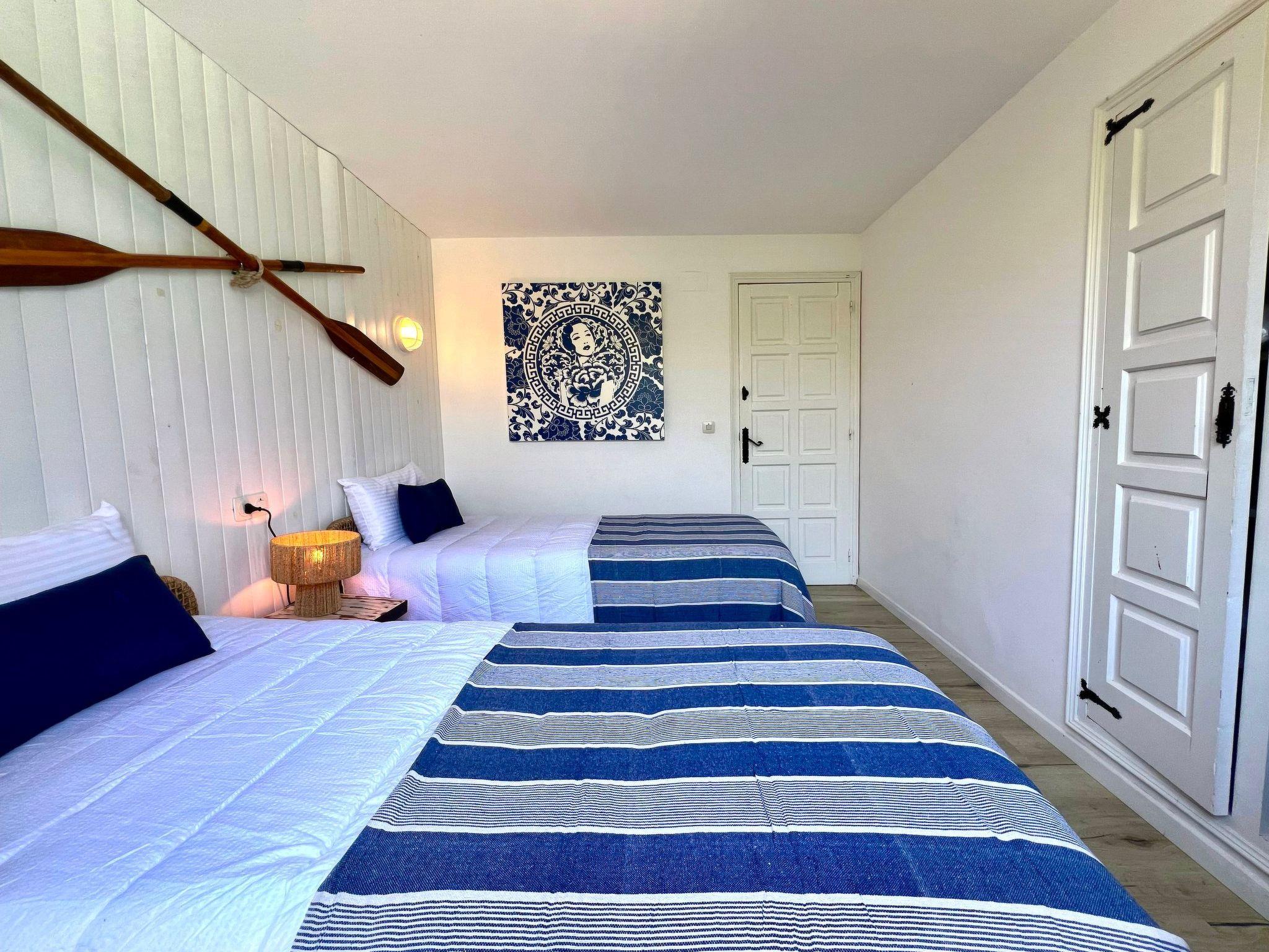 "Casa Blue Art", 6-room house 200 m2 on 2 levels. Comfortable furnishings: living/dining room with TV. Exit to the terrace. 1 room with 1 french bed (150 cm, length 190 cm), air conditioning. Kitchen (4 hot plates, oven, dishwasher, toaster, kettle, microwave, freezer, electric coffee machine). Shower/WC, sep. WC. On the lower ground floor: living/dining room. Exit to the garden, to the swimming pool. 1 room with 1 french bed (150 cm, length 190 cm). 2 rooms, each room with 2 beds (90 cm, length 190 cm). 1 room with 1 french bed (135 cm, length 190 cm). Kitchenette). 2 showers/WC. Patio. Terrace furniture, deck chairs (3). Panoramic view of the sea, the countryside and the resort. Facilities: washing machine, iron, children's high chair, baby cot, hair dryer. Internet (WiFi, free). Parking at the house. Suitable for families. HUTG-029559 // Reg. Nr.: ESFCTU00001700700016321600000000000000000HUTG-0295599