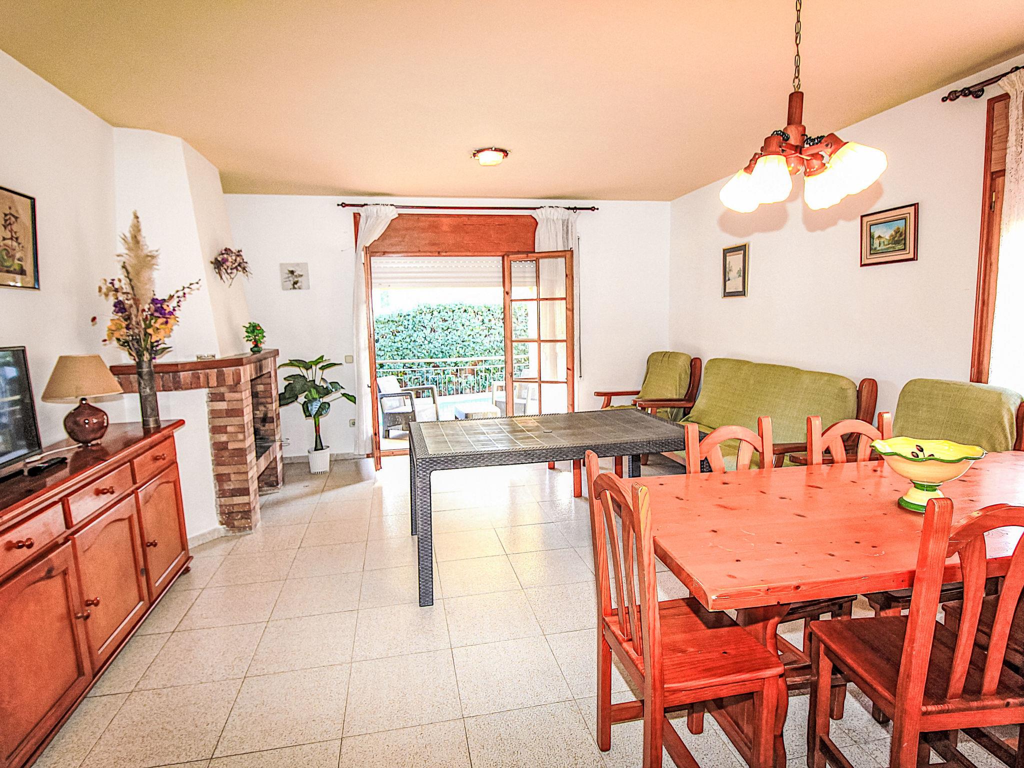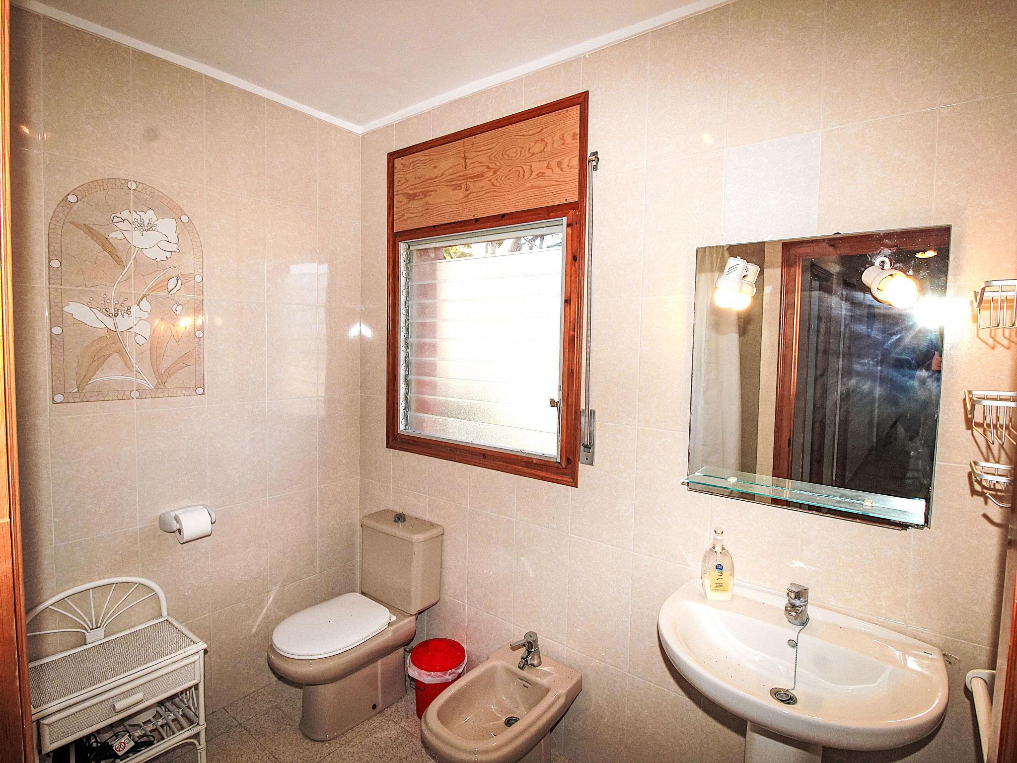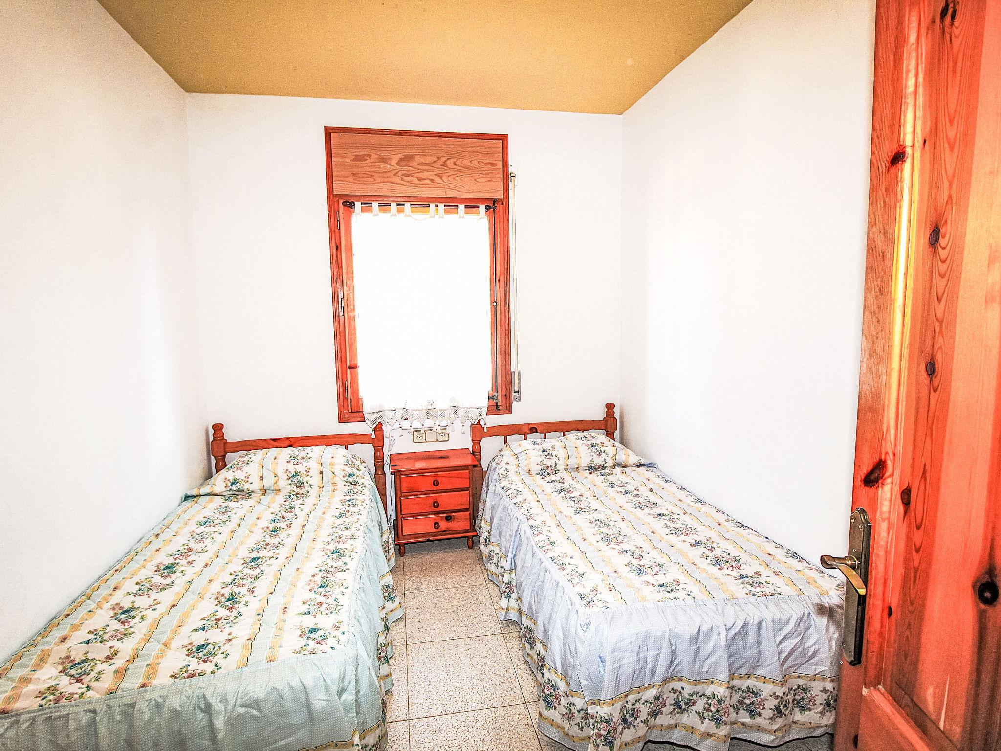 5-room house 130 m2, on the ground floor. Simple and practical furnishings: living/dining room with digital TV and flat screen. Exit to the terrace. 1 room with 1 french bed (135 cm, length 190 cm). 2 rooms, each room with 2 beds (90 cm, length 190 cm). 1 room with 1 x 2 bunk beds (90 cm, length 190 cm). Kitchen (4 hot plates, oven, dishwasher, toaster, microwave, freezer, electric coffee machine). Bath/WC, sep. WC. No heating option. Terrace. Terrace furniture. Facilities: washing machine, iron. Internet (WiFi, free). Parking at the house. Please note: maximum 2 pets/ dogs allowed. TV only ES. HUTG-014087 // Reg. Nr.: ESFCTU00001700700059034000000000000000HUTG-014087-163