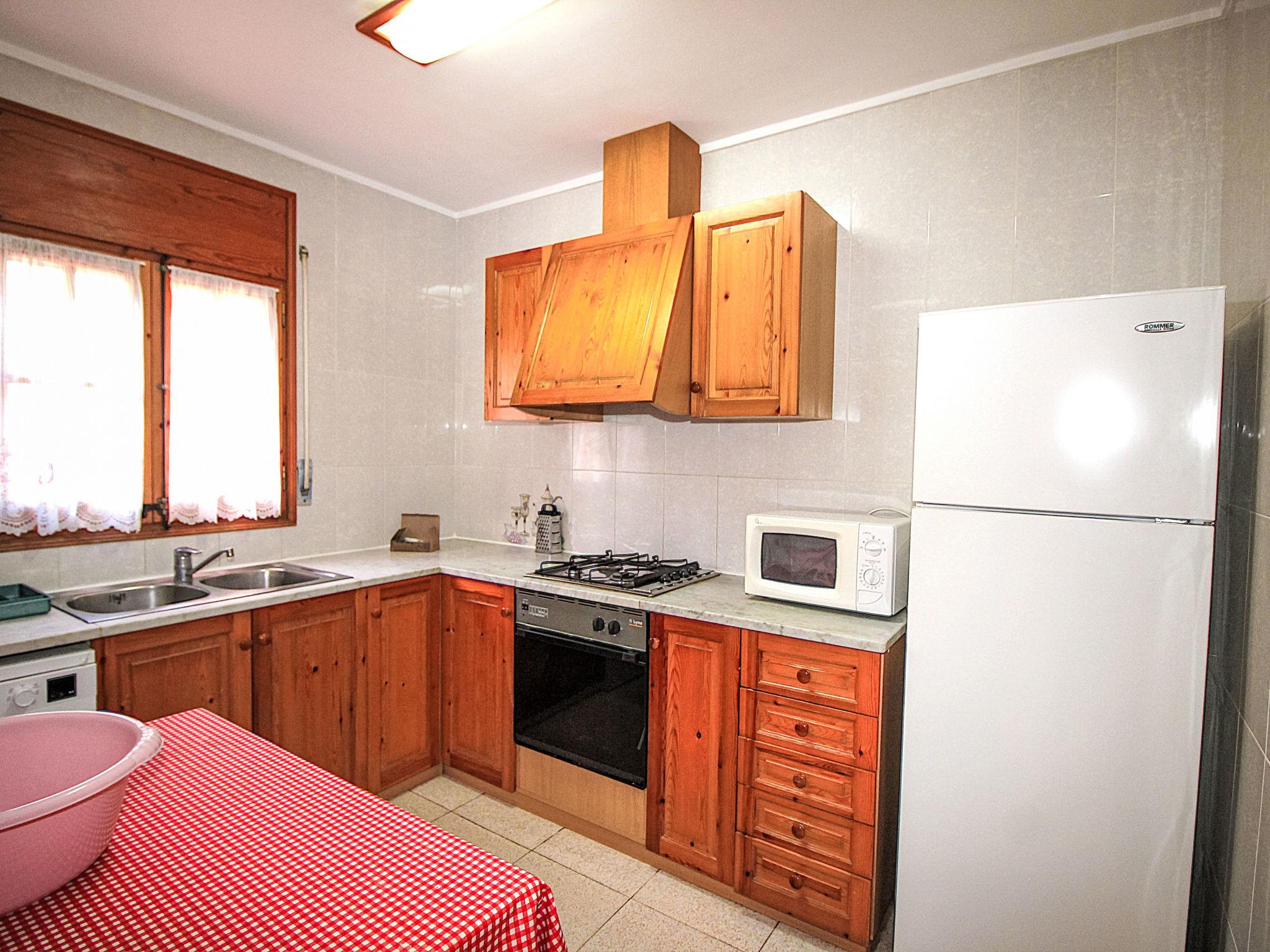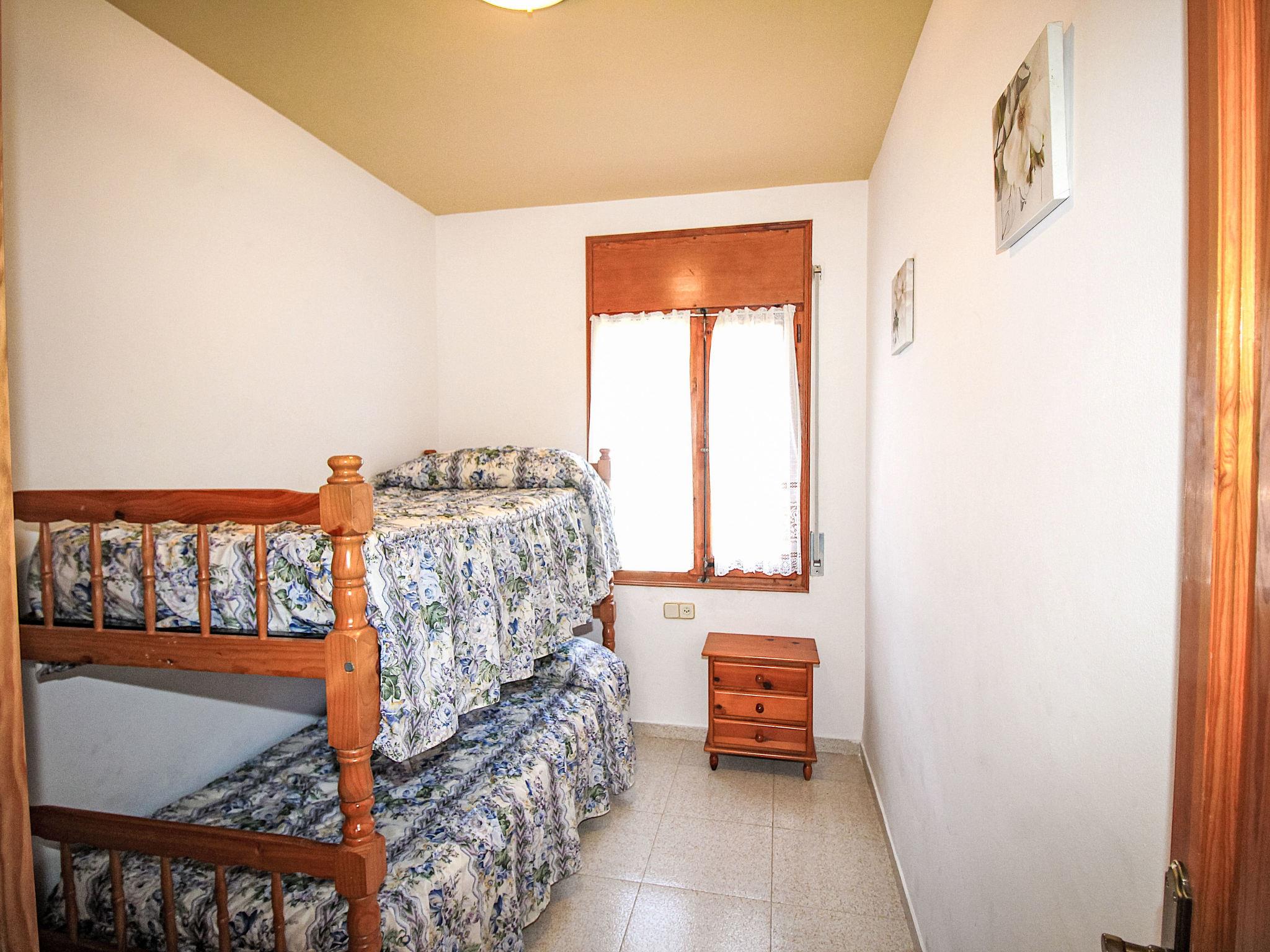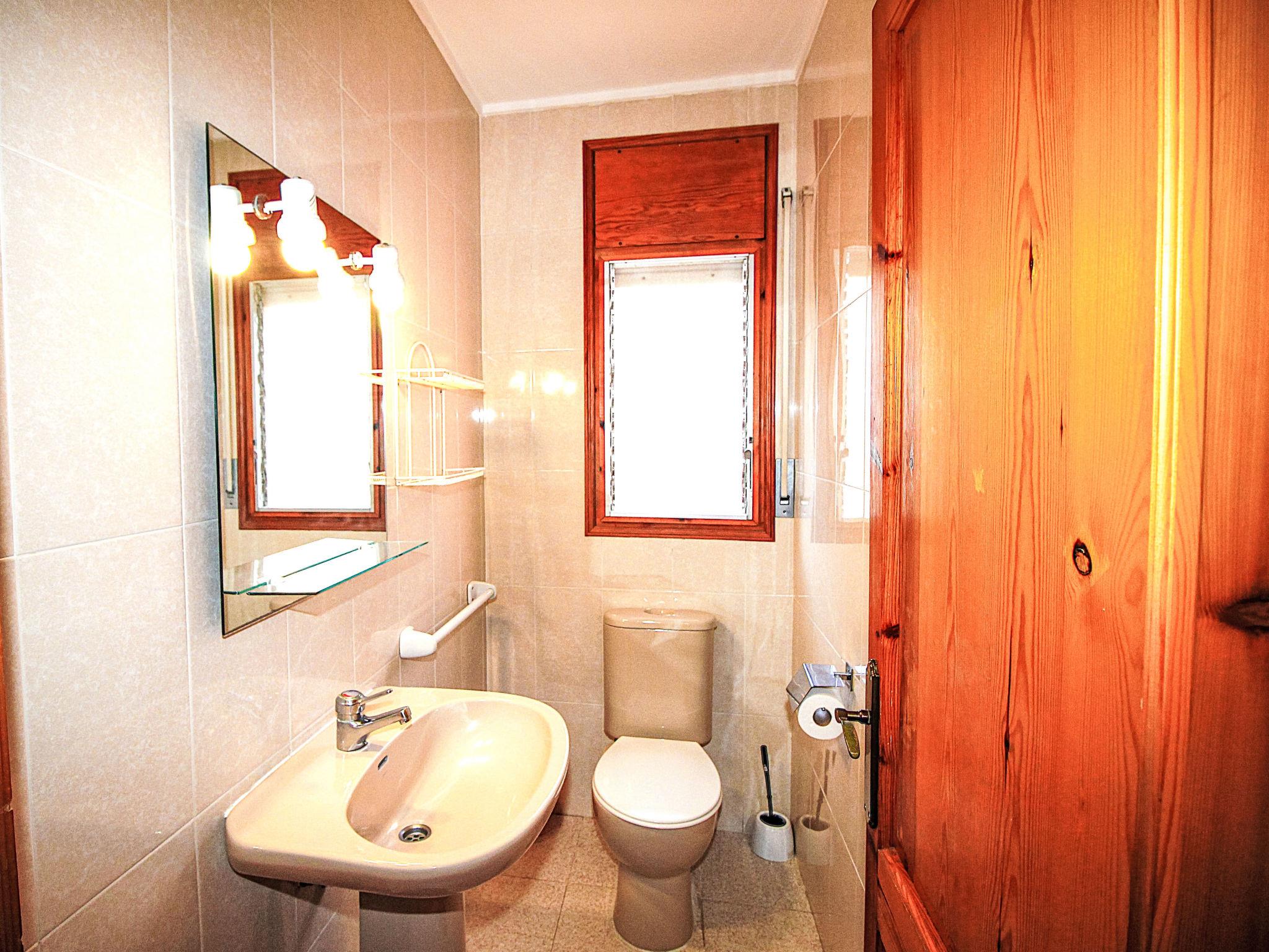 5-room house 130 m2, on the ground floor. Simple and practical furnishings: living/dining room with digital TV and flat screen. Exit to the terrace. 1 room with 1 french bed (135 cm, length 190 cm). 2 rooms, each room with 2 beds (90 cm, length 190 cm). 1 room with 1 x 2 bunk beds (90 cm, length 190 cm). Kitchen (4 hot plates, oven, dishwasher, toaster, microwave, freezer, electric coffee machine). Bath/WC, sep. WC. No heating option. Terrace. Terrace furniture. Facilities: washing machine, iron. Internet (WiFi, free). Parking at the house. Please note: maximum 2 pets/ dogs allowed. TV only ES. HUTG-014087 // Reg. Nr.: ESFCTU00001700700059034000000000000000HUTG-014087-163