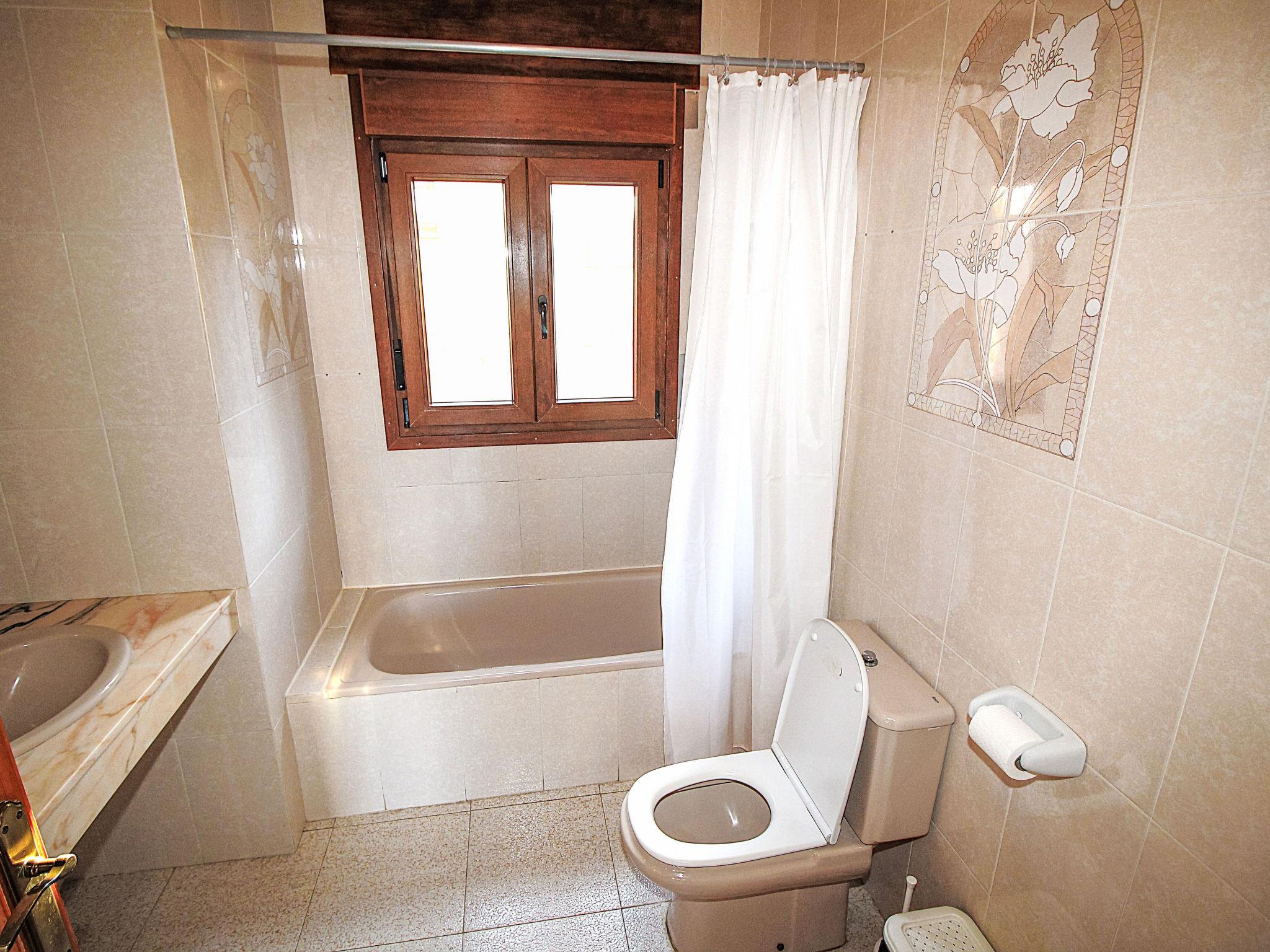 "Golf & Sun", 4-room house 130 m2, on the ground floor. Simple and practical furnishings: living/dining room with digital TV and flat screen. Exit to the terrace. 1 room with 1 french bed (135 cm, length 190 cm). 2 rooms, each room with 2 beds (90 cm, length 190 cm). Kitchen (4 hot plates, oven, toaster, microwave, freezer, electric coffee machine). Bath/WC, sep. WC. No heating option. Terrace. Terrace furniture, barbecue. Facilities: washing machine, iron. Internet (WiFi, free). Please note: 2 pets/ dogs allowed. TV only ES. HUTG-014093 // Reg. Nr.: ESFCTU00001700700059038800000000000000HUTG-014093-562