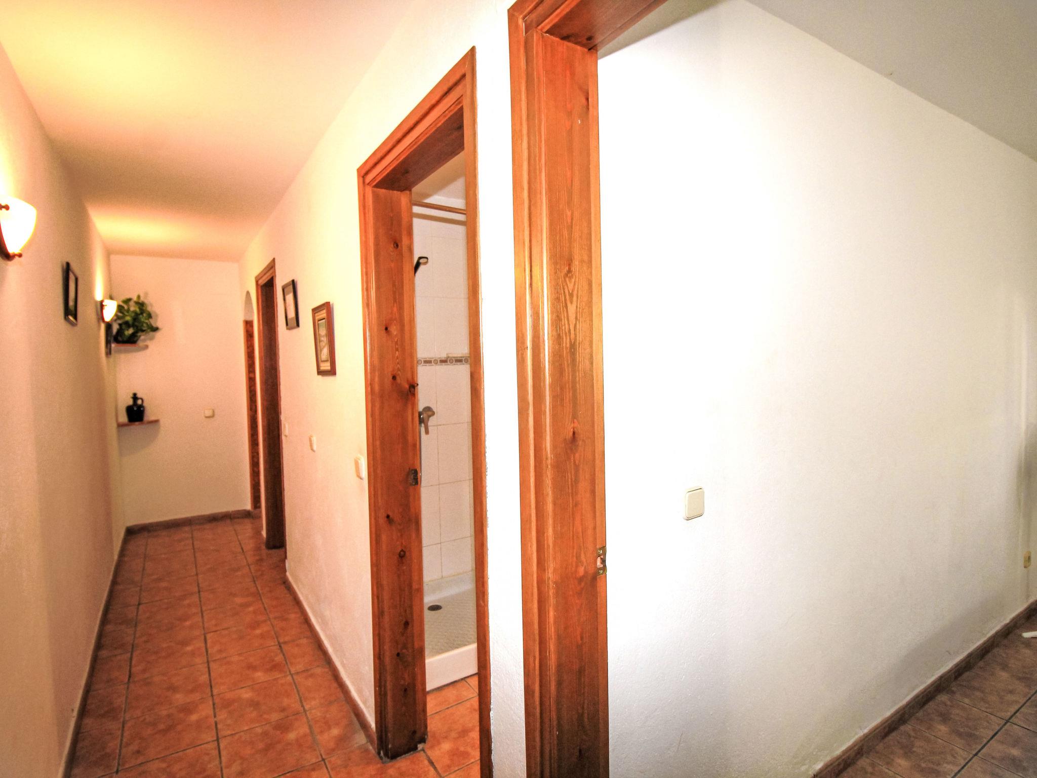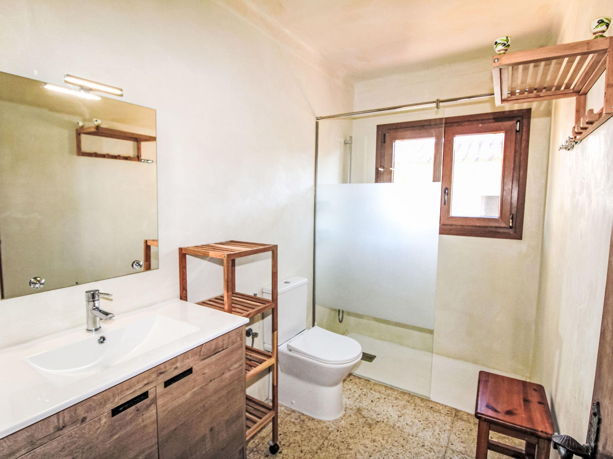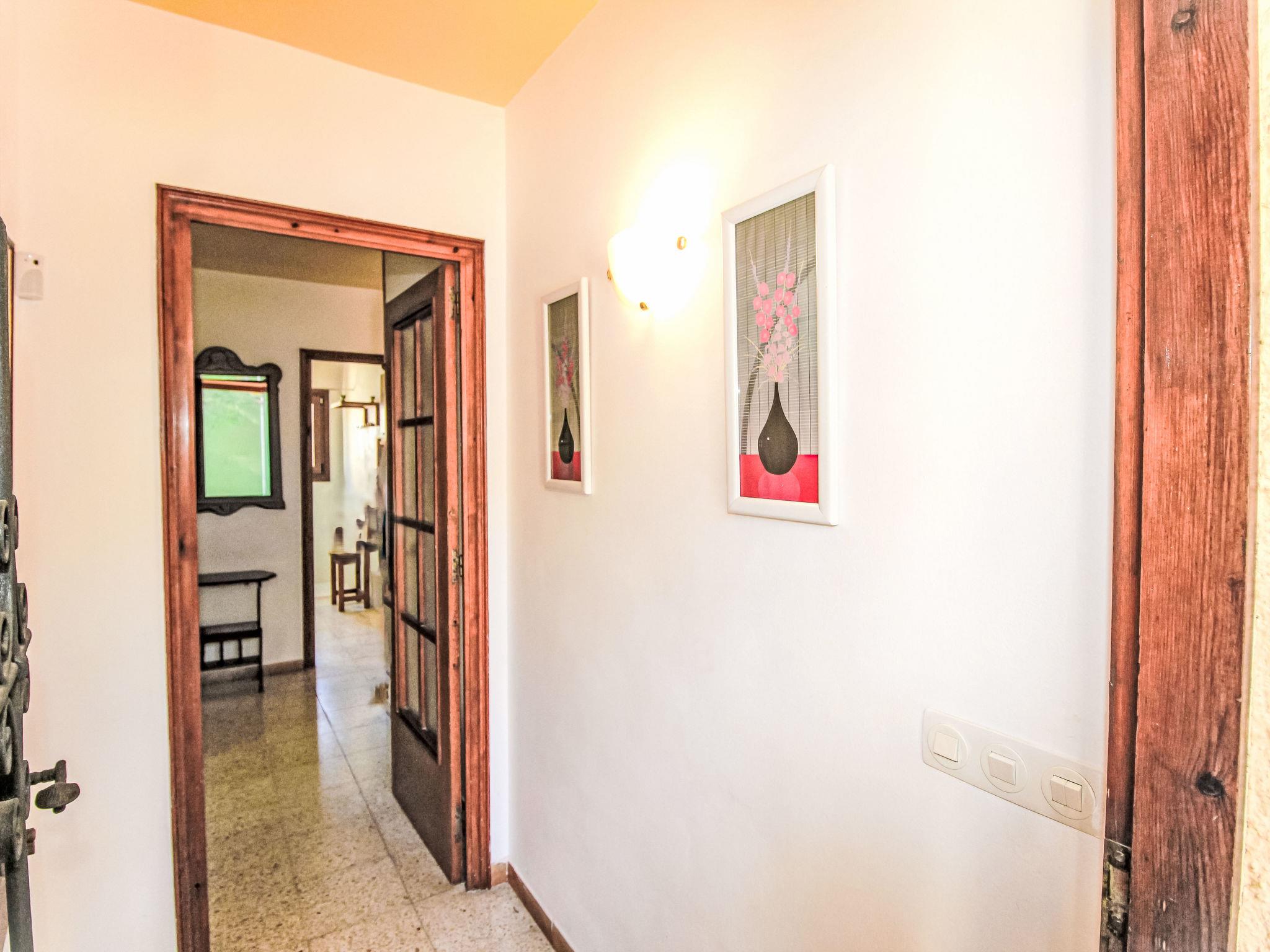 "Torre Mitjorn", 6-room house 200 m2 on 2 levels. Simple and practical furnishings: living/dining room with digital TV. 1 room with 2 beds (90 cm, length 190 cm). 1 room with 2 beds (90 cm, length 190 cm). 1 room with 2 beds (90 cm, length 190 cm). (4 hot plates, dishwasher, microwave, freezer, electric coffee machine). Bath/WC. No heating option. On the lower ground floor: 1 room with 1 french bed (135 cm, length 190 cm). 1 room with 2 beds (90 cm, length 190 cm). Kitchen (4 hot plates, microwave, freezer). Exit to the terrace, to the swimming pool. Shower/WC. Terrace furniture, barbecue, deck chairs. Facilities: washing machine, iron. Internet (WiFi, free). Please note: maximum 2 pets/ dogs allowed. TV only ES. No internal connecting door between the floors. HUTG-007430