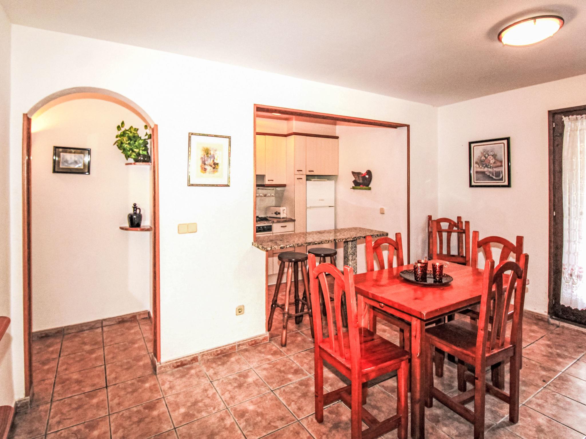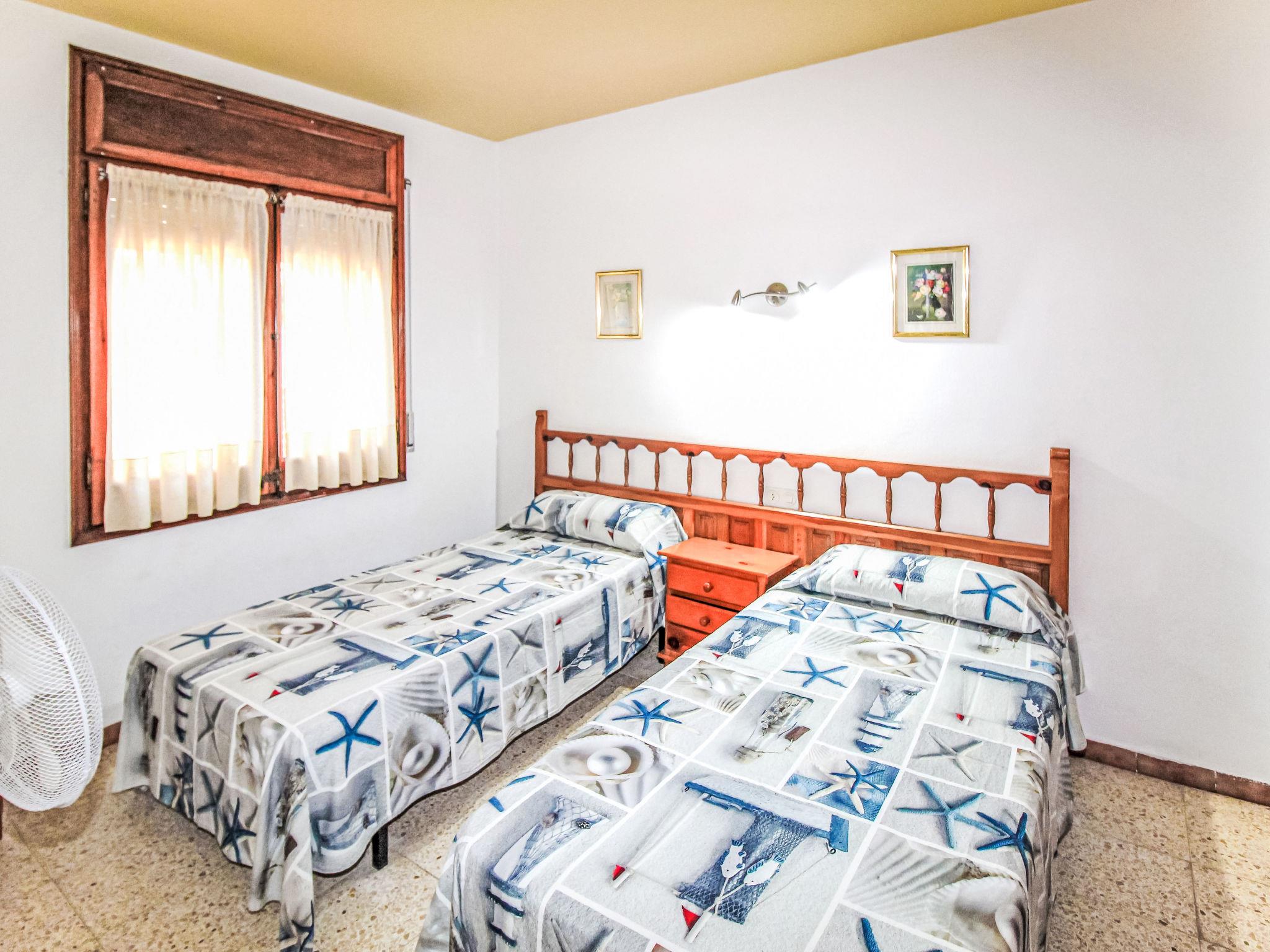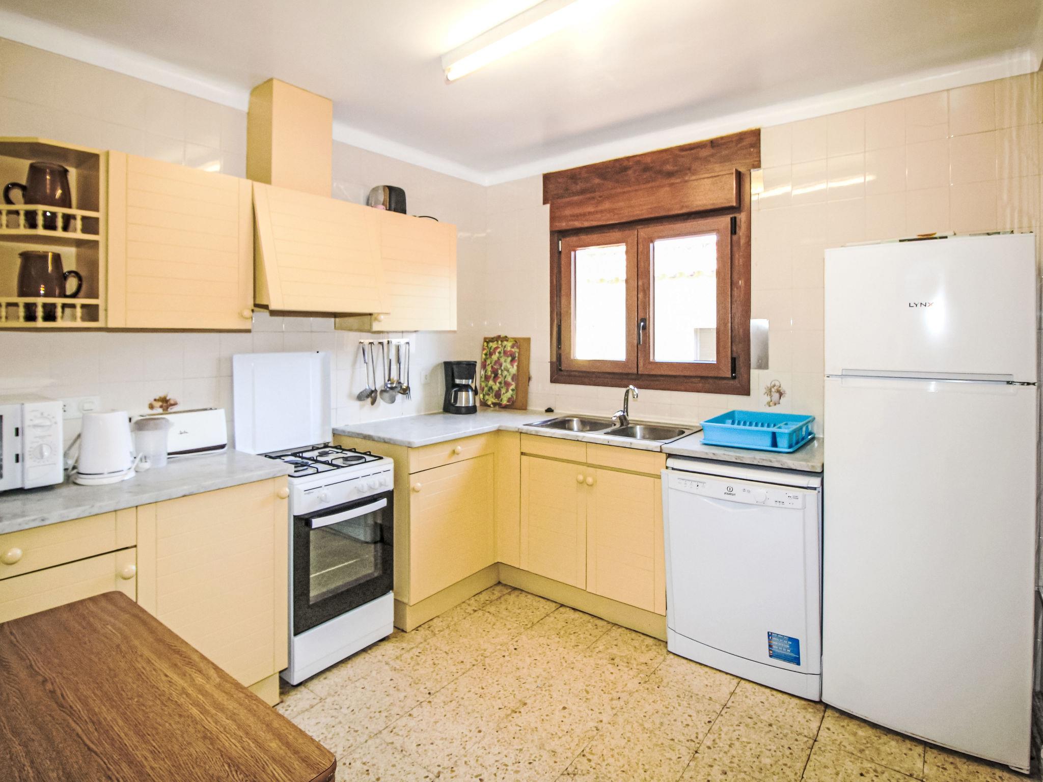 "Torre Mitjorn", 6-room house 200 m2 on 2 levels. Simple and practical furnishings: living/dining room with digital TV. 1 room with 2 beds (90 cm, length 190 cm). 1 room with 2 beds (90 cm, length 190 cm). 1 room with 2 beds (90 cm, length 190 cm). (4 hot plates, dishwasher, microwave, freezer, electric coffee machine). Bath/WC. No heating option. On the lower ground floor: 1 room with 1 french bed (135 cm, length 190 cm). 1 room with 2 beds (90 cm, length 190 cm). Kitchen (4 hot plates, microwave, freezer). Exit to the terrace, to the swimming pool. Shower/WC. Terrace furniture, barbecue, deck chairs. Facilities: washing machine, iron. Internet (WiFi, free). Please note: maximum 2 pets/ dogs allowed. TV only ES. No internal connecting door between the floors. HUTG-007430