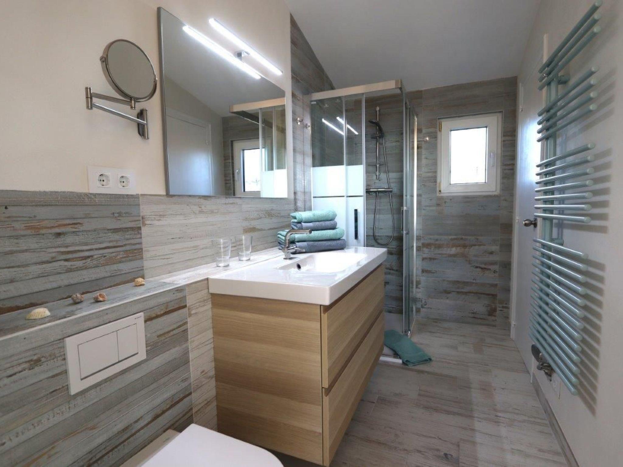 Welcome to our comfortable 2-storey holiday flat Geminis 1. The upscale furnishings are designed for a maximum of 5 people (4 adults + 1 infant). The spacious living area on the ground floor with panoramic window and fireplace invites you to linger. Let yourself be enchanted by the wonderful view of the sea and the mountains of the Serra d'Irta. The covered terrace with comfortable seating area is directly adjacent to the living room. The high-quality kitchen (with dishwasher, oven, microwave, freezer) is also located on the ground floor and offers plenty of space for dining or a cosy games evening. The flat also has 2 separate bedrooms on the top floor and a fantastic roof terrace (including sun loungers). In addition to the modern shower room on the top floor, there is a guest WC on the ground floor. You can also spend warm holiday days in the garden and round off the day with a barbecue. For cooler days in winter, there is underfloor heating and a fireplace.