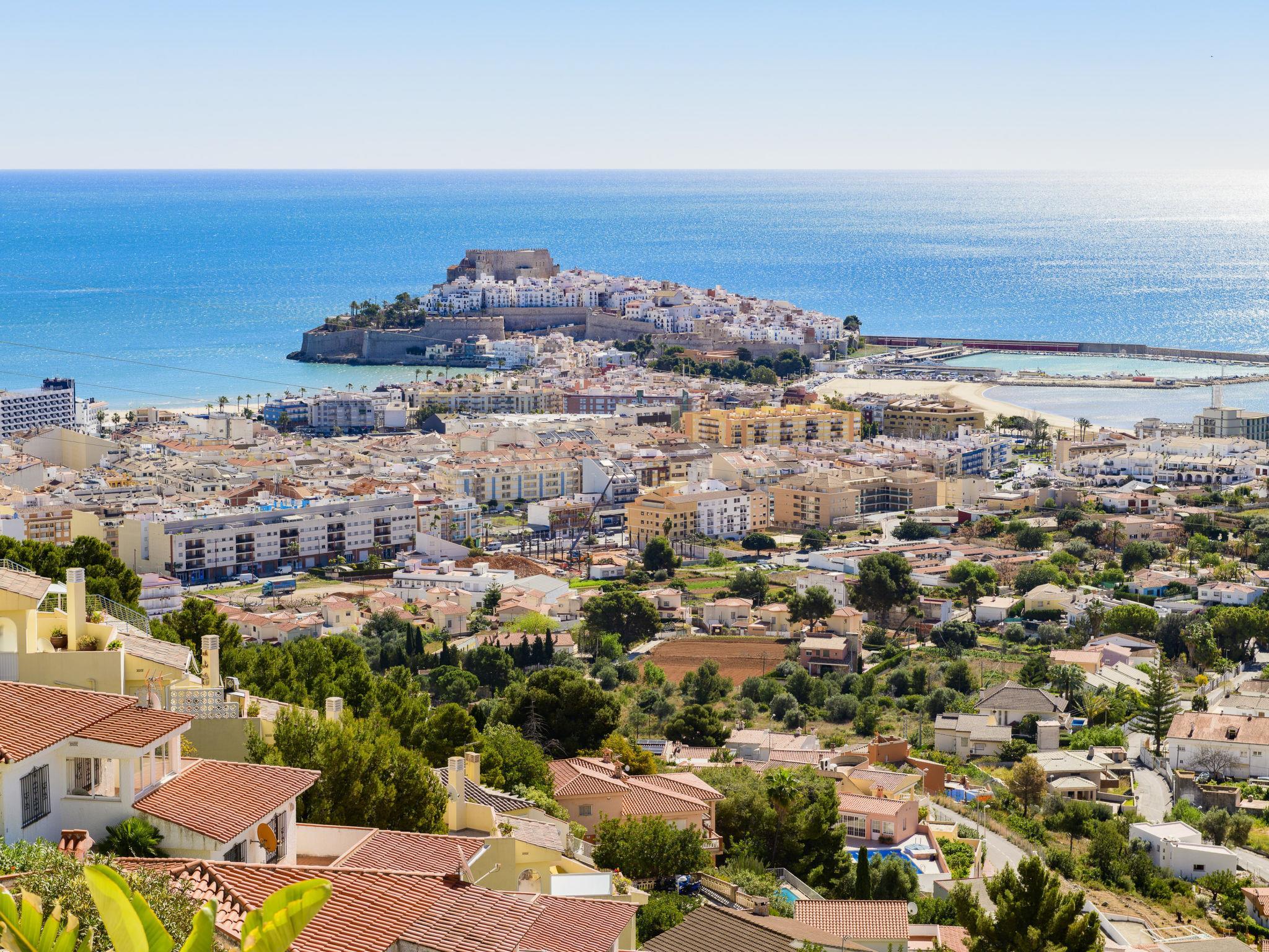 Atalayas 2 km from Peñiscola: Beautiful, cosy, comfortable apartment block "Mirador de Chopo", 2 storeys. 4 apartments in the property. In the resort 1.5 km from the centre of Peñiscola, in a quiet, sunny, elevated position, traffic calmed area, 1.5 km from the sea, 1.5 km from the beach. For shared use: swimming pool angular (8 x 3 m, depth 120 - 170 cm, seasonal availability: 25.May. - 30.Sep. pool opening hours: 09:00-22:00). Outdoor shower. Stepped path (50 steps) to the house. Roofed, parking space n 3 on the premises. Shop 1.5 km, grocery 1.5 km, supermarket 1.2 km, shopping centre 7.5 km, restaurant 1.5 km, bar 1.5 km, bakery 1.5 km, bicycle rental 1.5 km, bus stop "Plaza Constitución" 2 km, railway station "Benicarló-Peñíscola" 10 km, sandy beach "Playa Sur-Playa Norte" 1.8 km. Golf course (18 hole) 34 km. Nearby attractions: Castillo de Peñiscola 1.8 km, Laberinto mas grande de España 8 km, Morella 75 km, Ciutat de les Arts i les Ciències 140 km, Delta del Ebro 48 km, Port Aventura 120 km. Hiking paths: Sierra de Irta 2.5 km. Please note: car recommended, no lift. Object suitable for 4 adults.