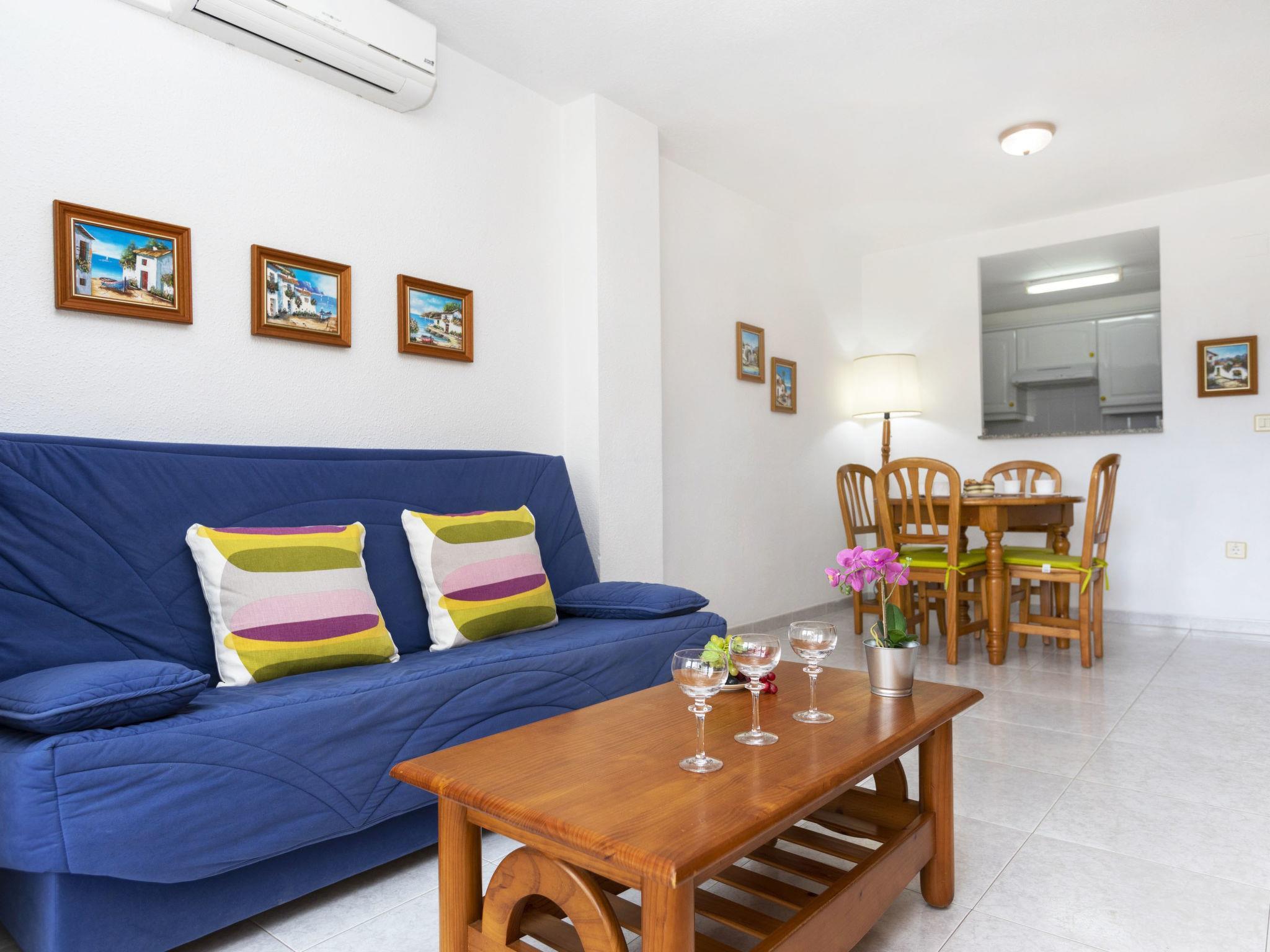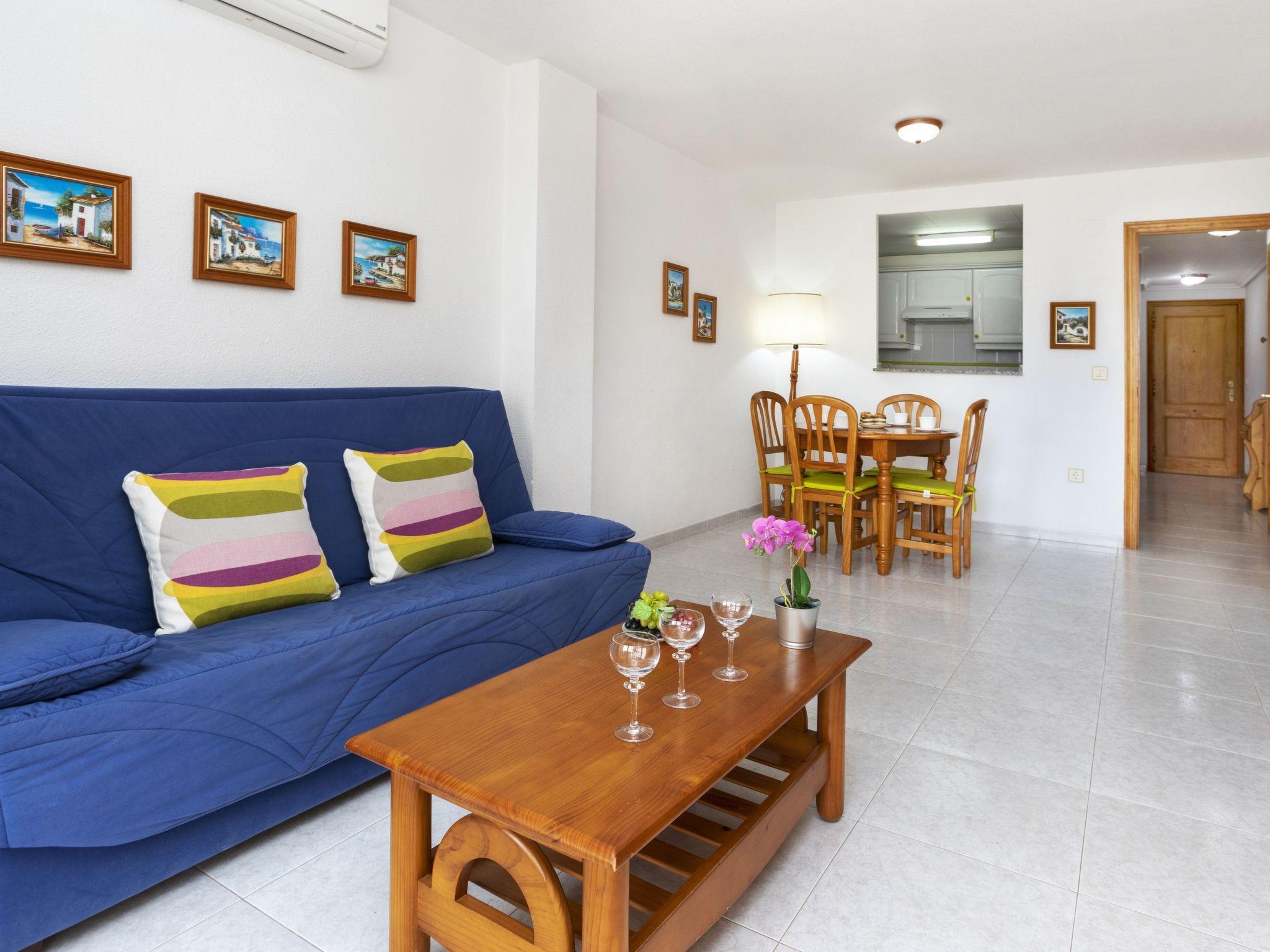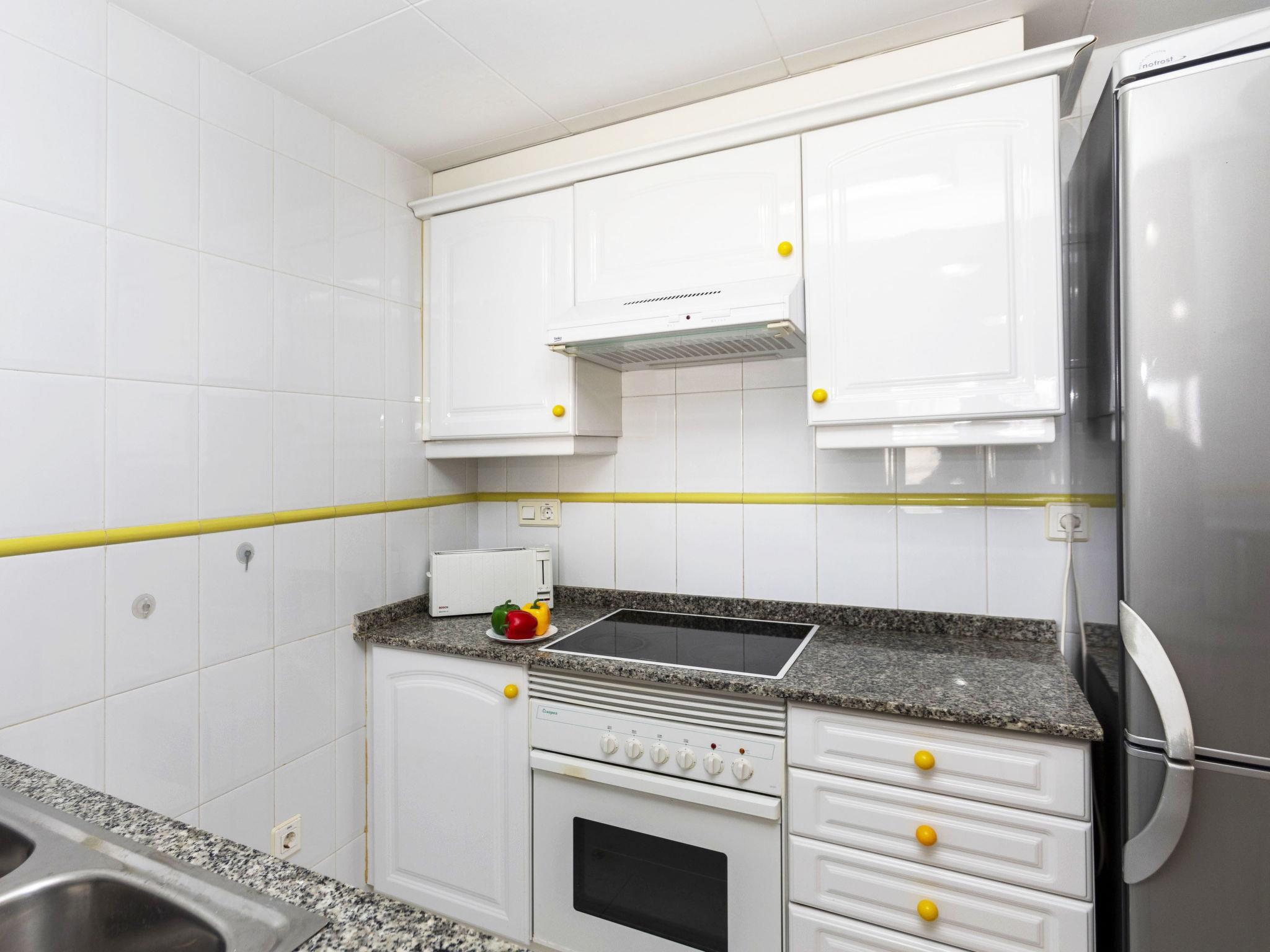 "AT Sorolla II", 3-room apartment 68 m2. Object suitable for 4 adults. Bright, practical and comfortable furnishings: living/dining room with dining table, digital TV and air conditioning. Exit to the terrace. 1 room with 2 beds (90 cm, length 190 cm). 1 room with 1 french bed (150 cm, length 190 cm). Exit to the terrace. Open kitchen (oven, 4 ceramic glass hob hotplates, toaster, microwave, freezer) with bar. Bath/bidet/WC. Electric heating, forced-air heating, boiler (80 litres). Heating not available in all rooms. Terrace. Terrace furniture. Partial view of the sea and the mountains. Facilities: washing machine, iron, hair dryer. Internet (WiFi, free). Parking space n 76 at the house. Please note: apartment carpark side. Non-smokers only. TV only ES. VT-46819-CS // Reg. Nr.: ESFCTU00001200900091239400000000000000000VT-46819-CS0