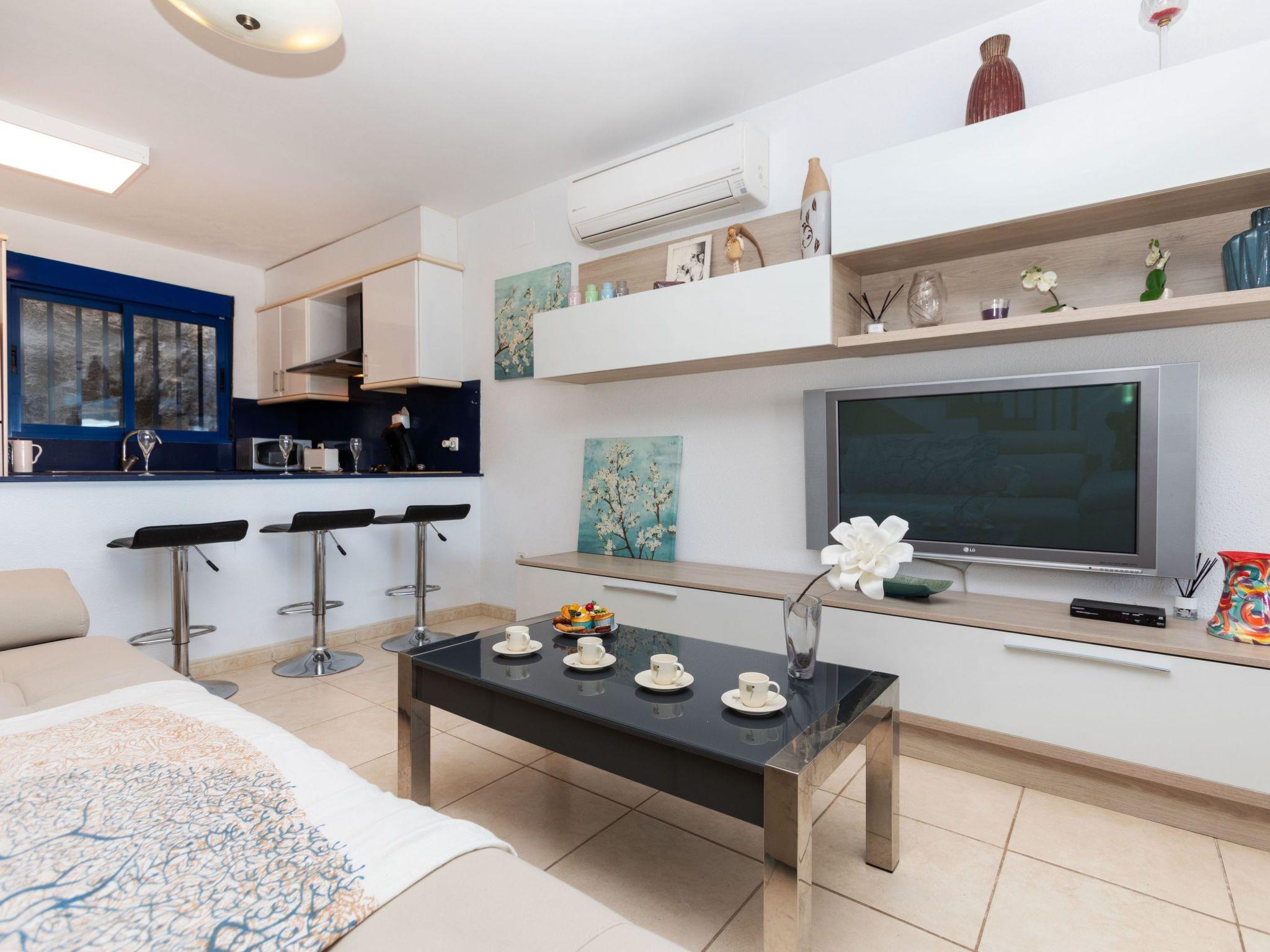 "Los balcones", 4-room granny flat 130 m2 on 2 levels. Object suitable for 6 adults. Renovated in 2016, practical and beautiful furnishings: living/dining room with air conditioning. Exit to the terrace. 1 room with 1 french bed (1 x 140 cm, length 190 cm), air conditioning. Exit to the terrace. 1 room with 1 french bed (1 x 160 cm, length 190 cm), air conditioning. Exit to the terrace. 1 room with 1 french bed (1 x 140 cm, length 190 cm), air conditioning. Open kitchen (oven, dishwasher, 4 ceramic glass hob hotplates, toaster, microwave, grill, electric coffee machine, Capsules for coffee machine (Senseo) extra) with boiler (60 litres). Shower/bidet/WC, sep. WC. Heating not available in all rooms. Large balcony, large terrace. Deck chairs (2). Beautiful distant view of the sea and the resort. Facilities: washing machine, iron, hair dryer. Internet (WiFi, free). Parking (1 car), garage (1 car). Please note: non-smokers only. 1 small pet/ dog allowed. TV only ES, FR. VT-43929CS // Reg. Nr.: ESFCTU000012009000947655000000000000000000VT-43929CS8