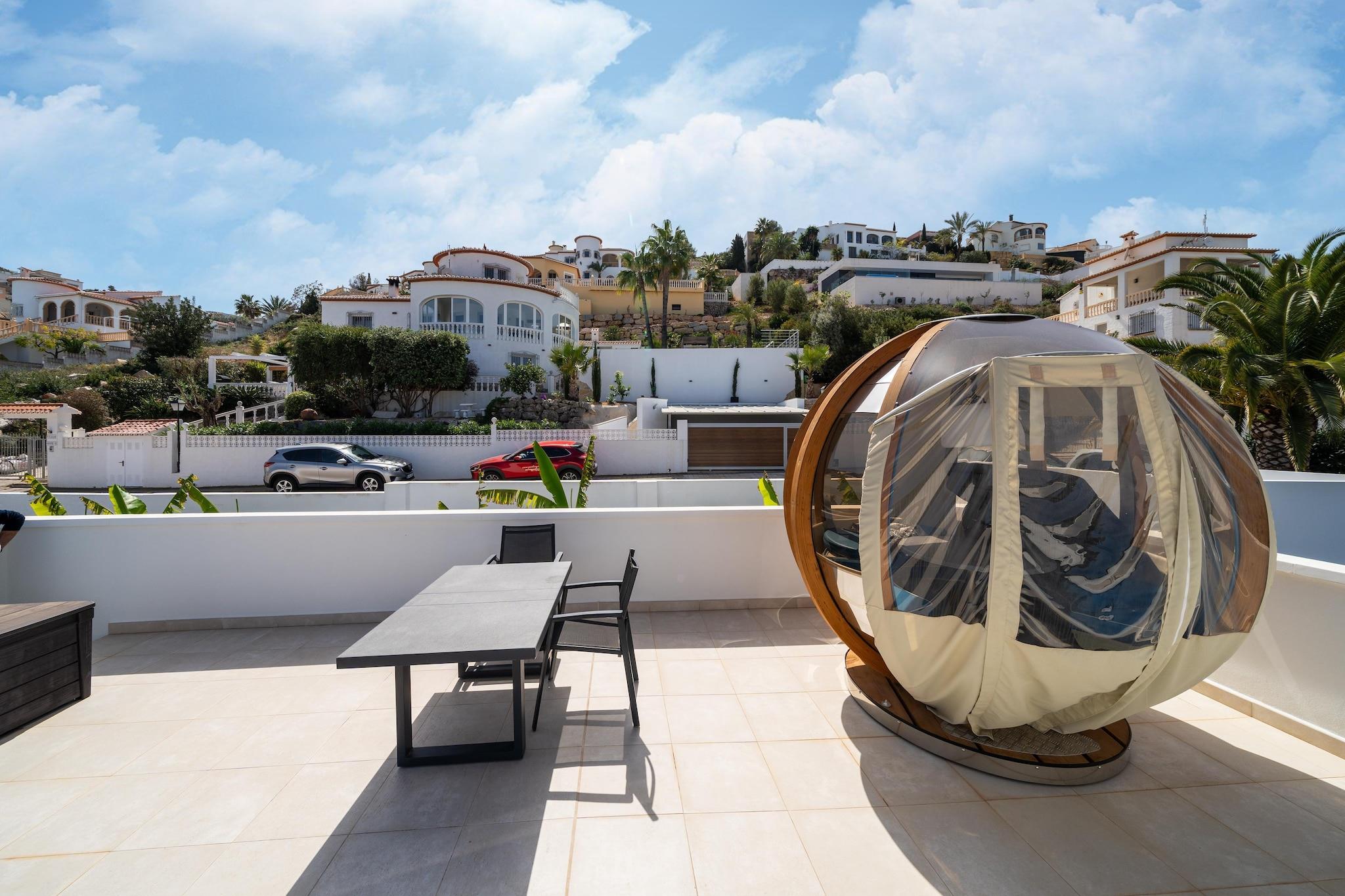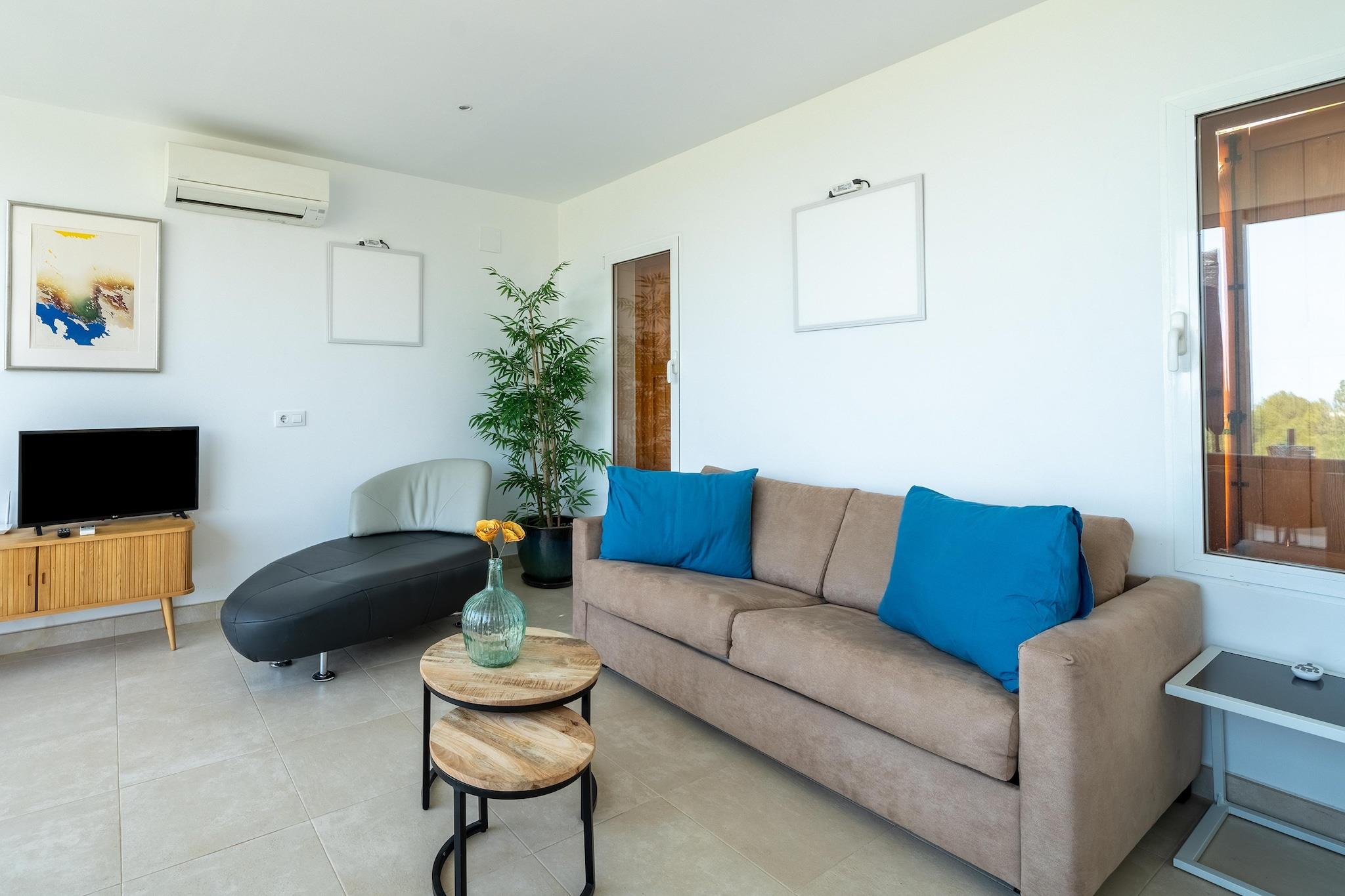 Denne elegante ettromsleiligheten ligger bortgjemt i den fredelige Monte Solana urbanisasjonen nær Pedreguer, og er et perfekt tilfluktssted for to. Med et privat basseng, takterrasse og hage, tilbyr det rolige omgivelser kun 8 km fra Denias strender og pulserende sentrum. Leiligheten grenser til et naturreservat, og gir deg uforstyrret utsikt over landskapet og det fjerne havet. Innvendig inkluderer den åpne planløsningen et velutstyrt kjøkken, en koselig stue og soverom med klimaanlegg og et separat bad. Utendørs finner du en solrik terrasse med sitteplasser, en vinterhage som er tilgjengelig via en utvendig trapp, og et kompakt basseng på 5x3 m for forfriskende dukkerter. Enten du går de nærliggende Montgó- og Bernia-stiene, spiller golf på La Sella (8,7 km), eller nyter lokal mat kun 2 km unna, tilbyr denne leiligheten både avslapning og eventyr. Med gratis Wi-Fi, en vaskemaskin og enkel tilgang til offentlig transport, er det en komfortabel og praktisk base for å utforske Costa Blanca.