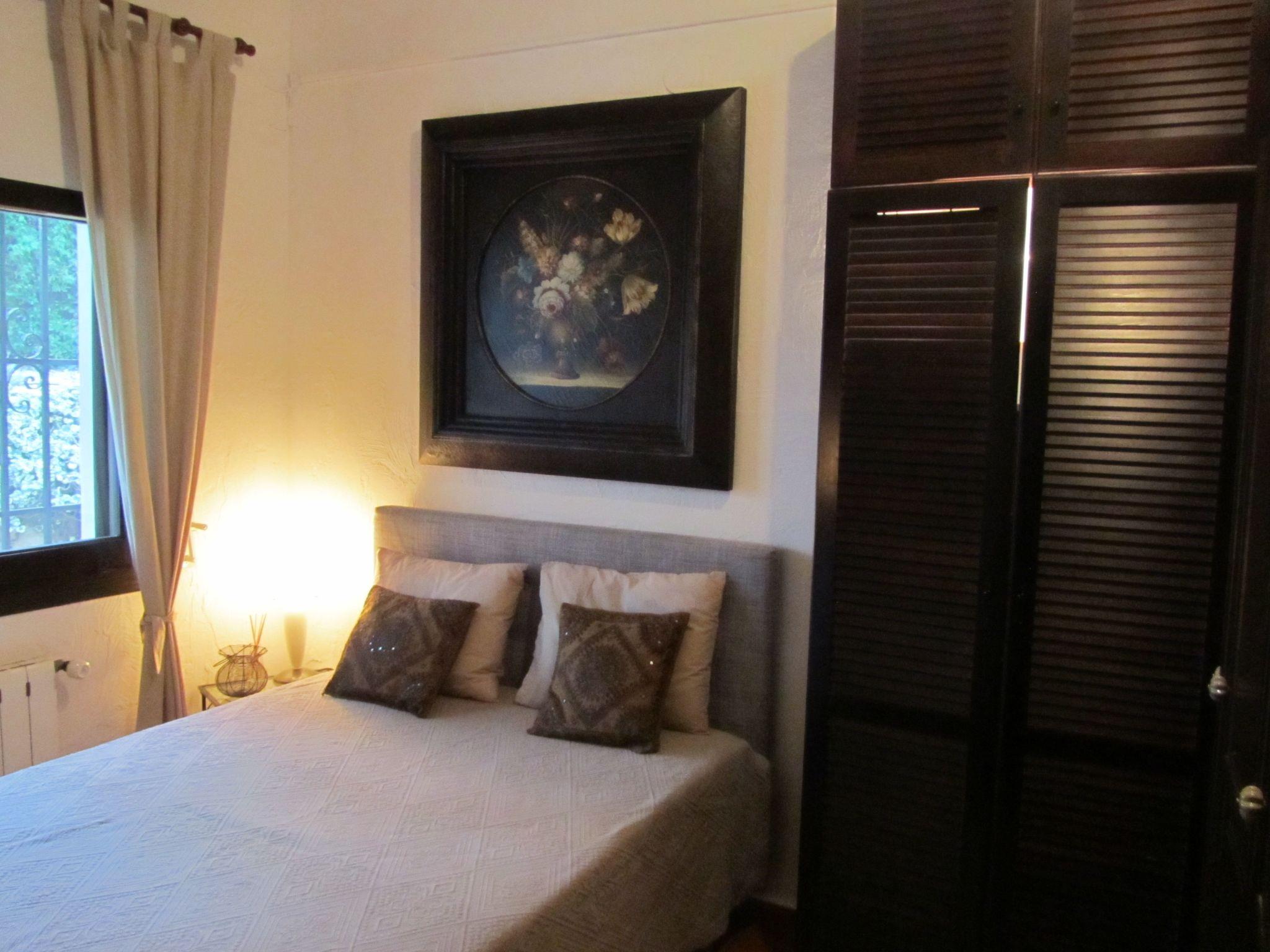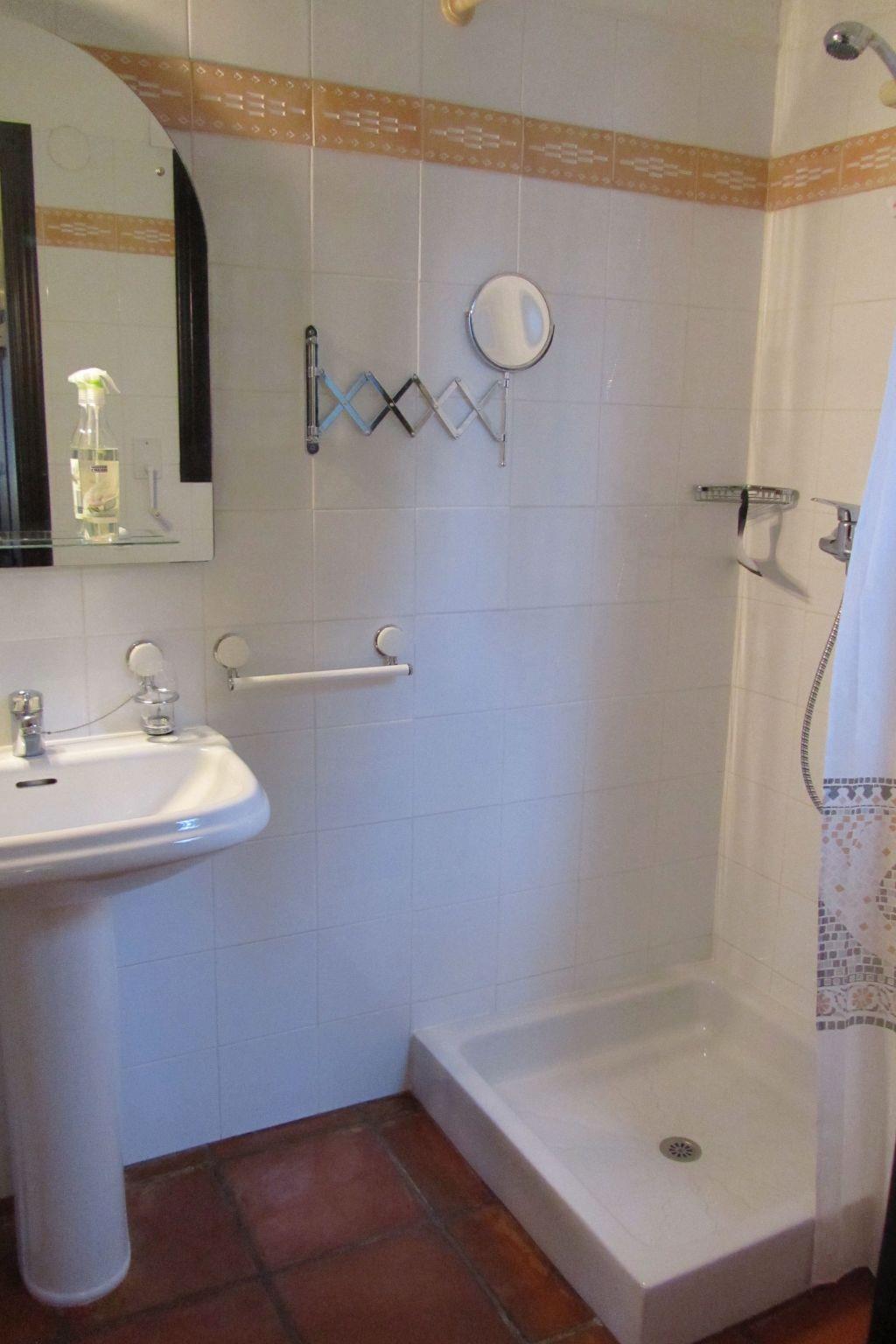 The villa was built in 1994 by a German architect as a holiday property, which was only used by him and his wife. The planning and construction were carries out with attention to detail. Dark wooden beams, white walls and terracotta tiles offer a typical Spanish flair. Wooden doors, beautiful bathrooms and high end furnishings will enchant you. The 280 m² finca accommodates up to eight people. The large living room houses a fireplace, a sofa and a satellite television and a stereo with a USB connection. The large, separate kitchen is furnished with all necessary appliances including a refrigerator/ freezer, an oven, a dishwasher, a coffee maker and a toaster. The dining table for eight lets you enjoy meals together. There are two bedrooms on the ground floor. One bedroom has an en-suite bathroom with a shower and a toilet. The bedroom is furnished with two single beds which can be combined to a double bed if needed. The second bedroom is furnished with a double bed, a wardrobe, a table and two chairs and a mirror. The bathroom boasts a shower and a toilet. Two more bedrooms and two additional bathrooms are located on the top floor. The master bedroom has a dressing room and a television room and an en suite bathroom. The second bedroom is furnished with a French double bed, a mirror and a wardrobe. The first bathroom boasts a shower, a whirlpool bathtub and a toilet. The second bathroom boasts a shower. There is also a separate toilet. The house has central heating. Firewood for the fireplace is available. Additional wood can be purchased locally. The entire house except for the fourth bedroom, the living room and the bathroom is air conditioned.