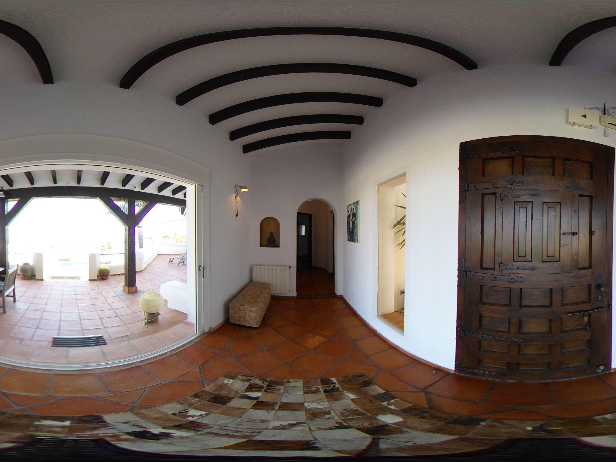 The finca is at the heart of the upscale Monte Pego neighbourhood. It is located between Alicante and Valencia, across from Ibiza. The beautiful property sits on the end of a road and offers stunning views over the ocean and the mountains.High end, traditional, yet modern villa in a stunning location with gorgeous views over orange groves, rice fields, mountains and the ocean; discover stunning scenery, coastline, long sandy beaches and relax by the pool and in the Jacuzzi. Enjoy the beautiful Mediterranean garden and the patios.