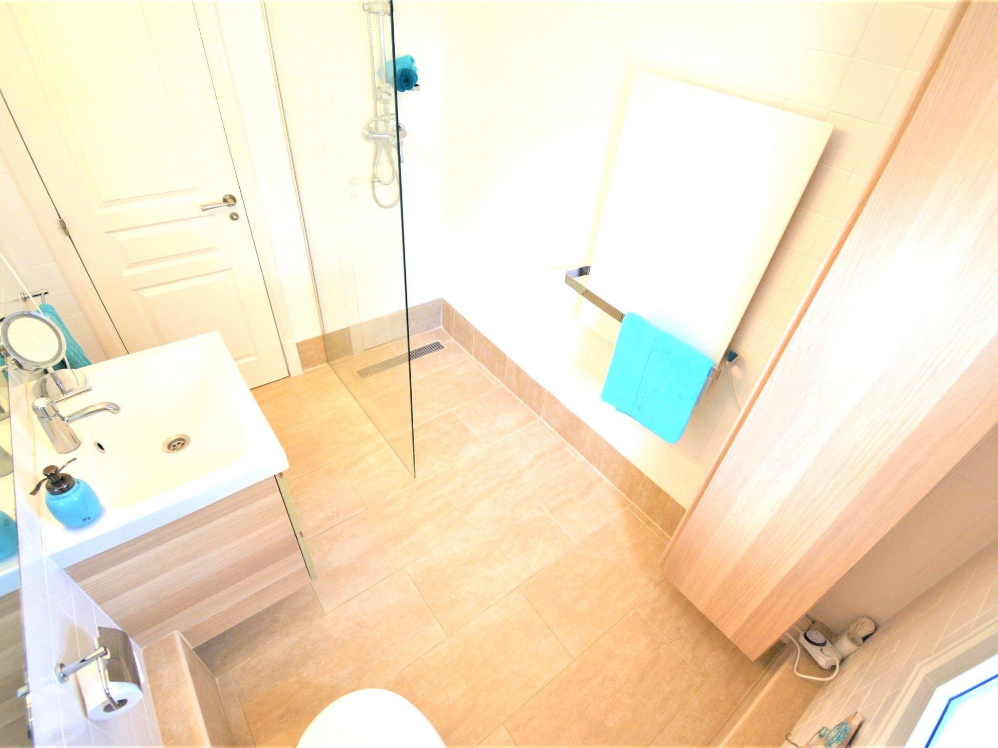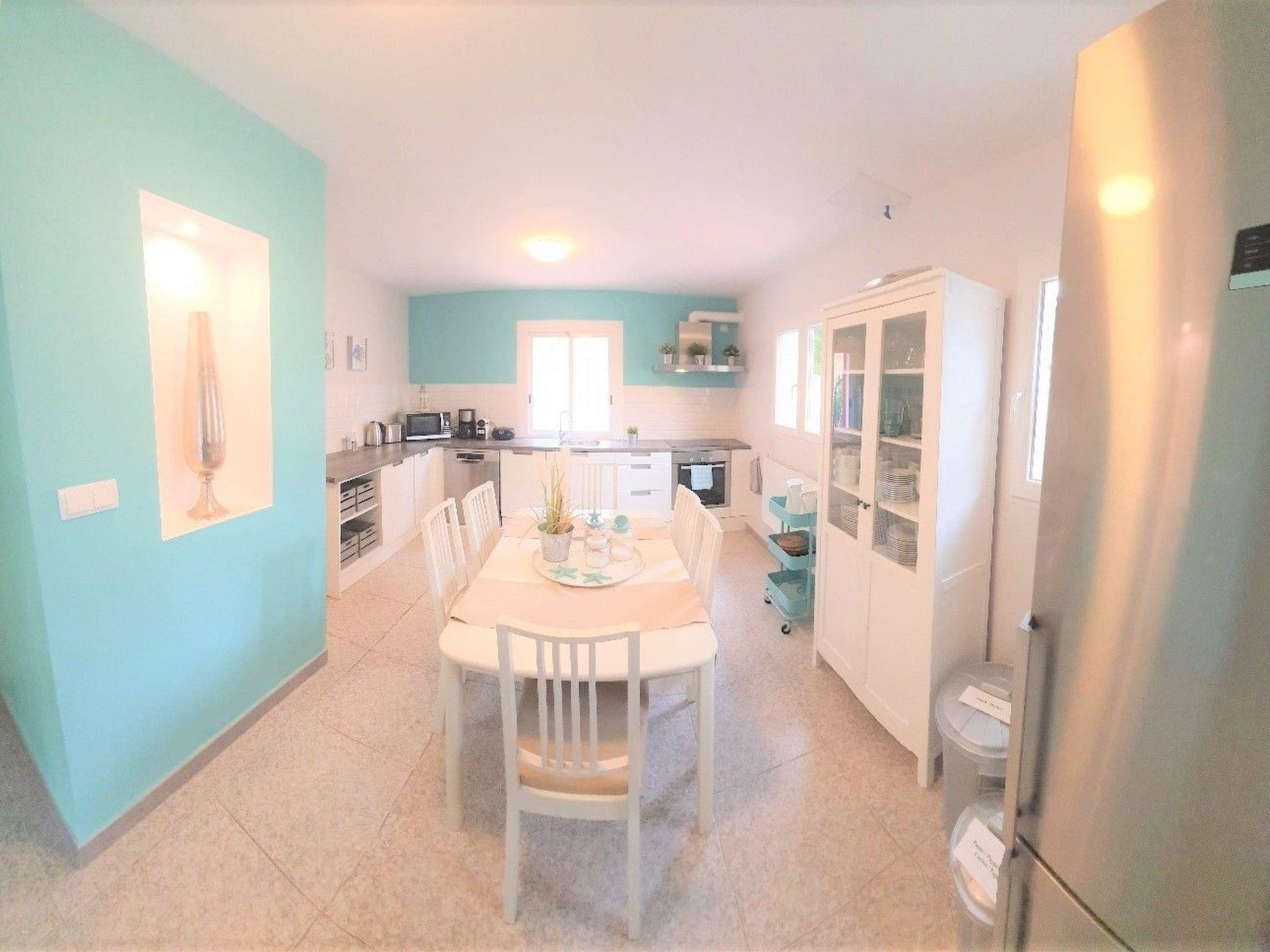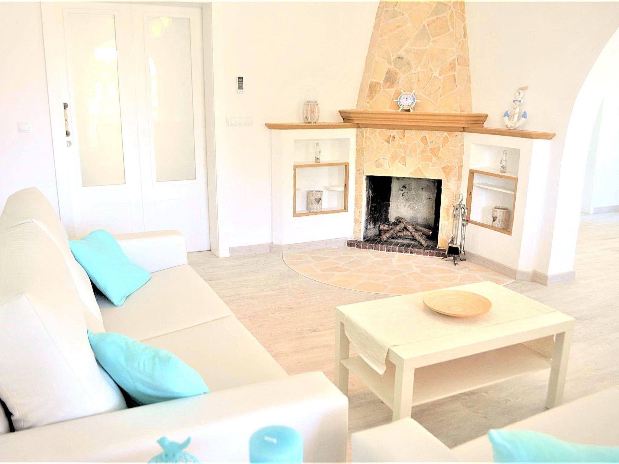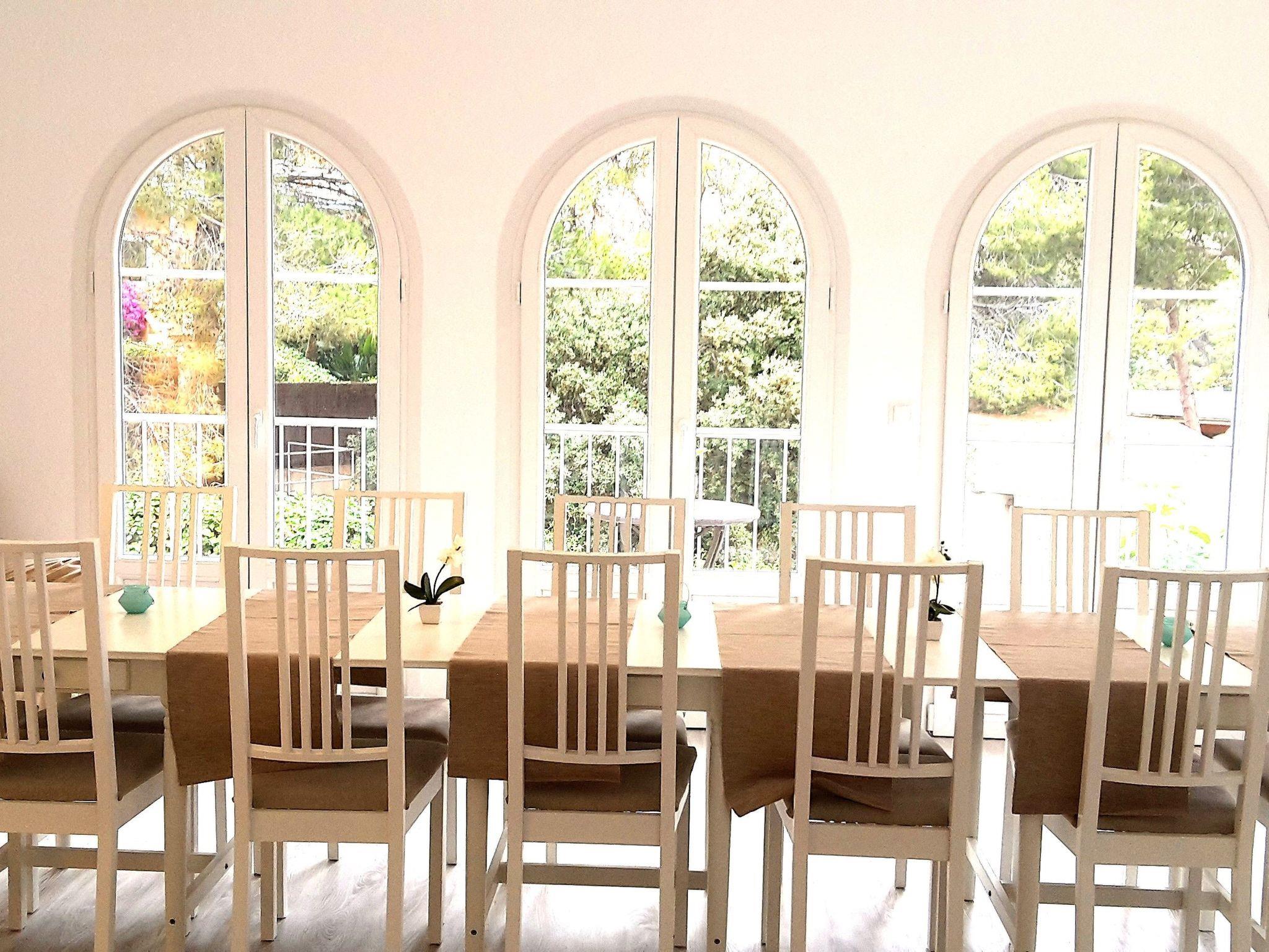 The holiday villa close to the beach with high ceilings and stucco has 4 fully equipped flats, which are connected by a common staircase. Inside the villa there are 6 double bedrooms with safe, 4 living rooms with large sofa beds and 4 TVs, 4 fully equipped kitchens, 1 large dining room, 6 bathrooms, 1 large sauna with extra 4 showers and changing room with WC and 1 storage room for bicycles. The house has fibre optic internet, air conditioning and heating throughout, mosquito nets, shutters, shutters, social games, radio, 4 Nespresso coffee machines and other coffee machines, etc.