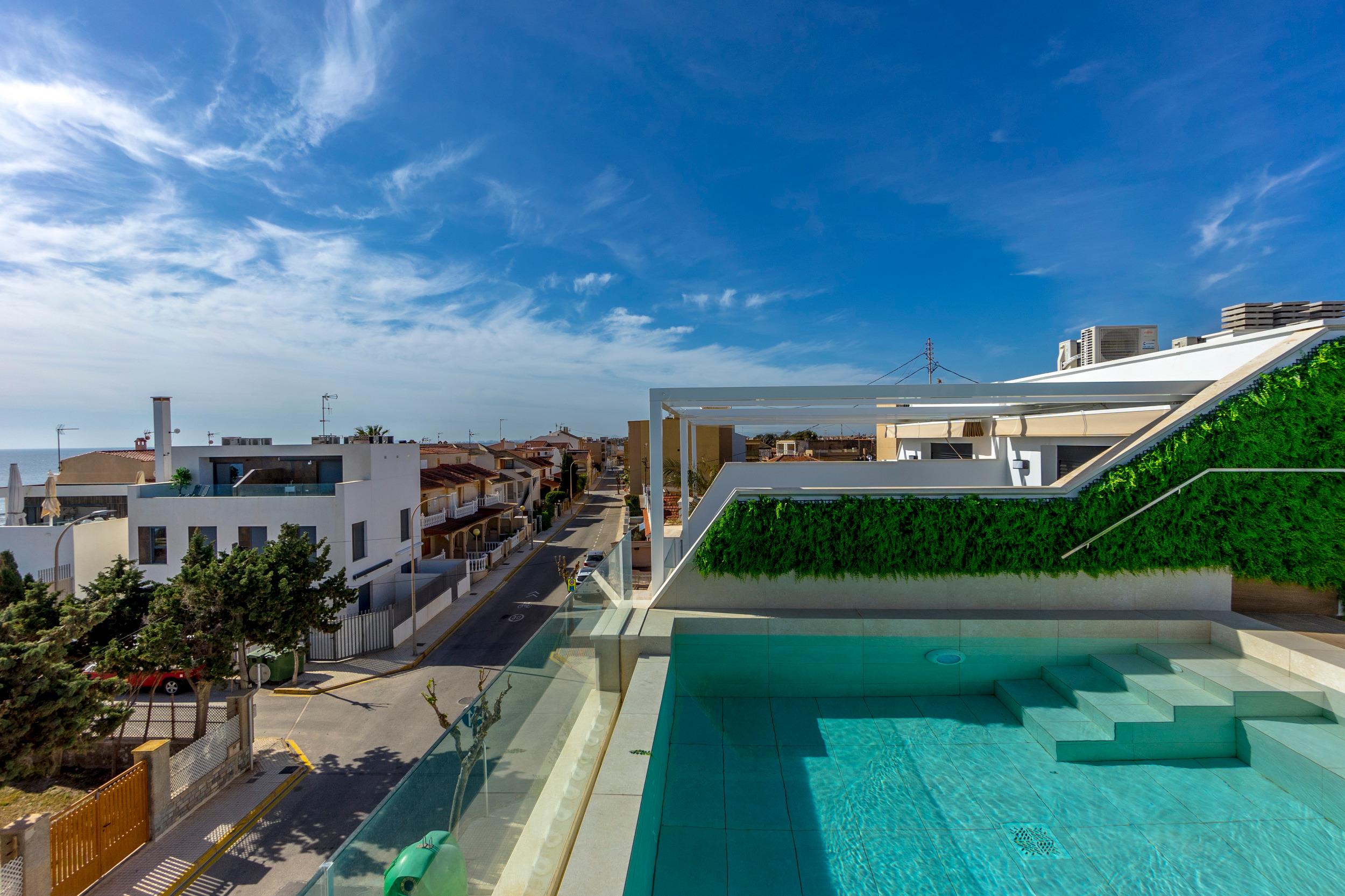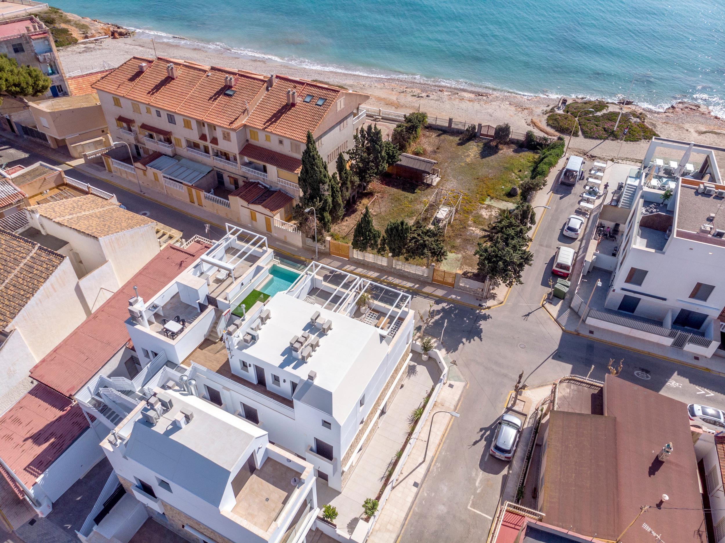 Der Flughafen Alicante ist in 50 Minuten erreichbar, während der Flughafen San Javier lediglich 13 Kilometer entfernt ist. Somit sind beide Flughäfen bequem erreichbar und bieten eine gute Anbindung an das Objekt. Die Umgebung des Neubaus ist geprägt von einer malerischen Landschaft und einer entspannten Atmosphäre, die sowohl für Erholungssuchende als auch für Aktivurlauber attraktiv ist. Zahlreiche Restaurants und Cafés laden in der Umgebung zum Genießen lokaler und internationaler Spezialitäten ein, während die nahegelegenen Strände und Buchten zum Sonnenbaden und Schwimmen einladen.