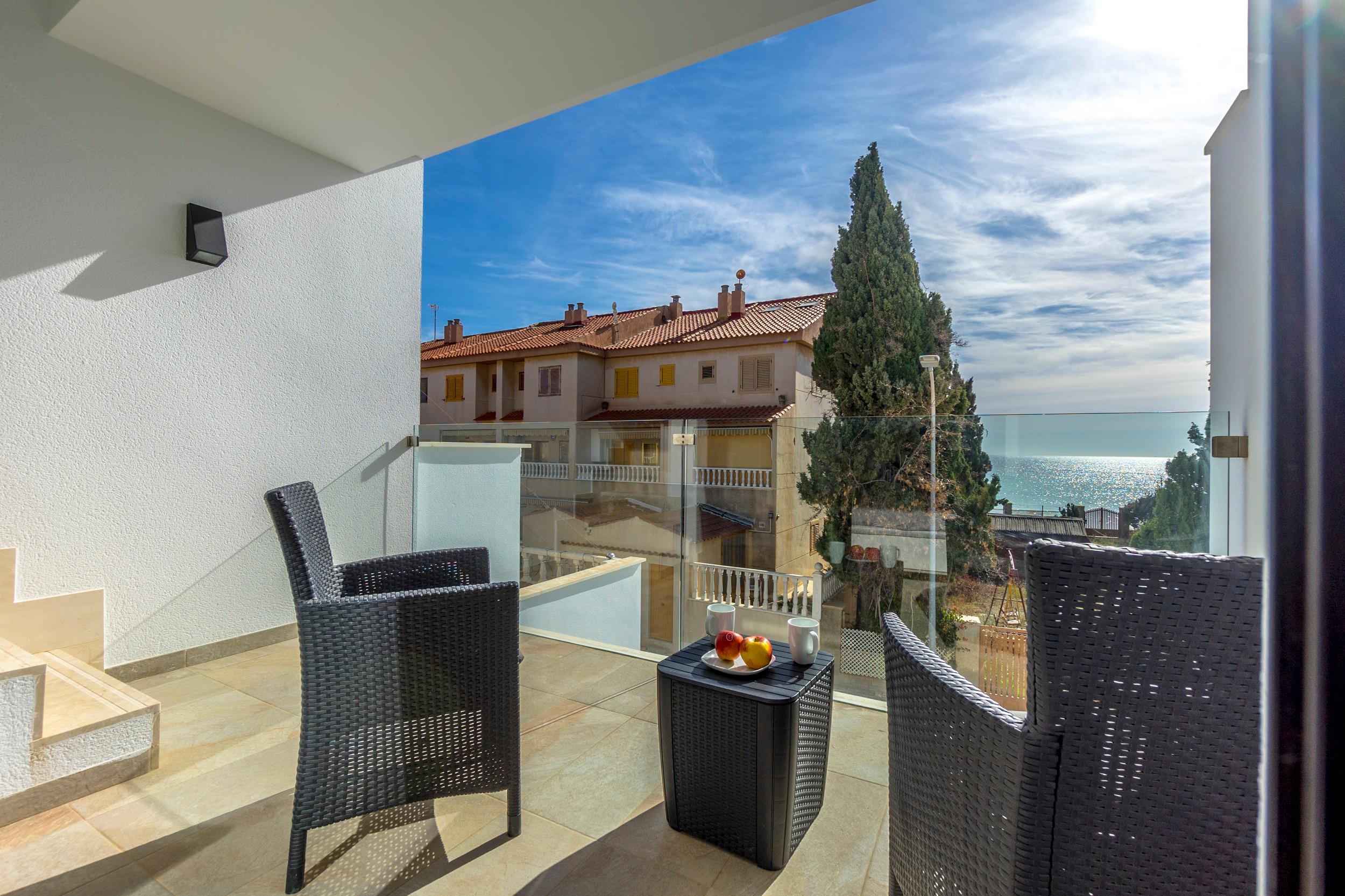 Der neu erbaute Wohnkomplex besticht durch seine helle und hochwertige Einrichtung sowie ansprechende Dekoration. Er lädt nicht nur zum Entspannen auf dem bequemen Sofa ein, sondern auch zu gemeinsamen Familienmahlzeiten im gemütlichen Esszimmer. Des Weiteren können Sie zu zweit im Infinity-Pool auf einer der Terrassen mit atemberaubendem Meerblick entspannen. Der Pool wird mit zwei anderen Parteien gemeinschaftlich genutzt.