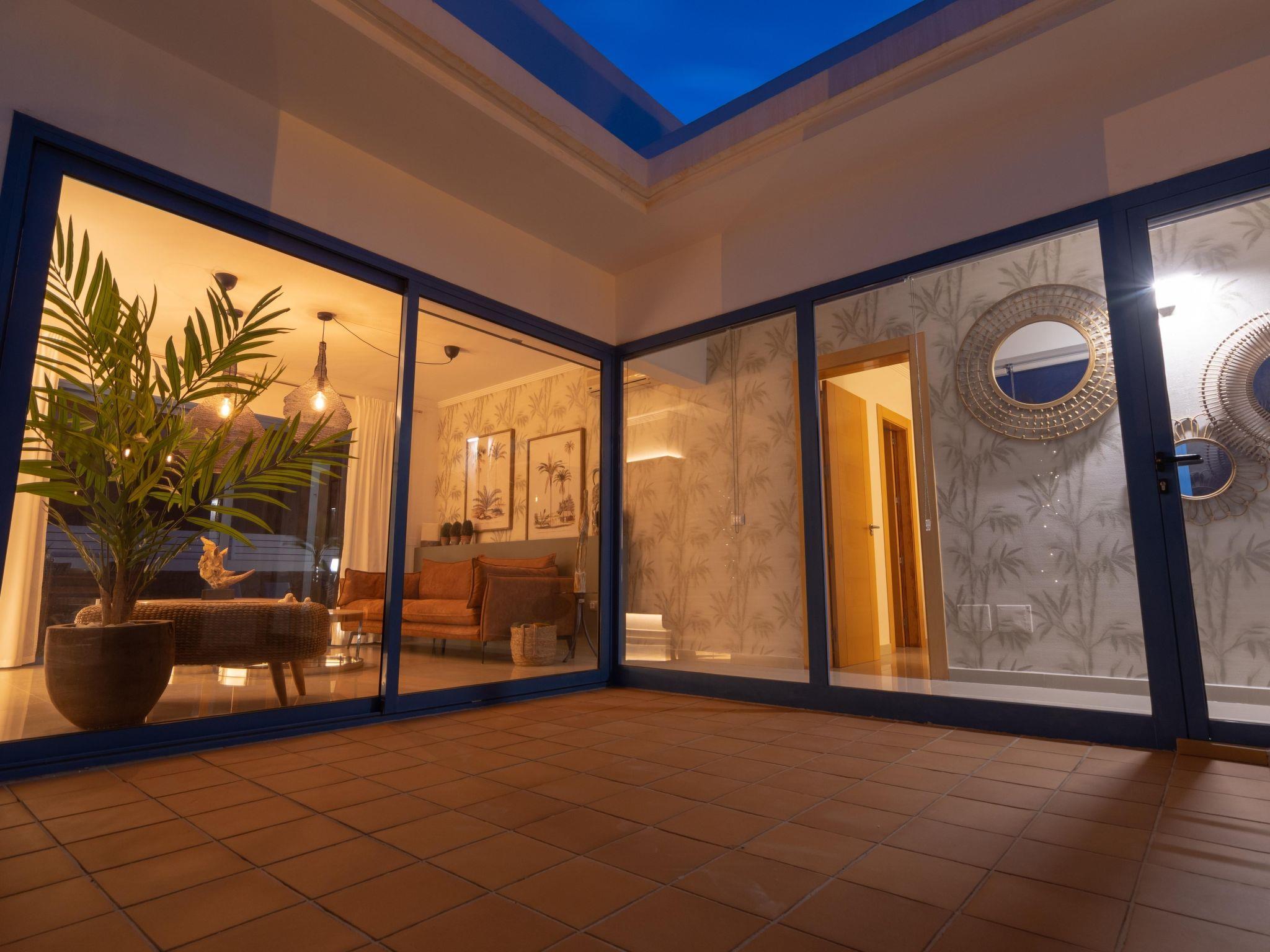 "Tahona", 3-room terraced house 65 m2. Practical and comfortable furnishings: living/dining room with satellite TV, digital TV, flat screen and air conditioning. Exit to the terrace, to the swimming pool. 1 room with 1 french bed (150 cm, length 190 cm), bath/WC and air conditioning. 1 room with 2 beds (90 cm, length 190 cm). Open kitchen (oven, dishwasher, 4 ceramic glass hob hotplates, toaster, kettle, microwave, electric coffee machine, Capsules for coffee machine (Dolce Gusto)). Exit to the terrace. Bath/WC. Terrace. Terrace furniture, deck chairs (4). View of the sea, the mountains and the swimming pool. Facilities: washing machine, safe, iron, children's high chair, baby cot, hair dryer. Internet (WiFi, free). Parking. Please note: non-smoking house. VV-35-3-0000322 // Reg. Nr.: ESFCTU0000350190005226230000000000000VV-35-3-00003221