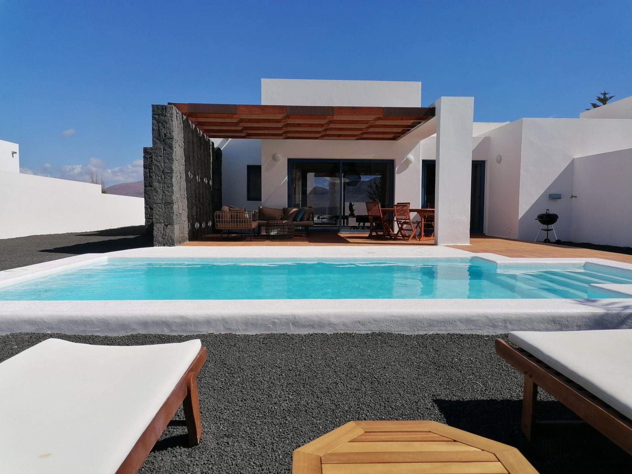 Bellavista 3 km from Playa Blanca: Beautiful terraced house "Bellavista". 2.5 km from the sea. Private: property 500 m2, swimming pool angular, heated (6 x 4 m, seasonal availability: 01.Jan. - 31.Dec.) with internal staircase. Barbecue. Stepped path (14 steps) to the house. Supermarket 500 m, restaurant 1.5 km, bus stop "El Pueblito" 550 m, sandy beach "Flaamingo" 2.5 km. Golf course (18 hole) 32 km, riding stable 1.5 km. Nearby attractions: Paque acúatico Agualava 1.8 km. Please note: car recommended.