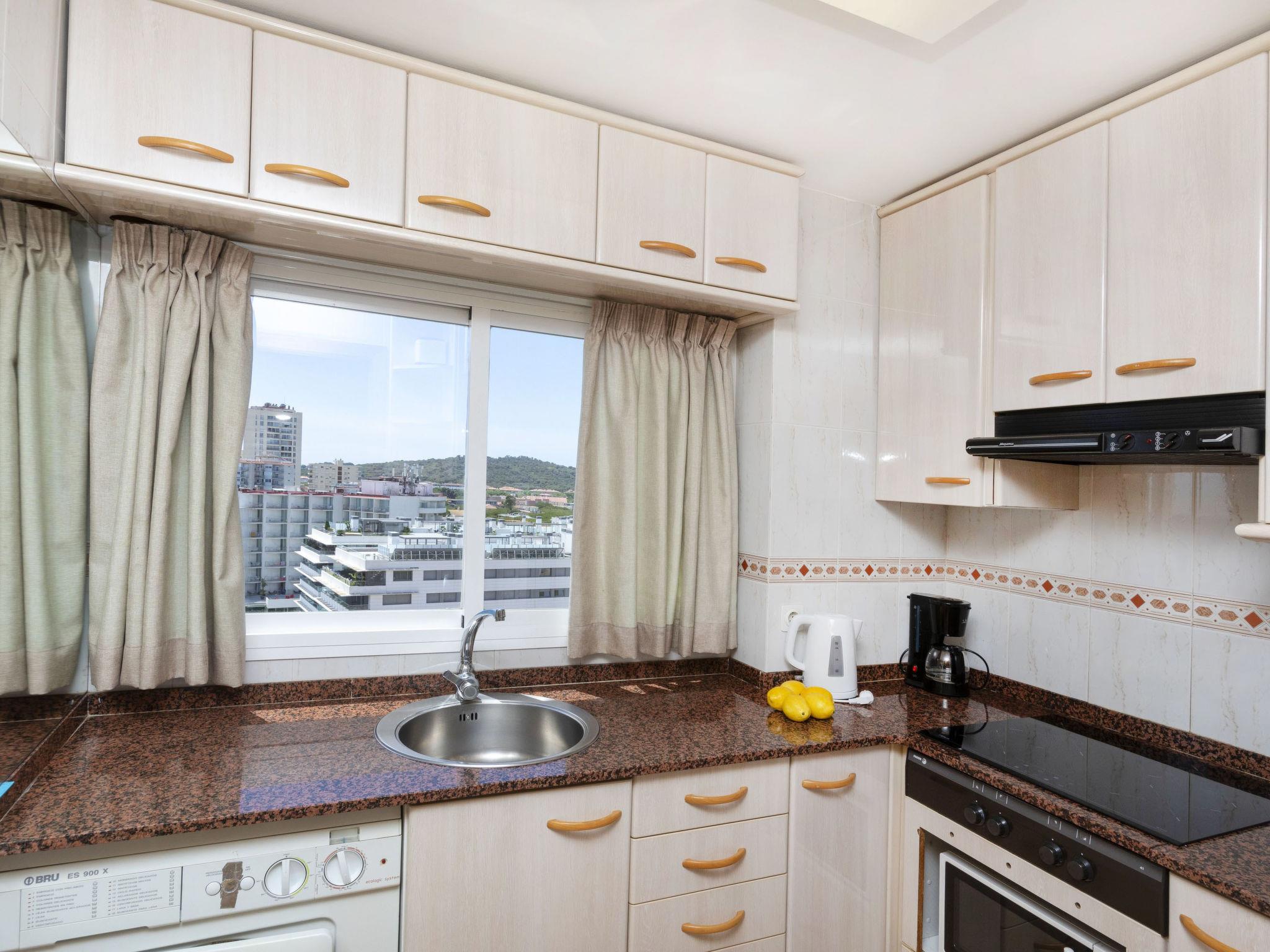 "Groc", 3-room apartment 70 m2 on 10th floor. Practical furnishings: living/dining room with digital TV. Exit to the terrace. 1 room with 1 french bed (150 cm, length 190 cm). Exit to the terrace. 1 room with 1 french bed (135 cm, length 180 cm). Kitchen (4 ceramic glass hob hotplates, toaster, kettle, microwave, electric coffee machine). Shower/WC. Heating. Large terrace. Terrace furniture. Marvellous view of the sea. Facilities: washing machine, iron, hair dryer. Please note: non-smokers only. TV only ES. HUTG-021250 // Reg. Nr.: ESFCTU00001701700010840700000000000000000HUTG-0212505