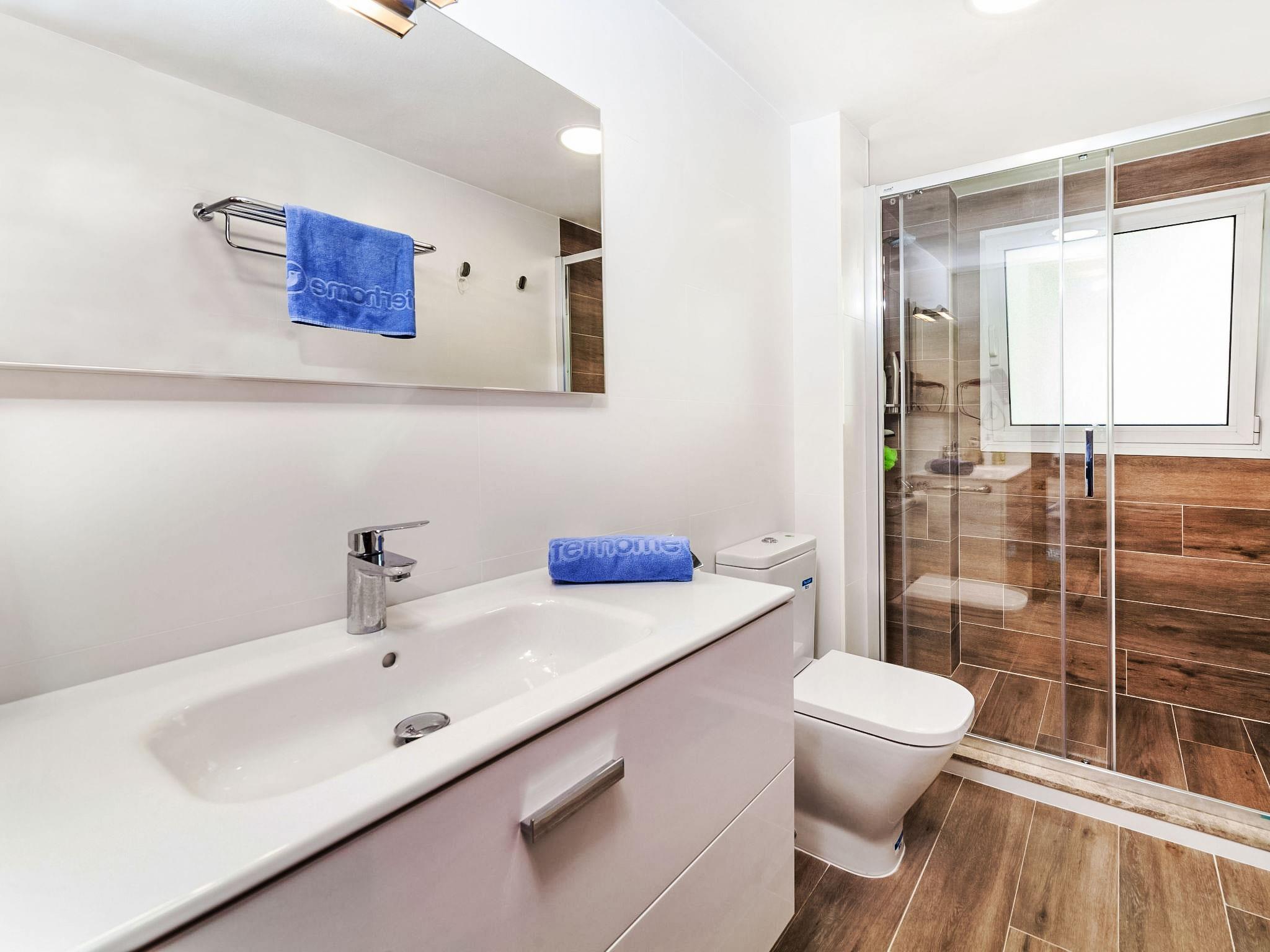 "Blau", 3-room apartment 67 m2 on 3rd floor. Renovated in 2017, practical and comfortable furnishings: living/dining room with digital TV. Exit to the terrace. 1 room with 1 french bed (150 cm, length 190 cm). 1 room with 2 beds (90 cm, length 190 cm). Kitchen (4 hot plates, oven, toaster, kettle, microwave, electric coffee machine). Shower/WC. Heating. Terrace. Terrace furniture. Marvellous view of the ocean. Facilities: washing machine, iron. Internet (WiFi, free). Parking space n 55. Please note: non-smokers only. TV only ES. HUTG-032488 // Reg. Nr.: ESFCTU00001701700010785100000000000000000HUTG-0324880