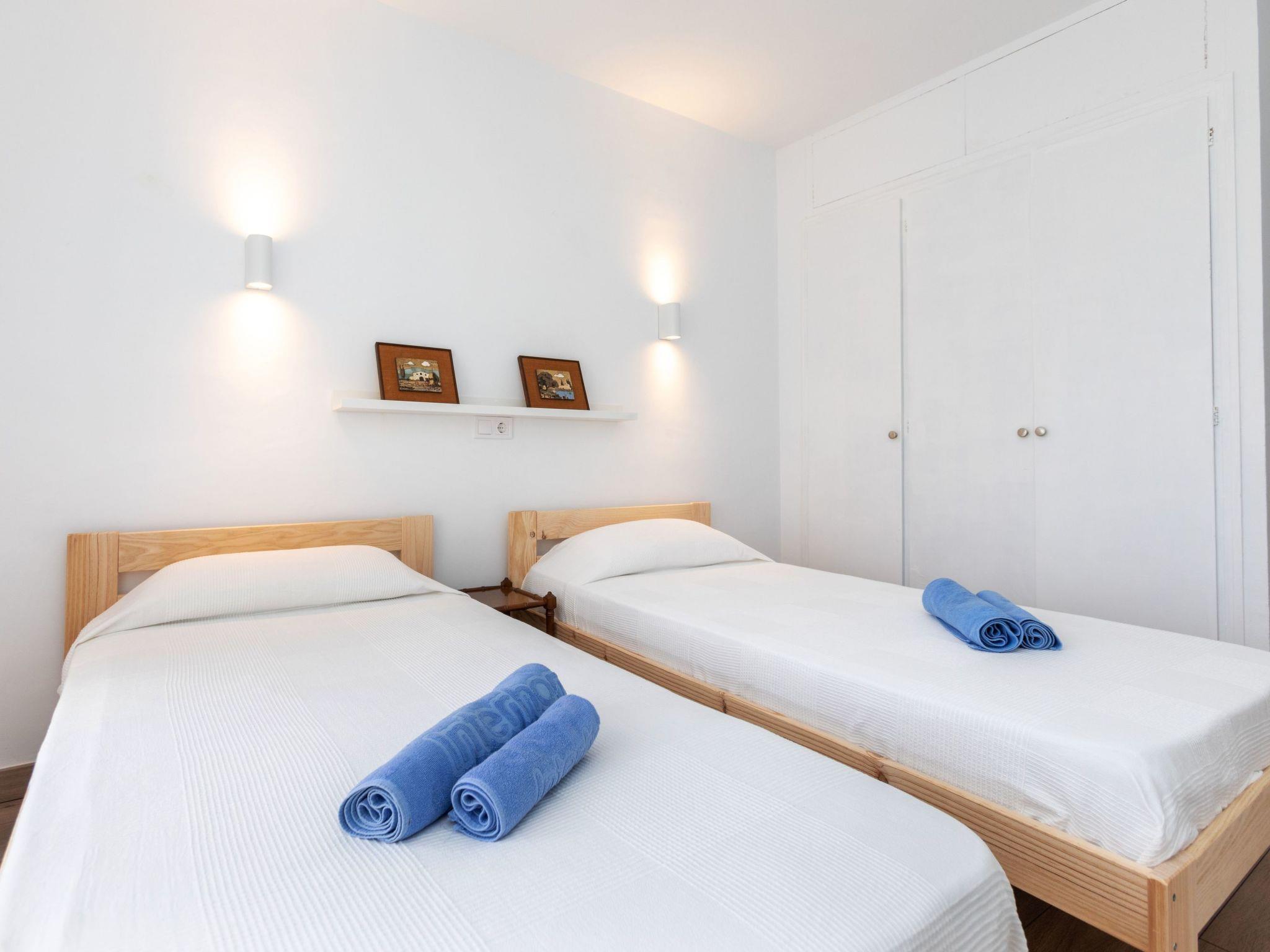 3-room apartment 60 m2 on 5th floor. Partly renovated in 2024, practical furnishings: living/dining room with digital TV. Exit to the terrace. 1 room with 1 french bed (150 cm, length 190 cm). Exit to the terrace. 1 room with 2 beds (90 cm, length 190 cm). Exit to the terrace. Kitchen (oven, 3 ceramic glass hob hotplates, toaster, kettle, microwave, electric coffee machine). Exit to the terrace. Shower/WC, sep. WC. No heating option. 2 terraces. Terrace furniture. View of the resort. Facilities: washing machine, iron, children's high chair, baby cot, hair dryer. Internet (WiFi, free). Parking (2 cars). Please note: TV only ES. HUTG-073728-70 // Reg. Nr.: ESFCTU00001701700010209200000000000000HUTG-073728-706