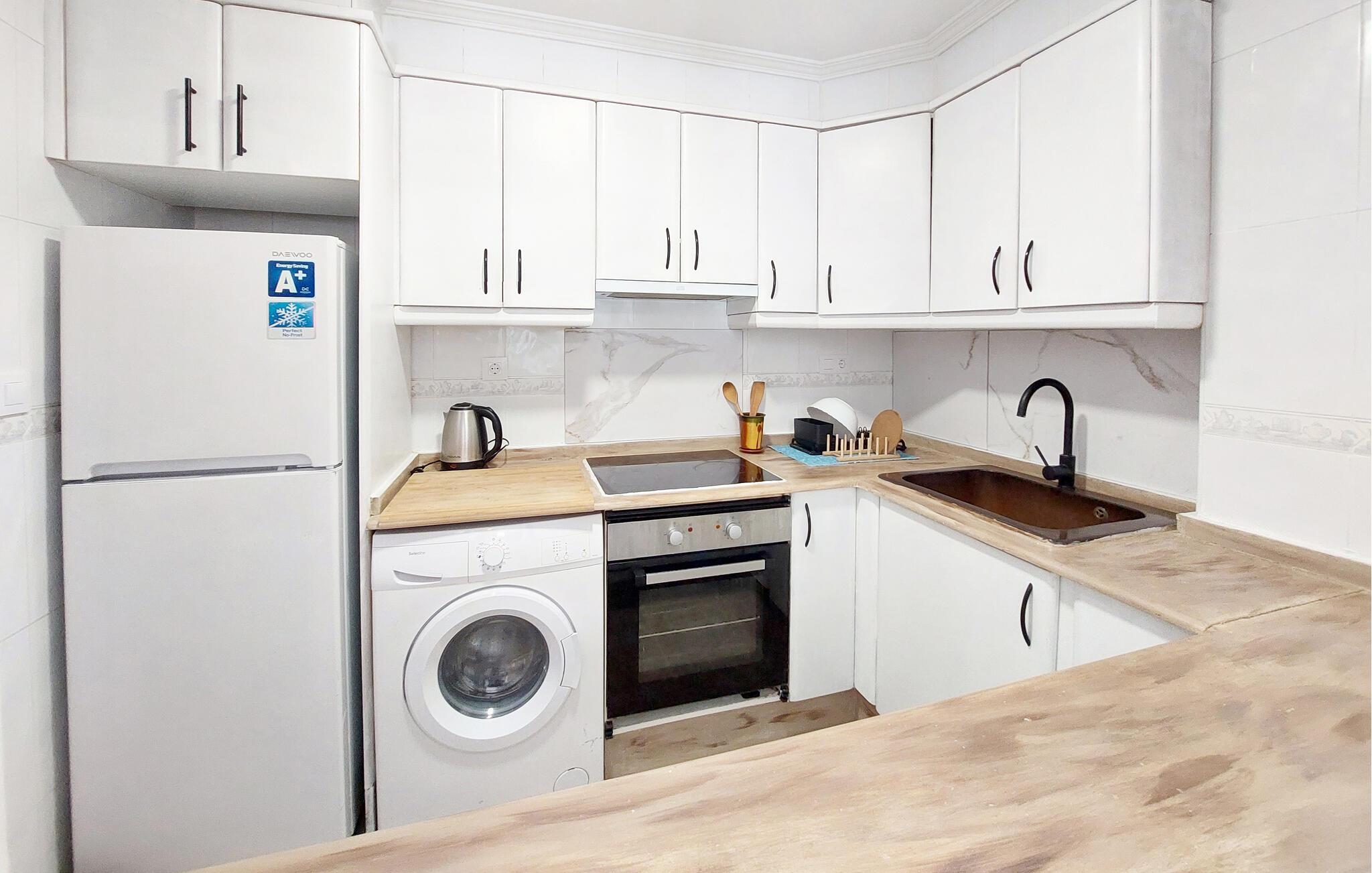 Gå ut på balkongen og nyt utsikten over området rundt. Ta med frokosten ut eller slapp av med en god bok på sittemøblene. Benytt deg av det romslige fellesbassenget i komplekset og svøm noen lengder i det kjølige vannet. Sett deg godt til rette på solsengene og nyt solen når du vil.
