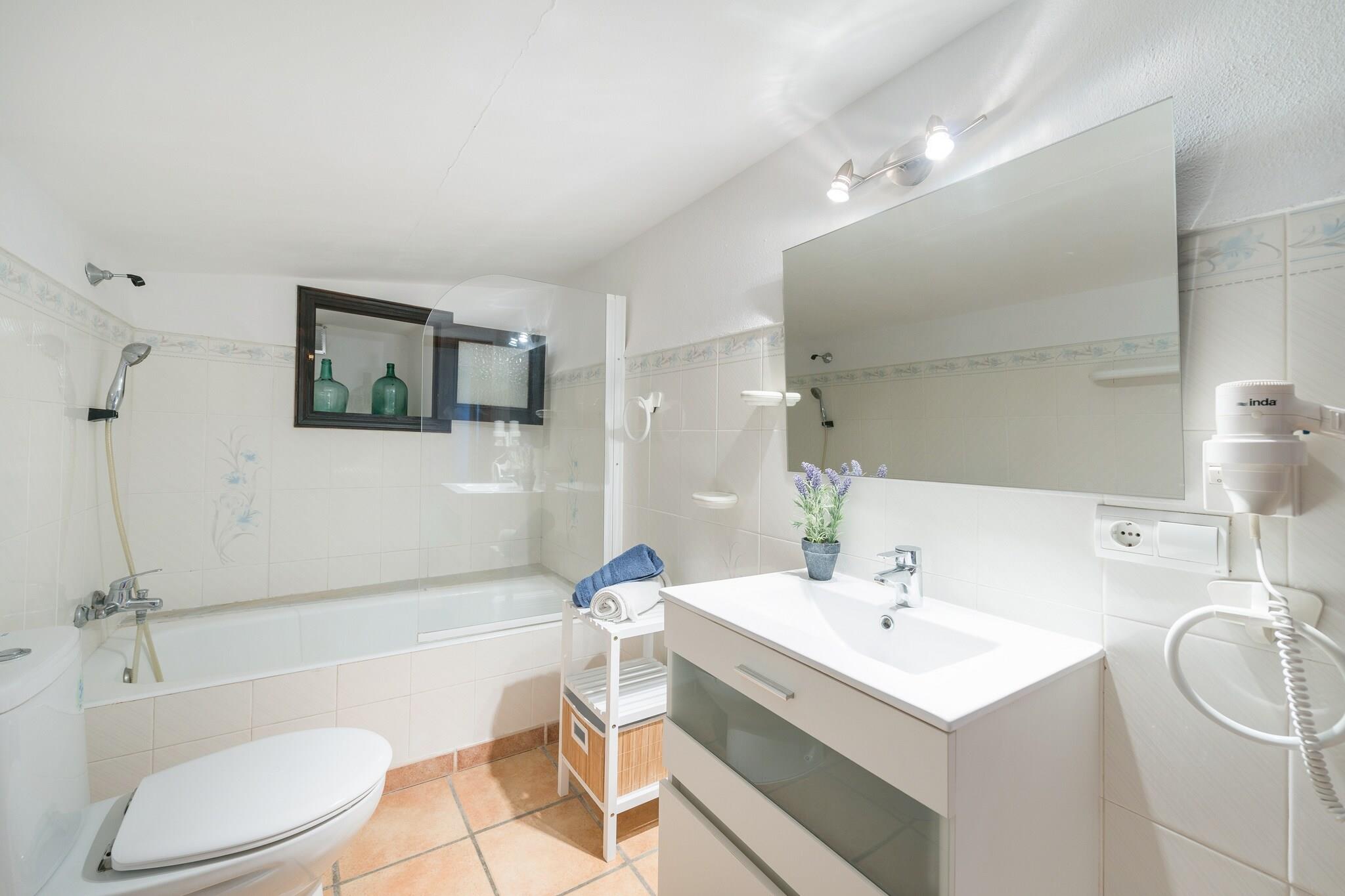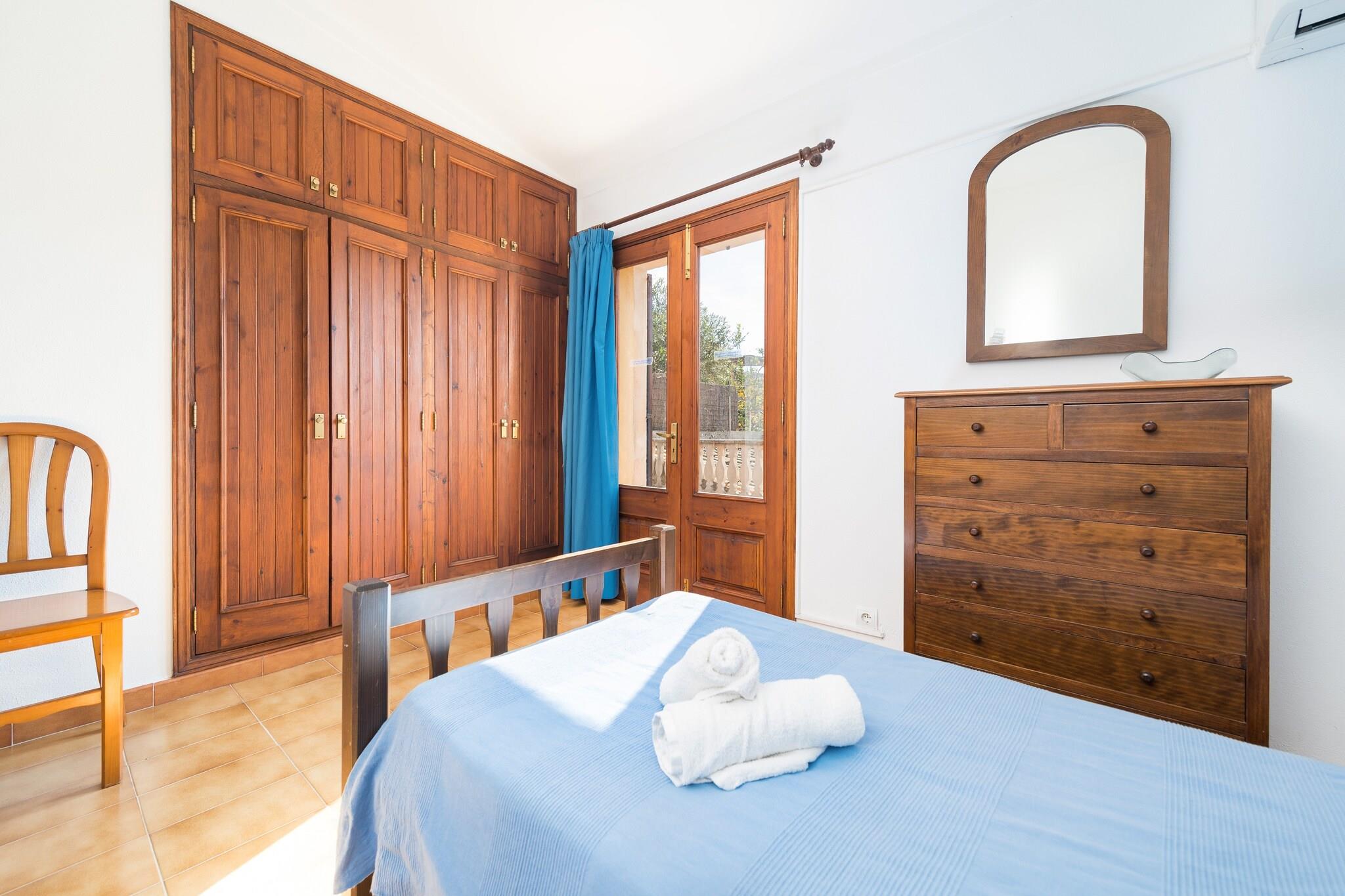 Sjarmerende utendørs retrett Slapp av i det private 8 x 4 m klorbassenget omgitt av plen og 5 solsenger. Den møblerte verandaen med grill, sittegruppe og bordtennis tilbyr den perfekte plassen for måltider, drinker eller spill. Den inngjerdede eiendommen gir privatliv med naboer i nærheten. Romslig innvendig stue Villaens stue, spisestue og kjøkken med åpen planløsning har to sofaer, satellitt-TV, DVD og et fullt utstyrt kjøkken med keramisk kokeplate og stekeovn. Ovenpå tilbyr fire soverom med klimaanlegg (to doble, to tvillinger) komfort, to med terrasse. To bad, en barneseng, barnestol, vaskemaskin, strykejern og strykebrett fullfører plassen. Ideell beliggenhet i nærheten Bare 900 meter fra Pollenças historiske sentrum finner du barer, restauranter, supermarkeder og et apotek. Tur- og sykkelstier starter i nærheten, med Puerto de Pollença-stranden 7 km unna og Golf Pollença kun 3 km unna. Husdyr ikke tillatt; arrangementer forbudt.