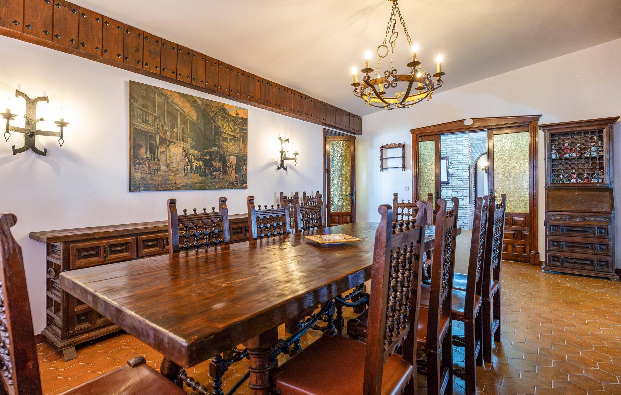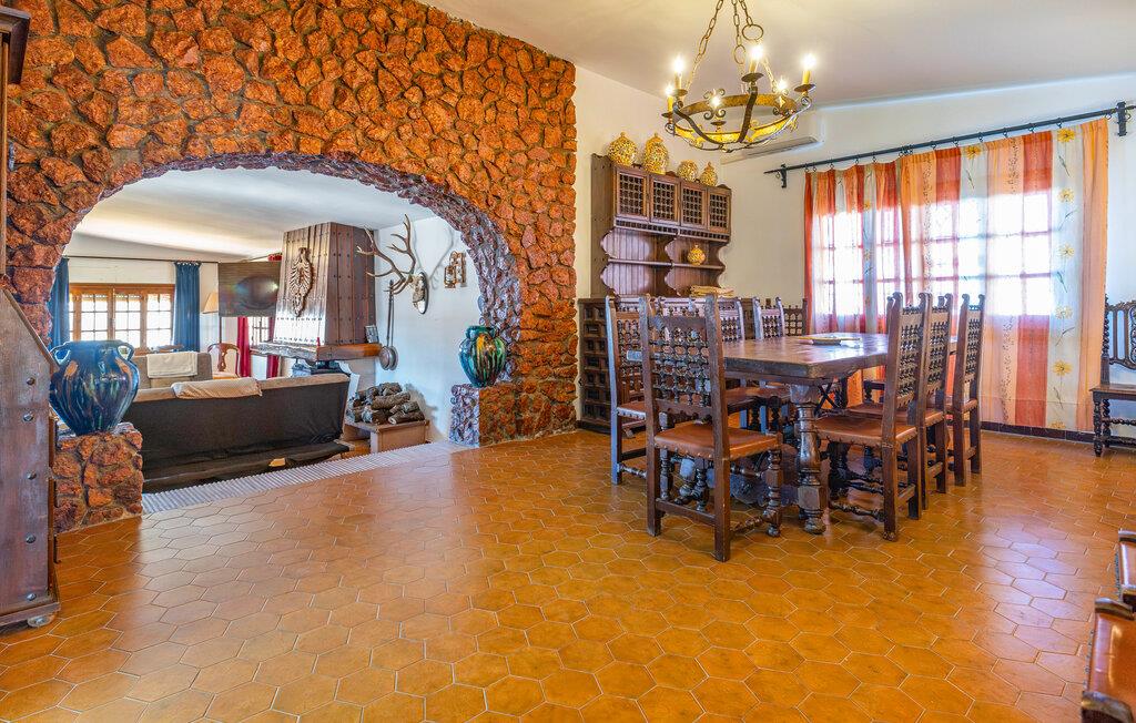 Denne autentiske og komfortable villaen gir deg god plass til å slappe av sammen med dine nærmeste i en stilfull og koselig atmosfære. Nyt måltidene sammen ved det lange spisebordet, og kos dere ved peisen om kvelden, hvor dere kan prate lenge mens flammene knitrer.