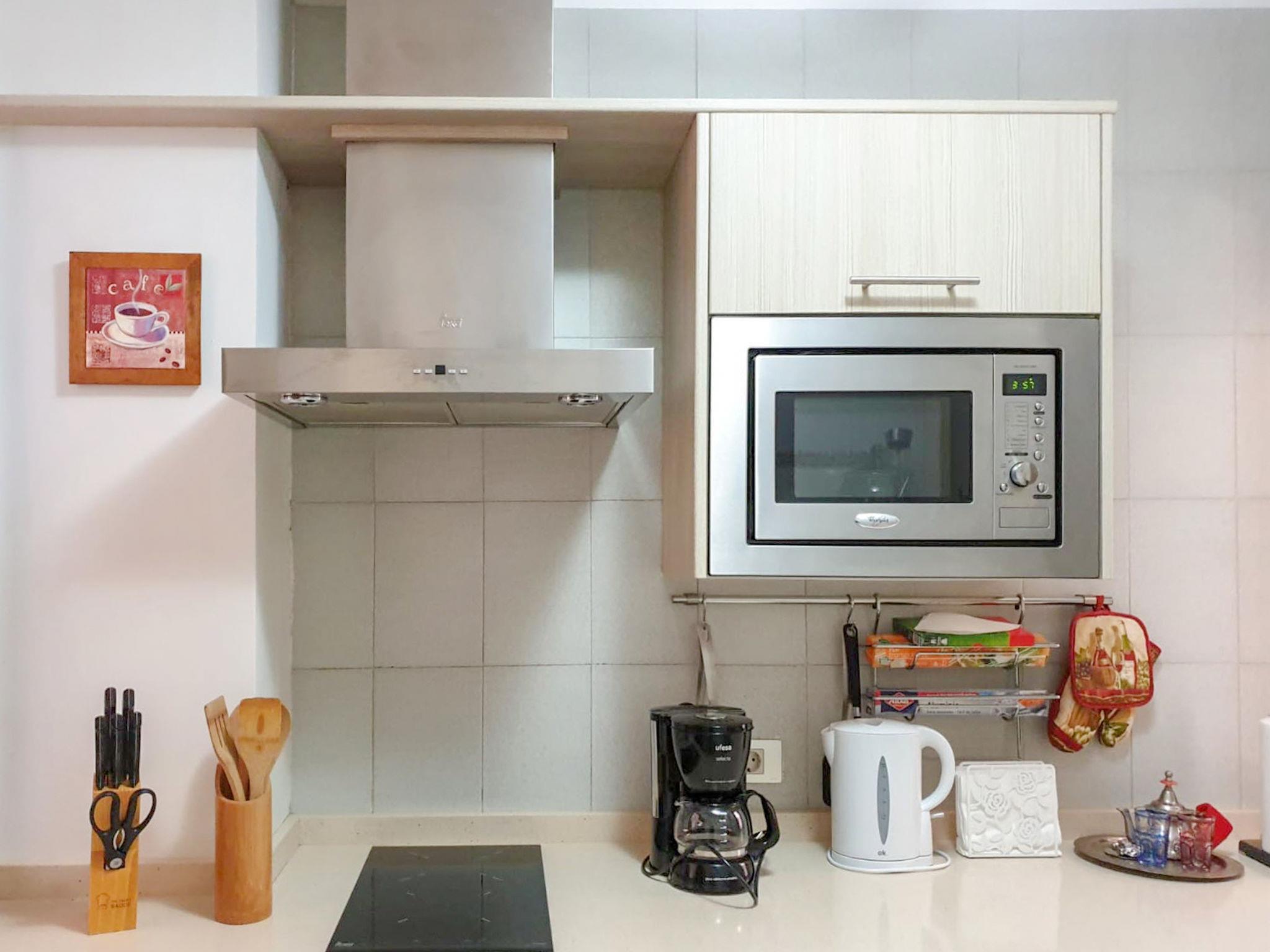 2-room apartment 100 m2, on the ground floor. Comfortable furnishings: living/dining room with 1 sofabed (length 135 cm), dining table and satellite TV (flat screen), DVD. Exit to the swimming pool. 1 double bedroom with 2 beds (90 cm, length 190 cm). Exit to the swimming pool. Kitchen (2 ceramic glass hob hotplates, microwave, freezer, electric coffee machine). Shower/bidet/WC. No heating option. Patio. Terrace furniture, barbecue, deck chairs (4), sitting area. Panoramic view of the sea. Facilities: washing machine, safe, iron, children's high chair, baby cot for up to 2 year olds, hair dryer. Internet (WiFi, free). VV-38-4-0089973 // Reg. Nr.: ESHFTU00003801100040445600100000000000000000000000004