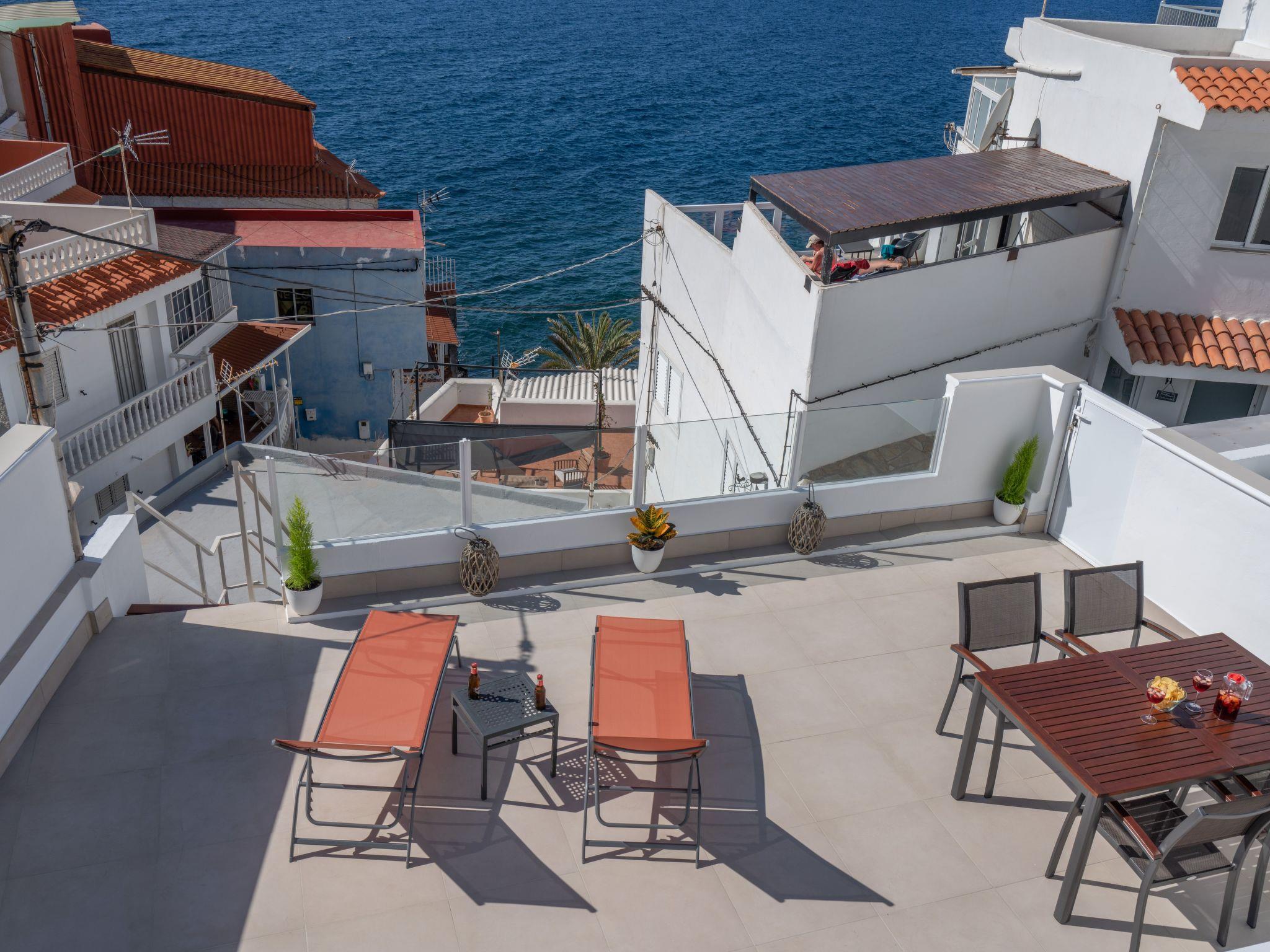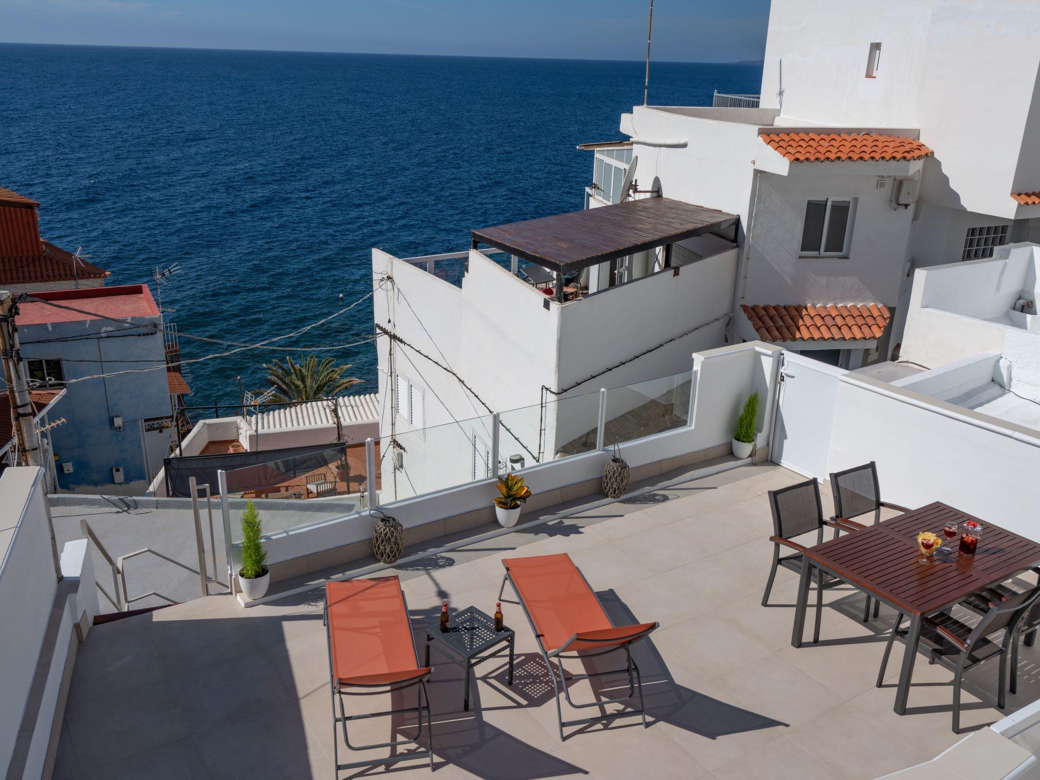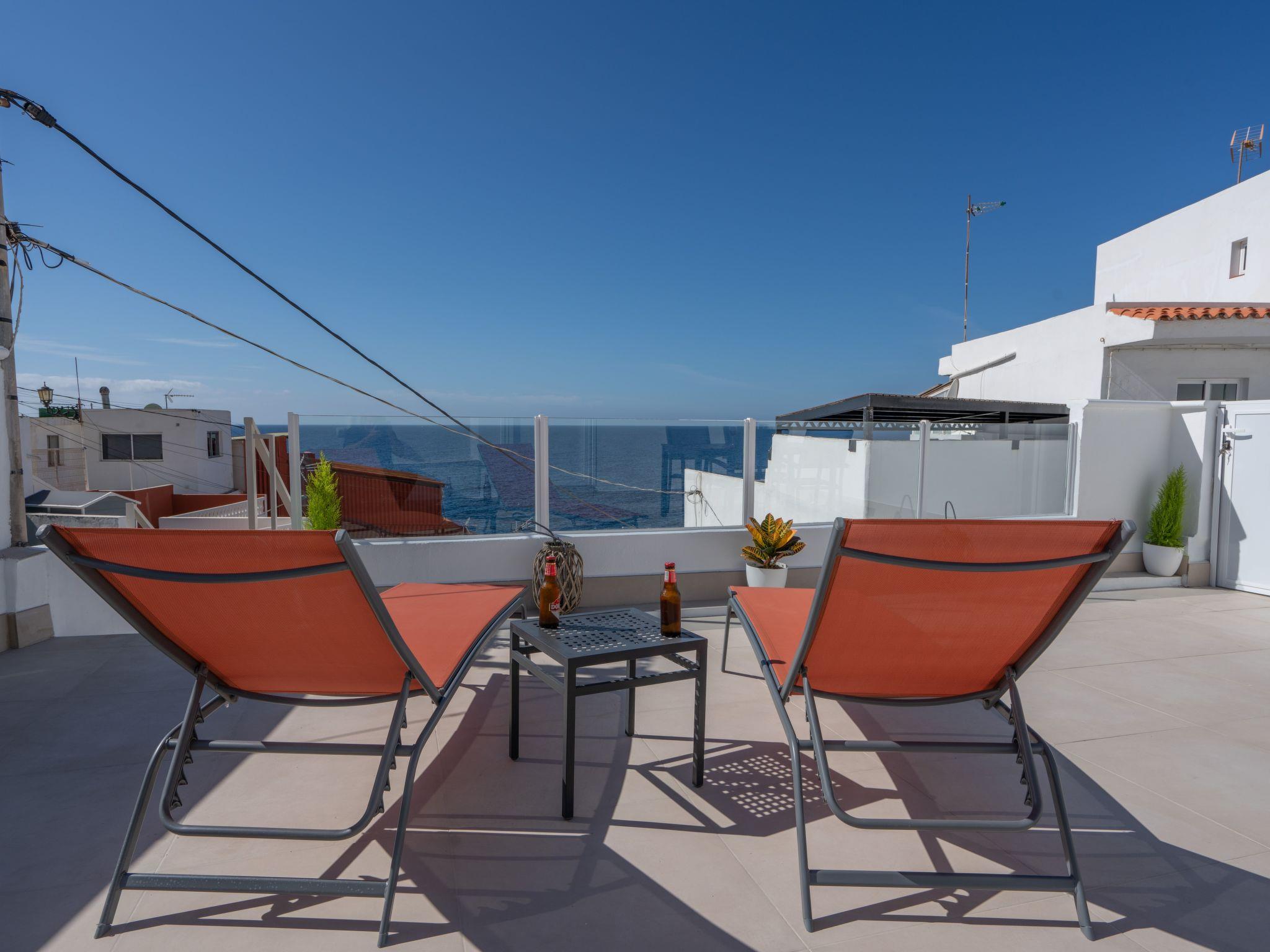 From the ground floor terrace, you can climb the stairs to the 40 m2 roof terrace where you have sun all day long. Sun loungers, (another) dining table with chairs and of course privileged views both to the sea and the mountains put the icing on the cake of this beautiful house. What are you waiting for to enjoy a traditional cave with the comfort of the 21st century?