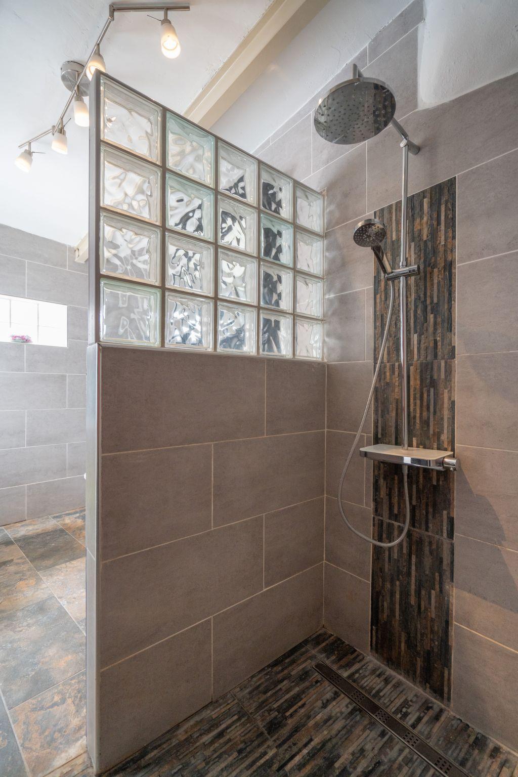 The dining room has a round table with comfortable chairs for those rare days when you can't eat outside. Next to the dining room is the living room/cave. Here you can enjoy a constant temperature all year round on the comfortable sofa or in the relaxing seats. There is fast internet via fibre optics and a 50" Smart TV with Chromecast so you can stream all your favourite content.