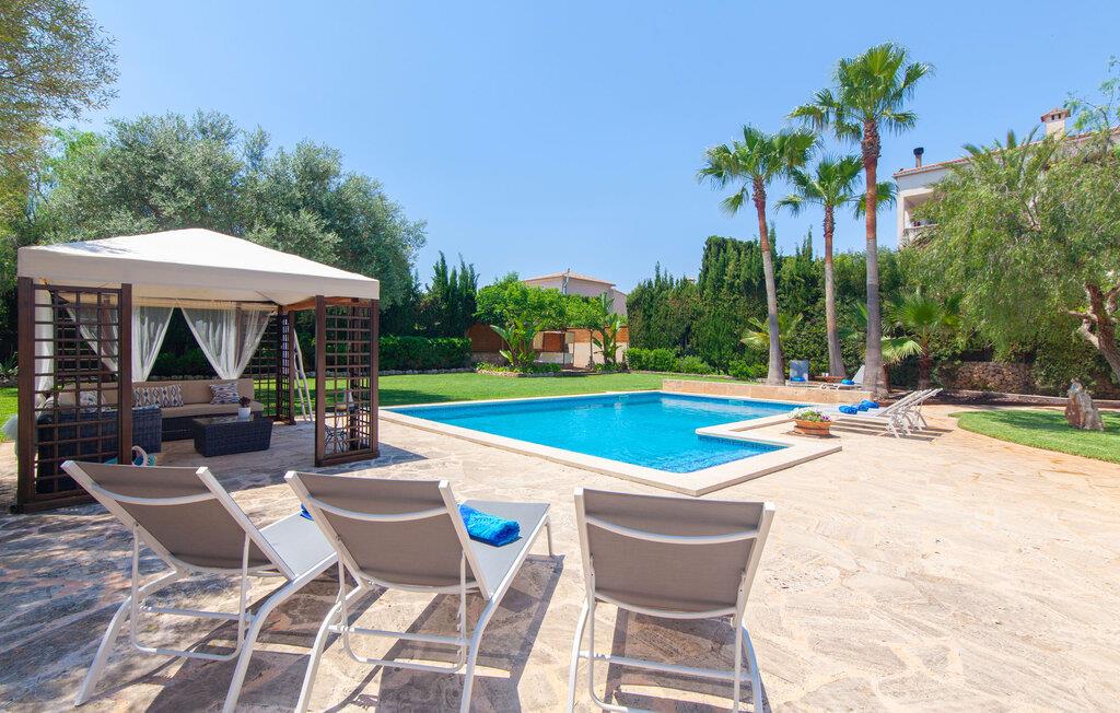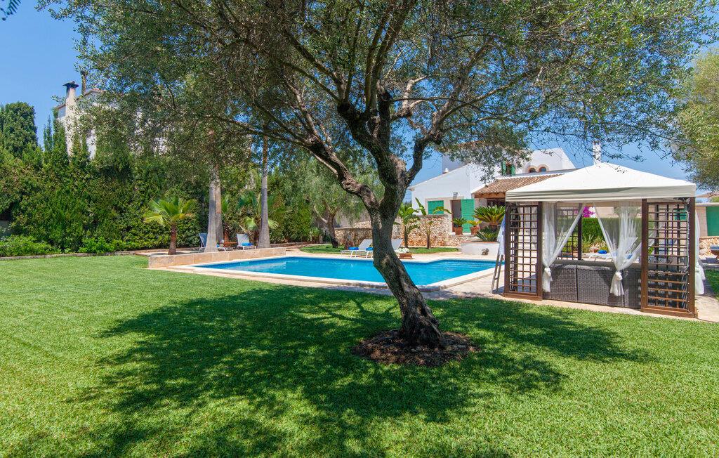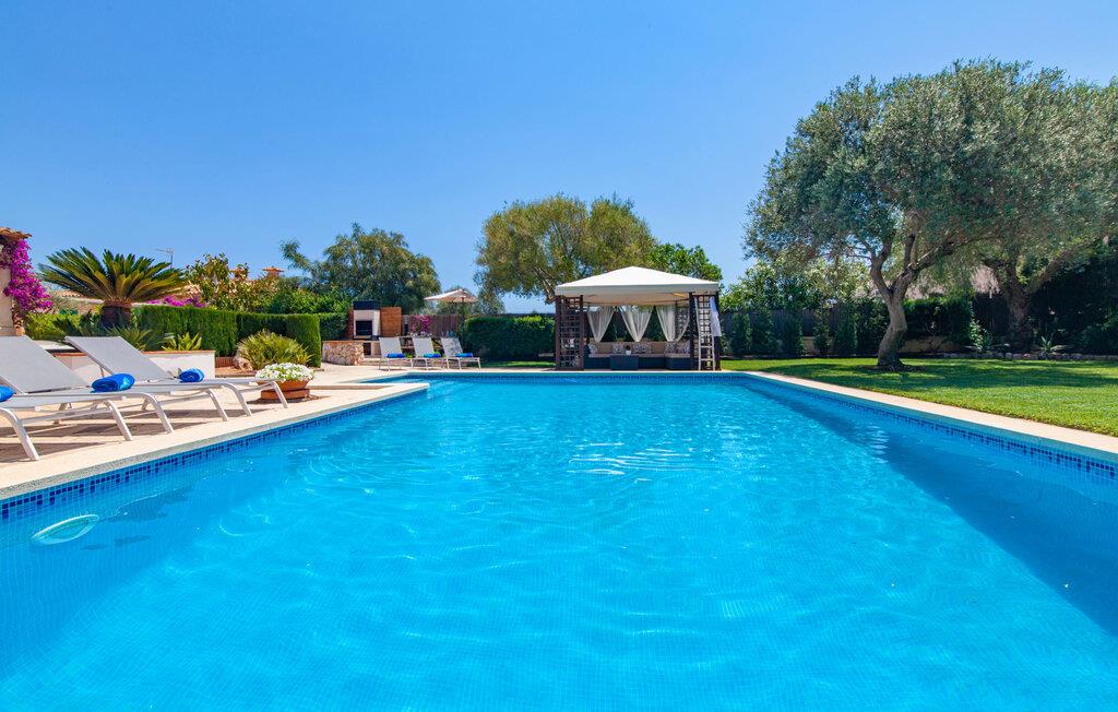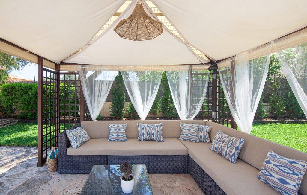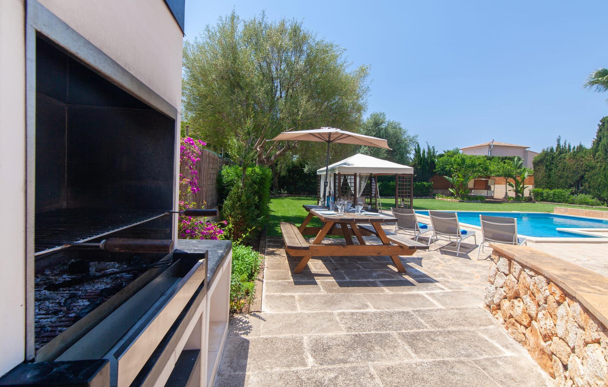 I Villa Rico kaster du ikke bort tiden - fra første øyeblikk av oppholdet vil du nyte en perfekt atmosfære som taler for seg selv: utallige trær omgir eiendommen og sørger for privatliv og sikkerhet ved å beskytte deg mot nysgjerrige blikk. Du kan nyte uteområdet, for her er det ikke bare vanlige hagemøbler, i dette tilfellet laget av fint tre, men også en utesofa og en seng, slik at du kan tilbringe natten under stjernene i milde temperaturer eller ta noen runder i måneskinnet i det komfortable bassenget, som er tilgjengelig via en gresk trapp. Den delvis overbygde terrassen ved huset sørger for at huden din får en kort pause fra solen før du skyver en av solsengene tilbake på den frodige, grønne plenen eller unner deg en plass ved steinbruddet ved bassenget Slapp av på steinheller for å fordype deg i en ferieroman mens du sakte opparbeider deg en appetitt, næret av den behagelige, aromatiske saltluften. Det er fint, for denne villaen har en meget moderne, installert grill hvor du har god plass til å marinere og tilberede delikatessene dine. Det lett forhøyede terrasseområdet med veranda og sittegruppe, som kan nås via noen få trappetrinn, er omgitt av imponerende blomster; utvalget av planter her er svært variert, og store palmer får deg også til å føle at du befinner deg i en liten, koselig park.