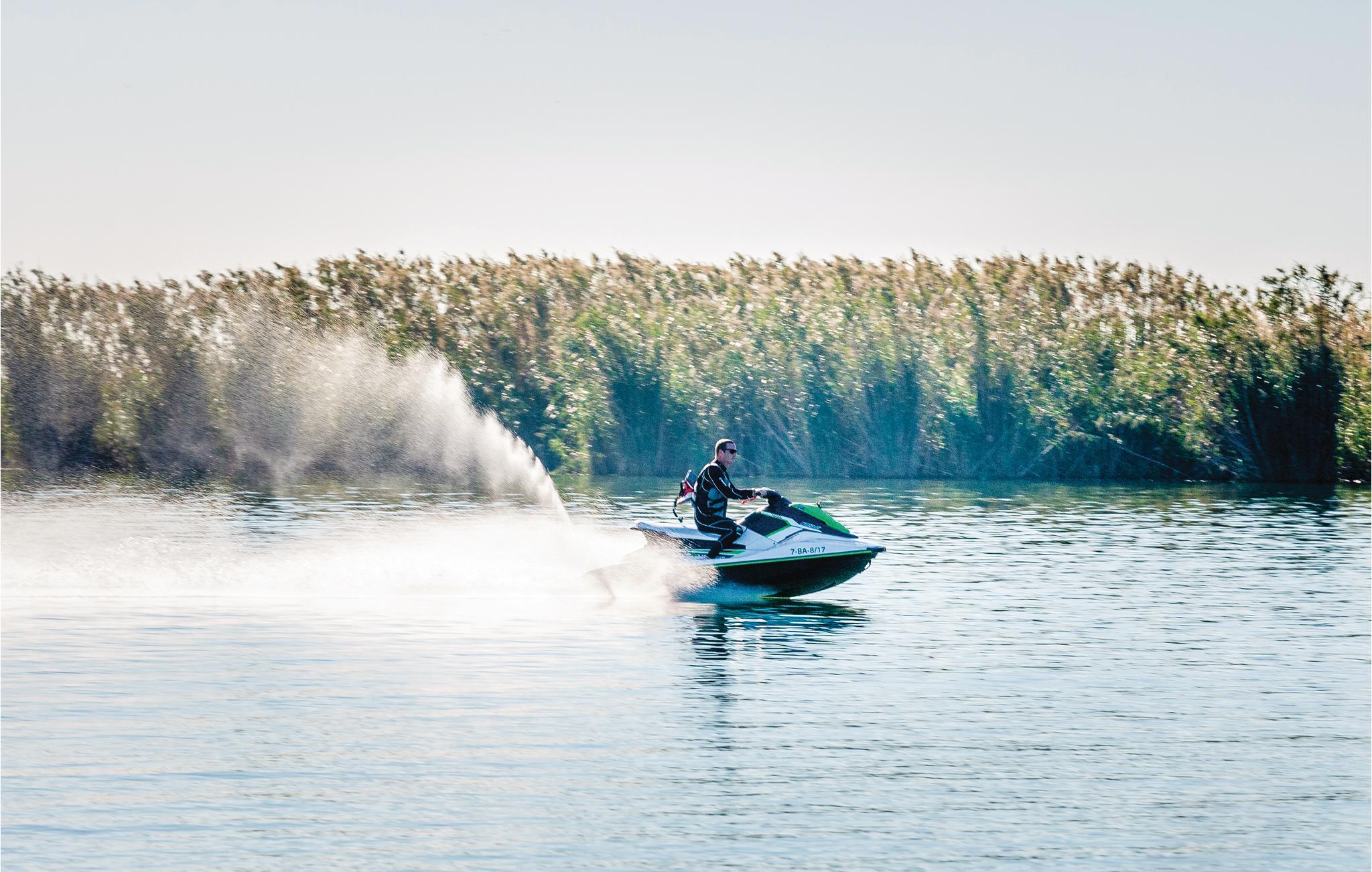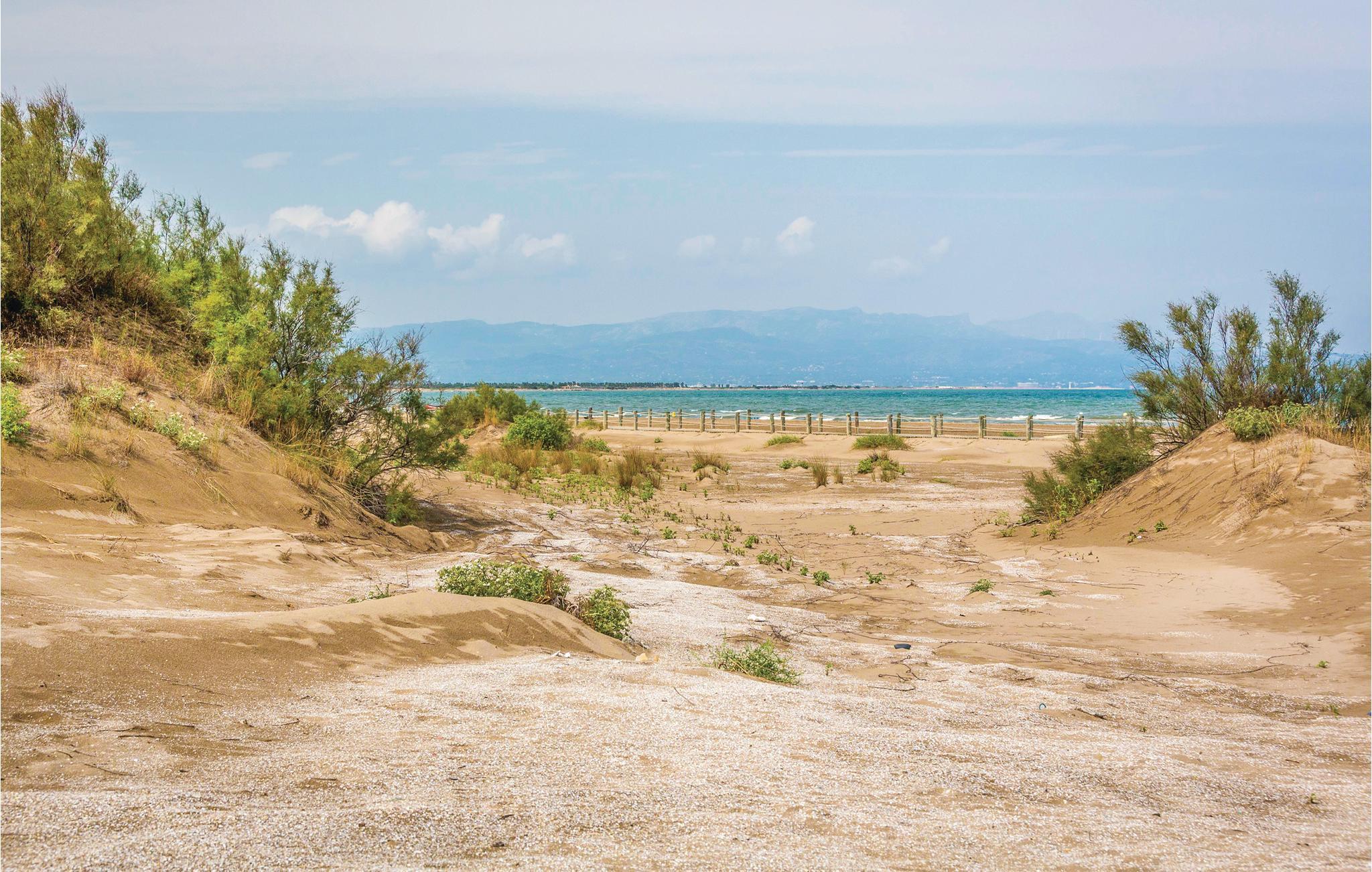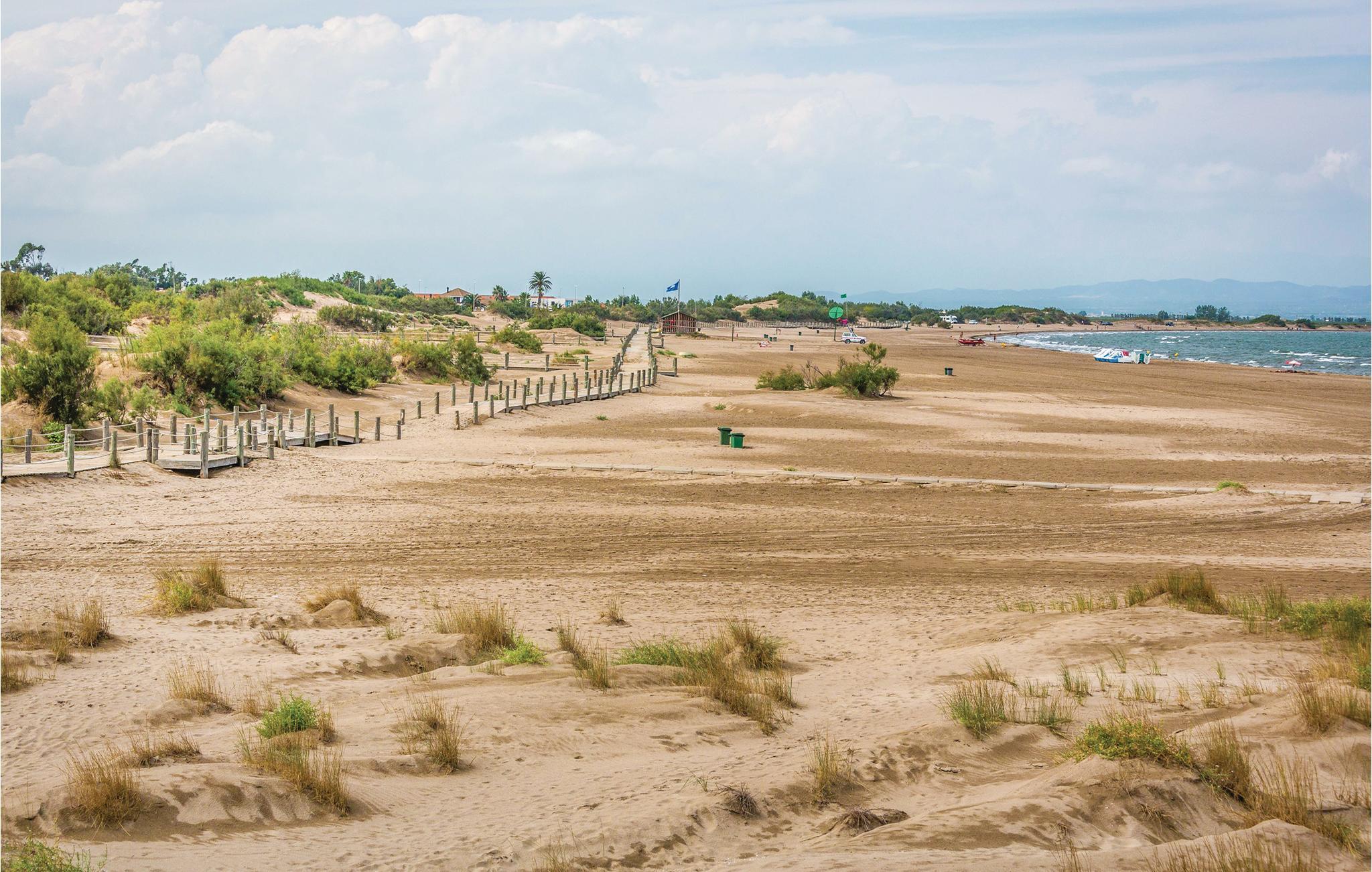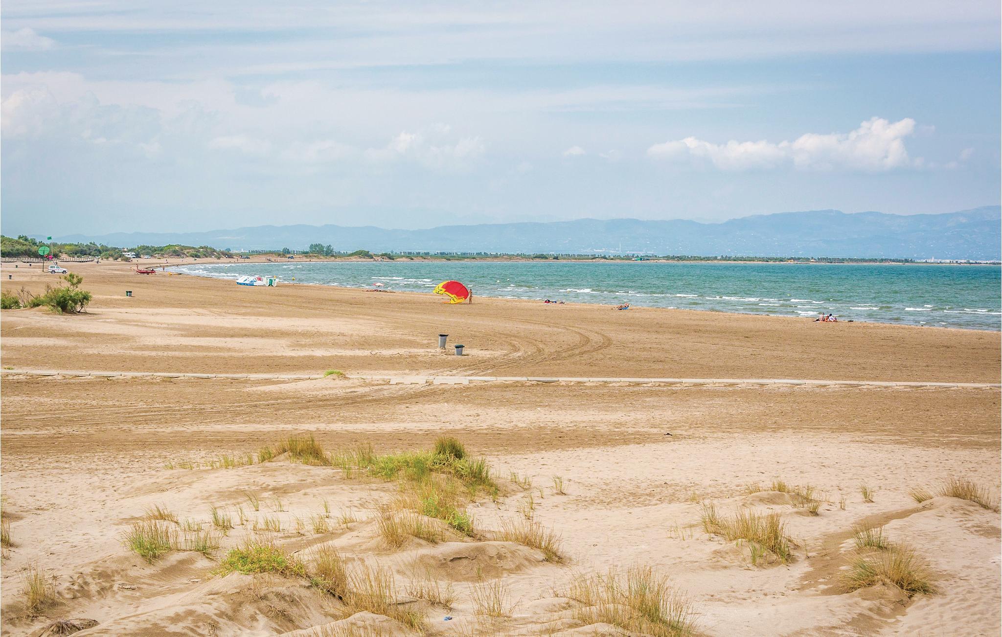 Det privilegerte boligområdet ligger i naturparken Delta de l Ebre, bare 190 meter fra stranden. En gangvei i tre fører over de vidunderlig romantiske sanddynene til sjøen. Den fine sandstranden med rolig og grunt vann er ideell for barnefamilier og ligger i et drømmeaktig naturlandskap som lover fred og avslapning. Her kan man nyte et bredt spekter av fritidsaktiviteter, som guidede turer gjennom deltaets beskyttede områder, vandre- og sykkelruter, kanopadling, roing, vindsurfing og jeepturer. En spesiell opplevelse er å fiske i Middelhavet eller Ebro, med mulighet til å prøve forskjellige typer fiske, som vanligvis er kronet med suksess på grunn av den store mengden fisk. Et sterkt anbefalt og interessant feriemål for de beste dagene og ukene i året!