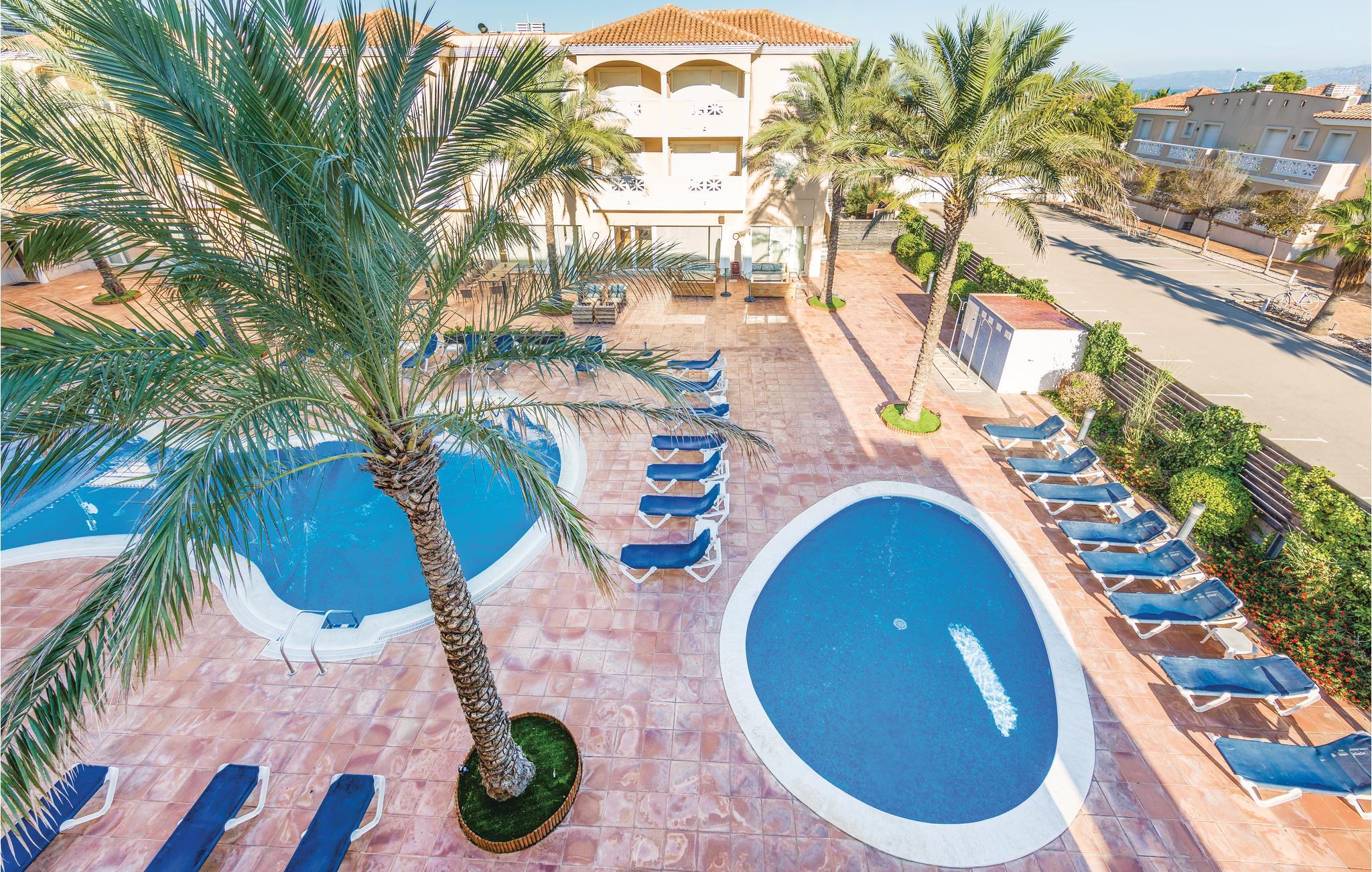 Dette familievennlige feriekomplekset består av totalt 40 boenheter, hver med 35 leiligheter med 2 (EDO250) og 5 leiligheter med 3 (EDO251) soverom. Den moderne og smakfulle innredningen tilbyr all komfort for en herlig ferie. De to øverste etasjene har to heiser. Det U-formede komplekset omkranser det felles bassengområdet med et separat barnebasseng og en vakker solterrasse med komfortable solsenger. Restauranten ligger rett foran bassenget og tilbyr velsmakende middelhavsmat. Halvpensjon kan bestilles på stedet til rimelige priser.