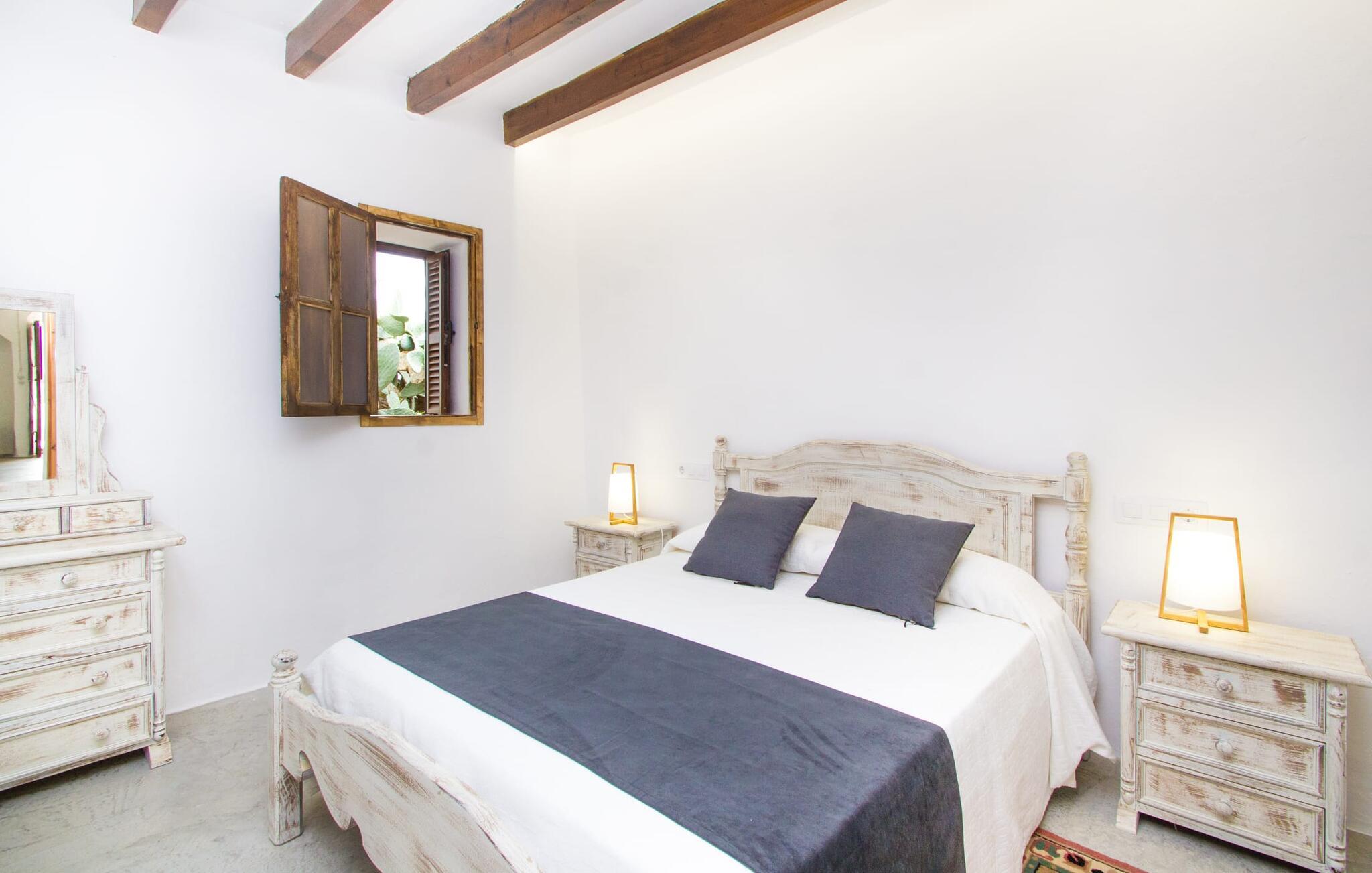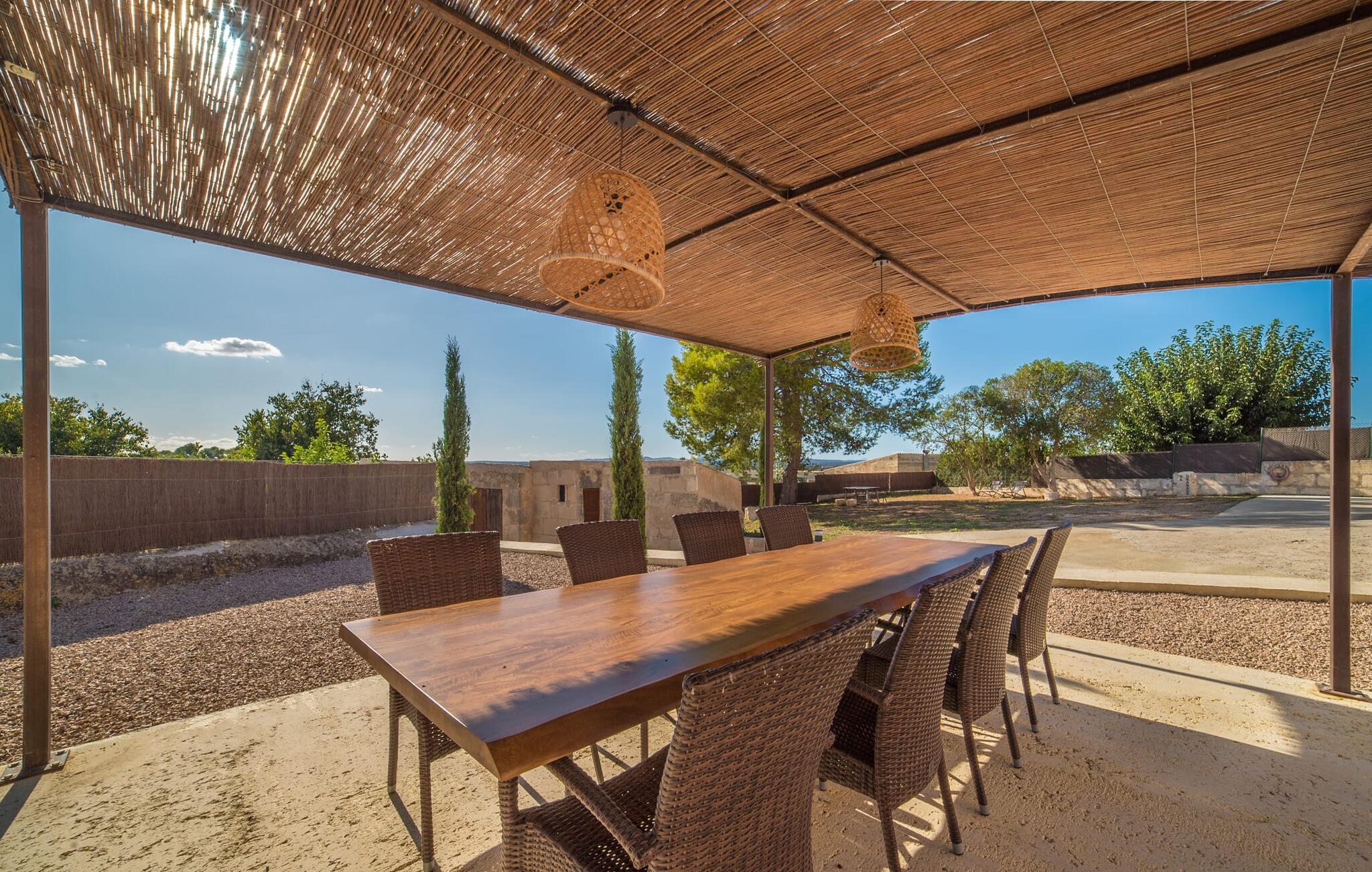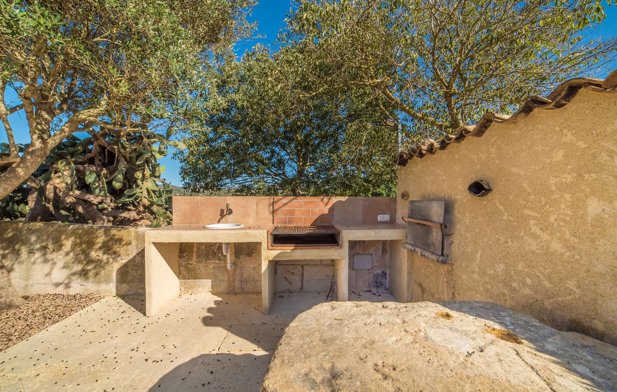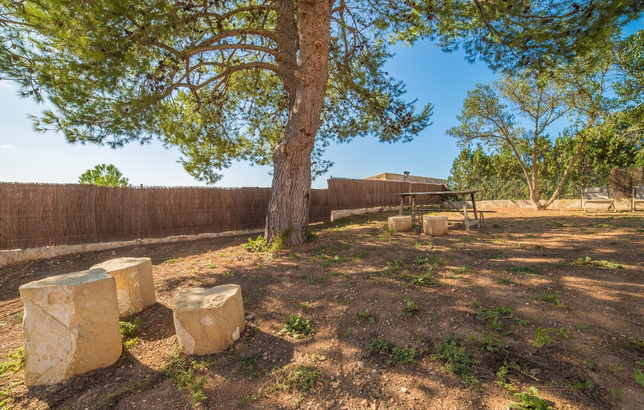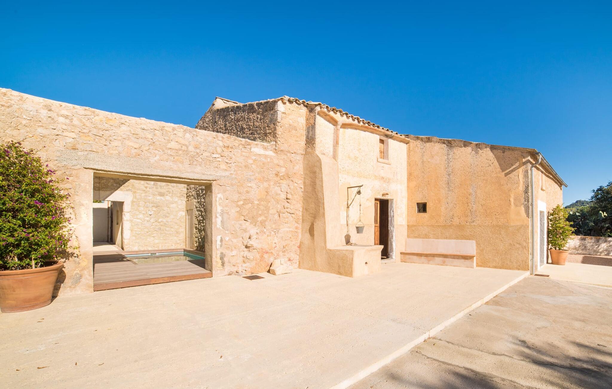Den vakre feriefincaen Son Granada ligger i det idylliske landskapet på den østlige delen av Mallorca. Her møter tradisjonell mallorcinsk arkitektur et elegant iscenesatt uteområde. Slapp av i det nøye utformede bassengområdet, som er skjermet for vinden og omgitt av høye sandsteinsmurer. Tregulv, stilfulle markiser, overdådige solsenger og en innbydende utedusj skaper en atmosfære som inviterer til total avslapning. Hagen er anlagt som en romslig terrasse: Naturstein og grus harmonerer med bygningens lyse naturstein. I midten av terrassen, som er smakfullt overbygd, er det en herlig spiseplass med tilstøtende utekjøkken og kullgrill - det perfekte stedet å nyte de varme sommerkveldene ved Middelhavet med venner og familie.