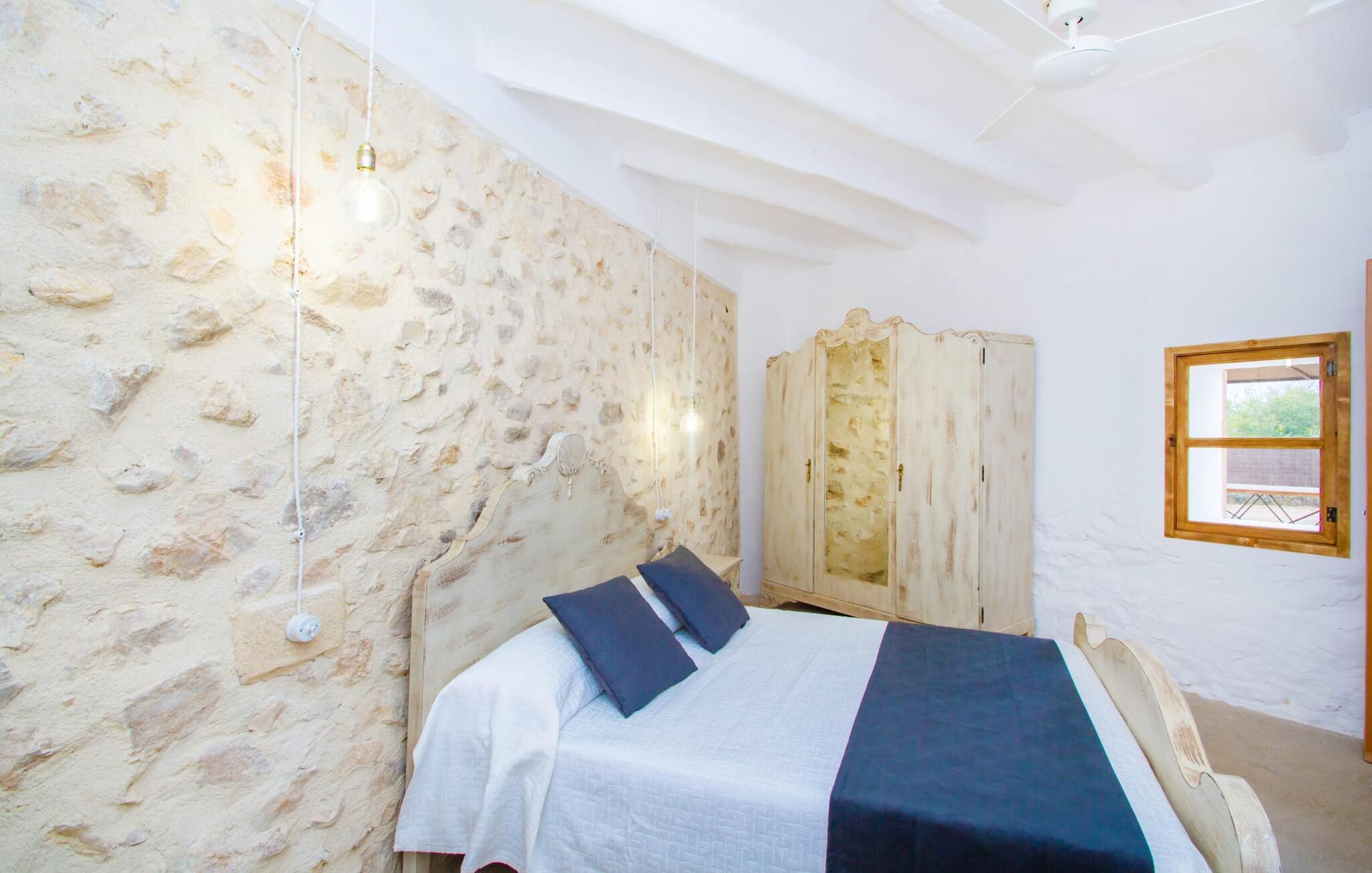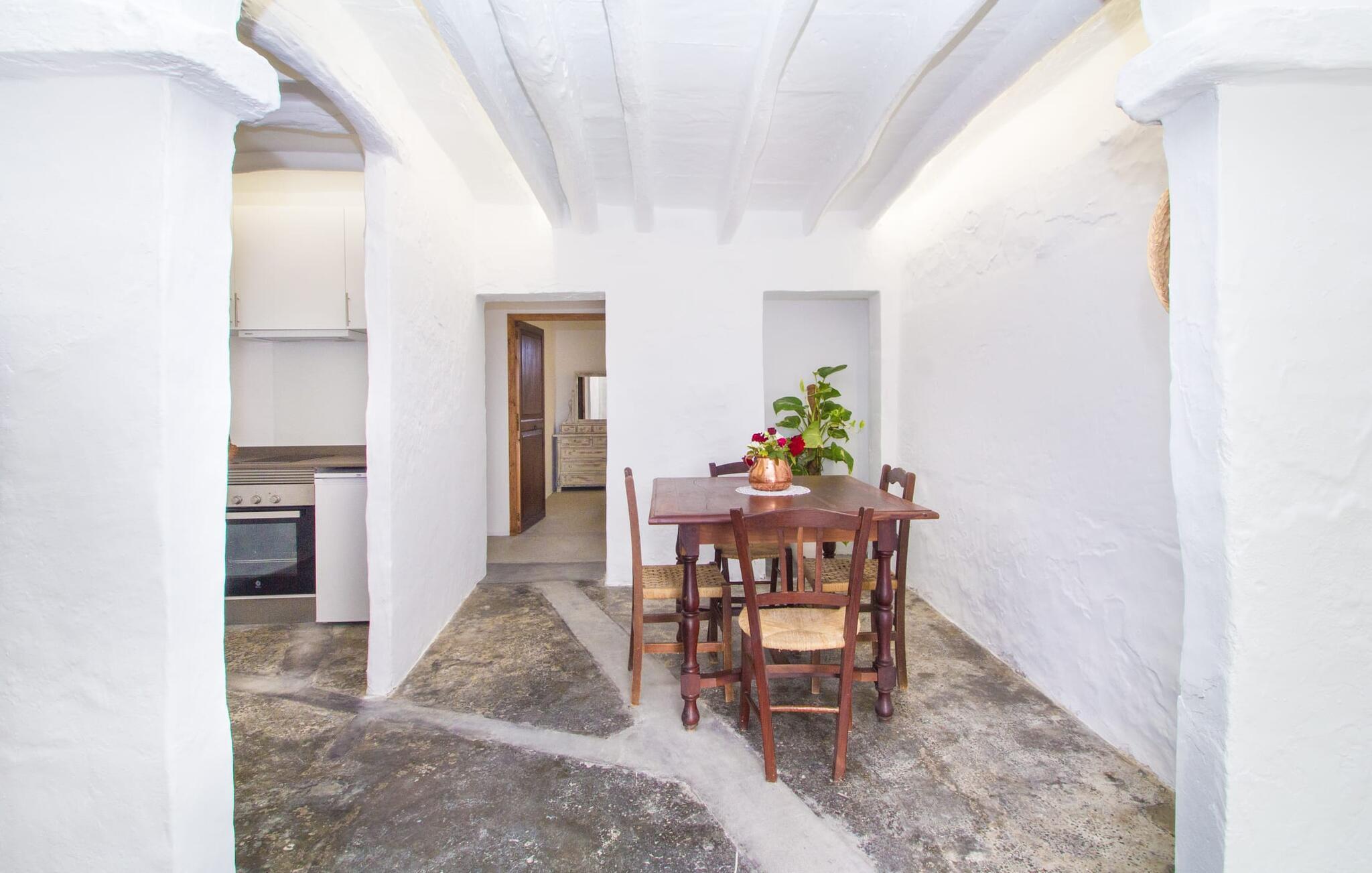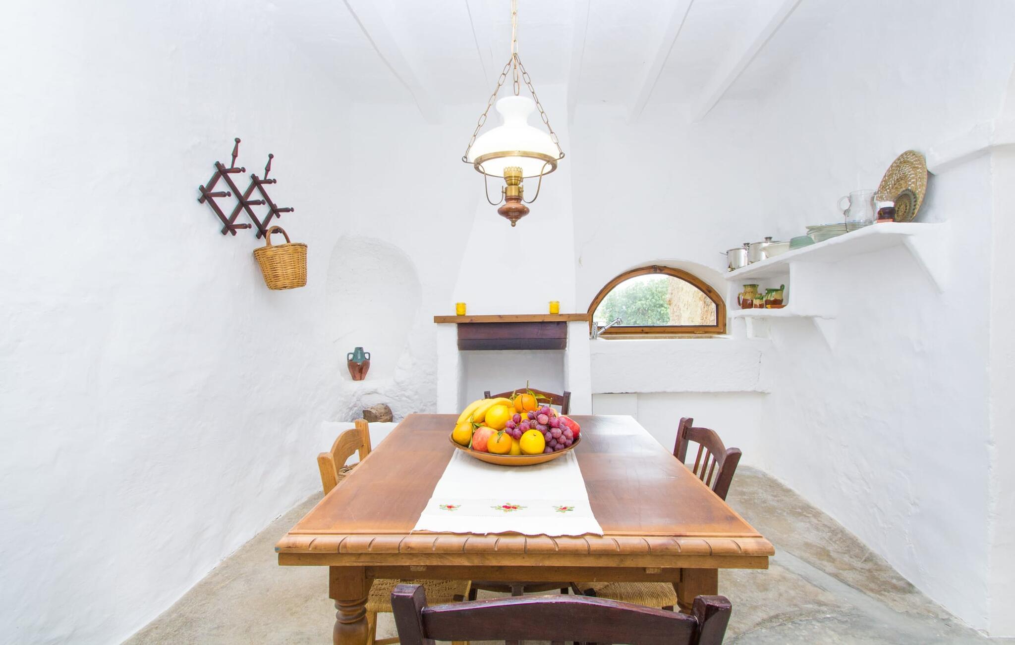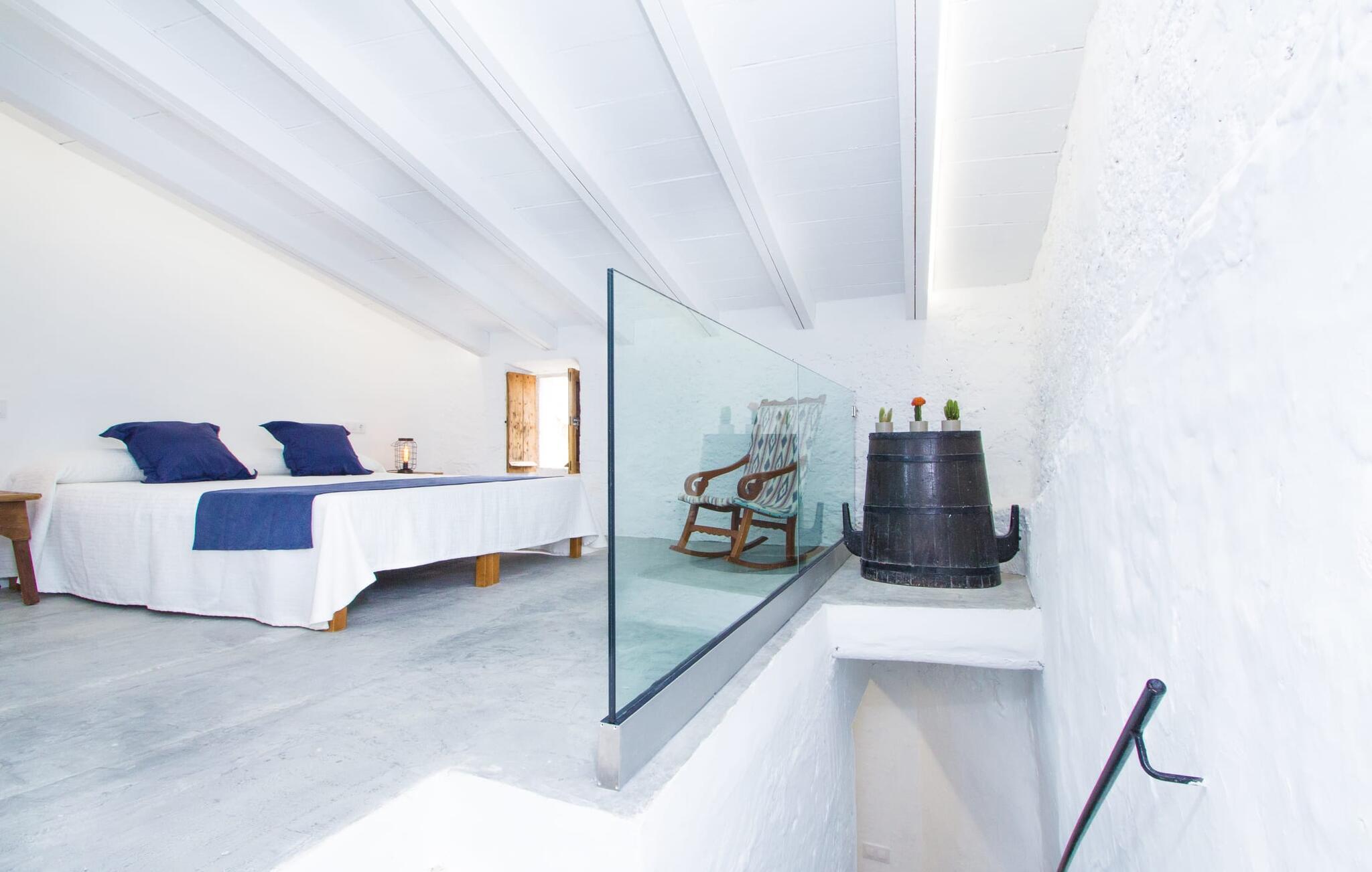 Det 215 m² store interiøret i gårdshuset, som ble bygget i 1850, er preget av en vellykket kombinasjon av originale elementer og moderne komfort. Rommene er behagelig kjølige selv ved høye temperaturer, og man har tilgang til dem via to separate innganger. I første etasje er det, i tillegg til oppholdsrommet med flere sittegrupper, en spiseplass med bord og to kjøkken, hvorav det ene har enda et spisebord. Fire av de fem soverommene ligger på bakkeplan, og på et galleri i øverste etasje er det ytterligere et soverom for to gjester med eget bad. På høyre side av huset er det to soverom for to personer hver, mens det på venstre side er et dobbeltrom og et enkeltrom. I begge områdene er det integrert moderne bad med store dusjkabinetter. Ett av rommene har en liten privat terrasse. Feriehuset er utstyrt med WLAN og stabilt mobildekning.