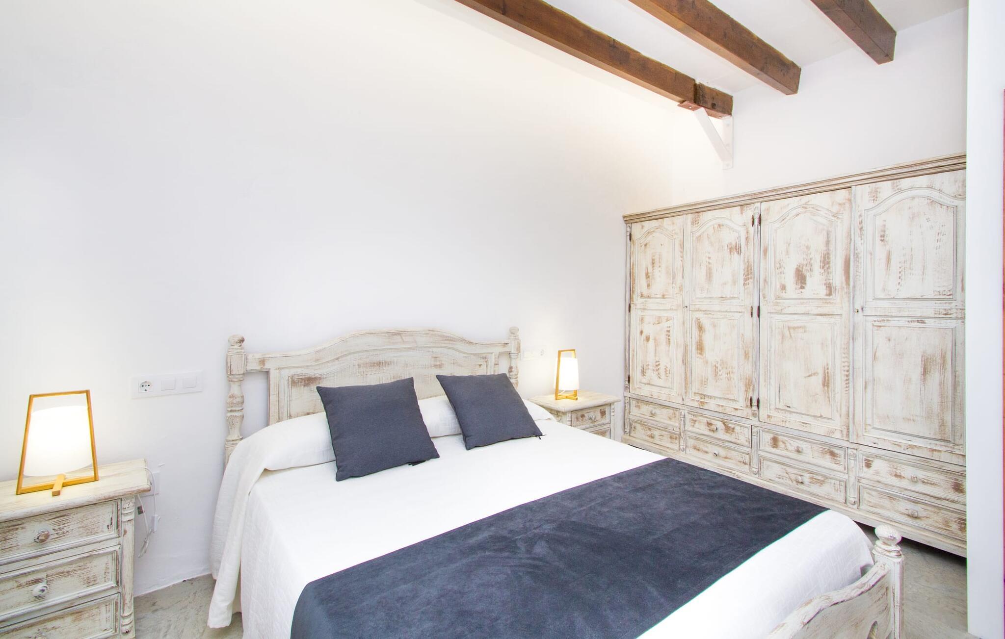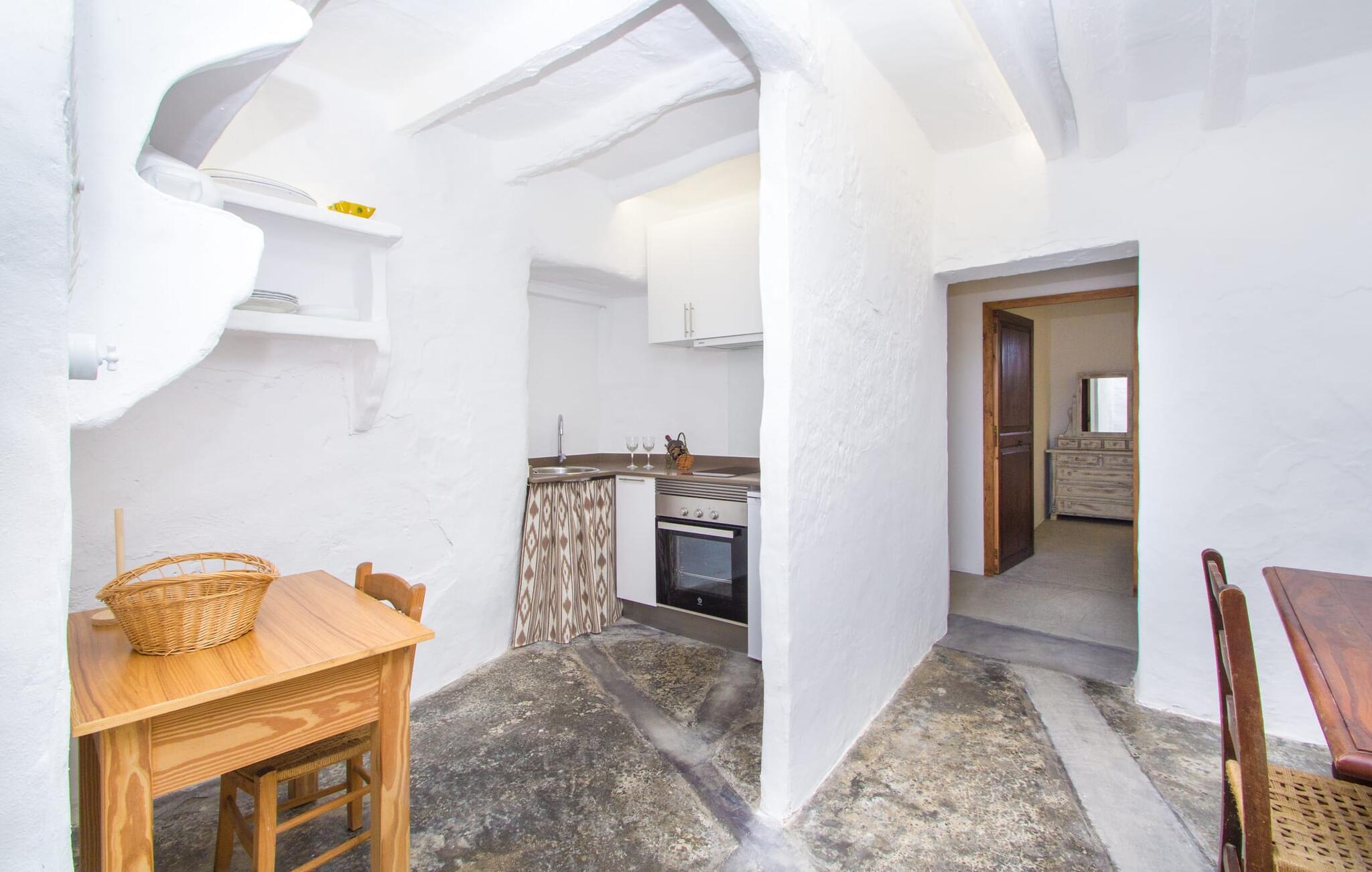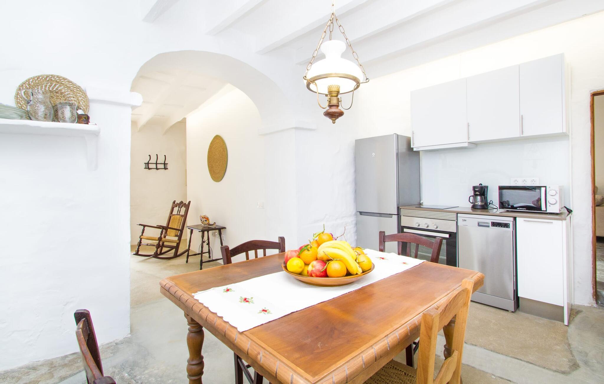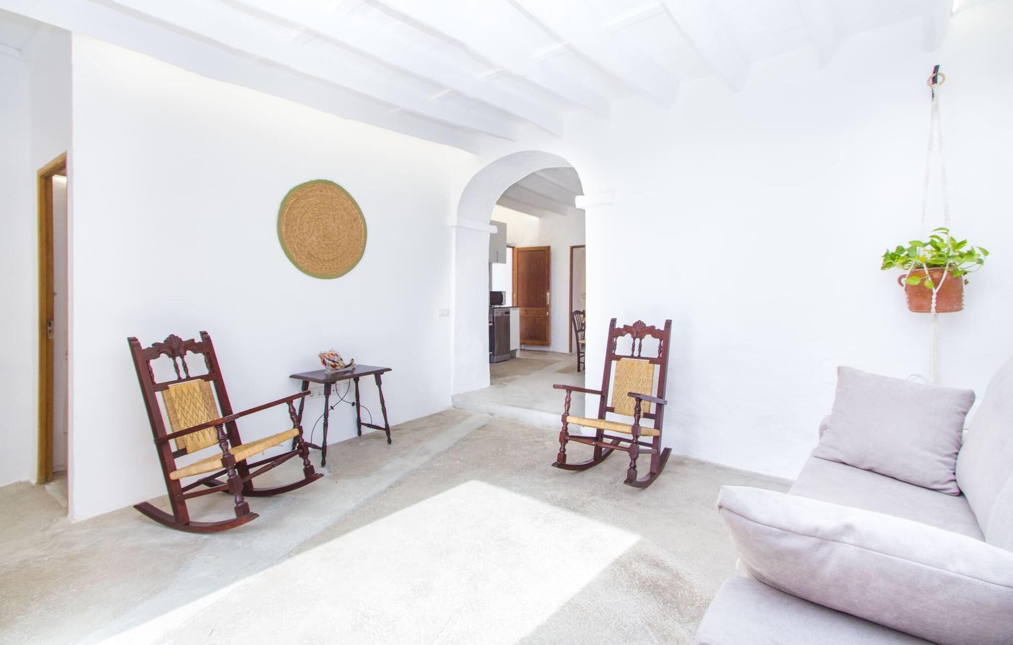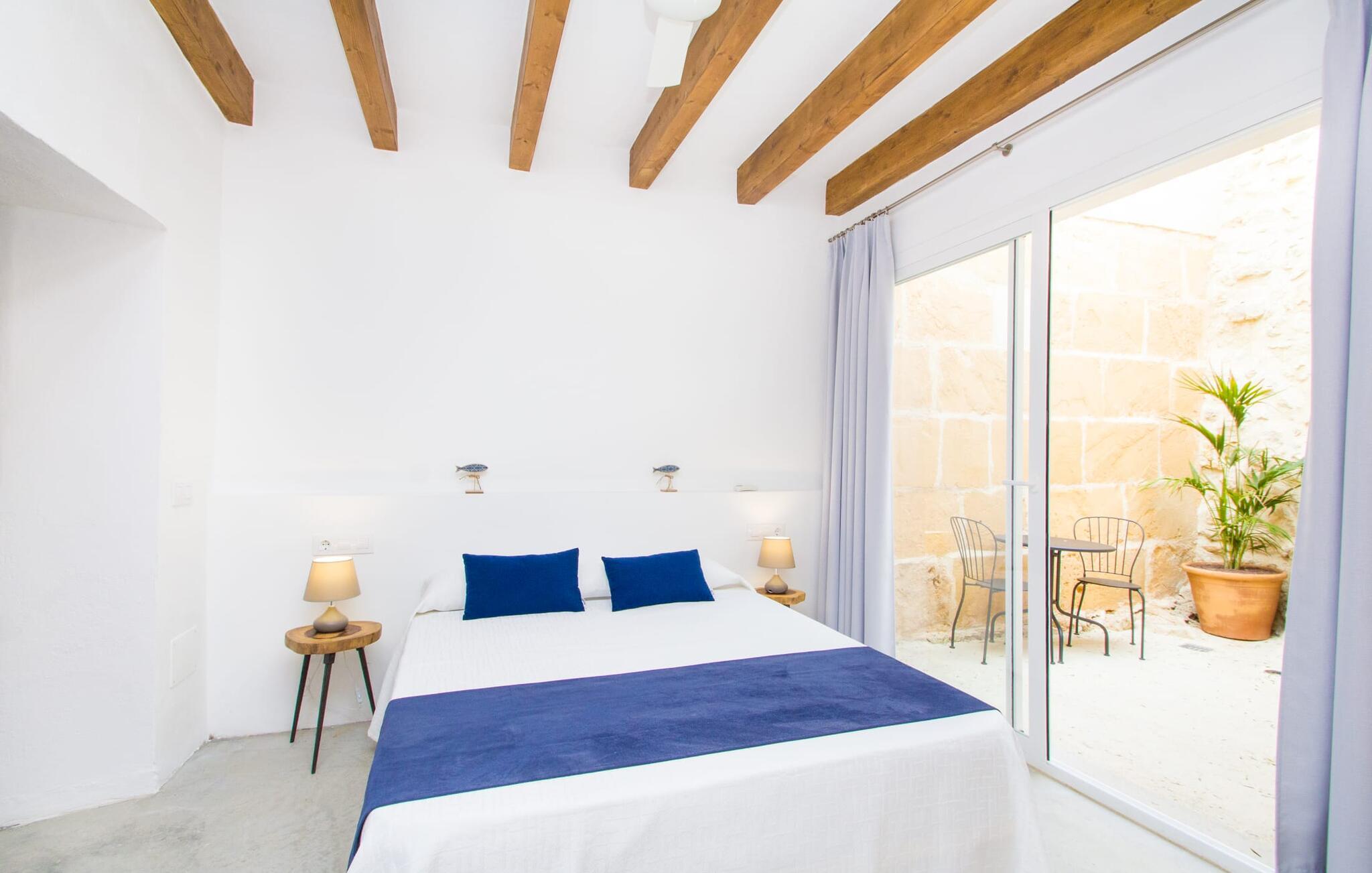 Det 215 m² store interiøret i gårdshuset, som ble bygget i 1850, er preget av en vellykket kombinasjon av originale elementer og moderne komfort. Rommene er behagelig kjølige selv ved høye temperaturer, og man har tilgang til dem via to separate innganger. I første etasje er det, i tillegg til oppholdsrommet med flere sittegrupper, en spiseplass med bord og to kjøkken, hvorav det ene har enda et spisebord. Fire av de fem soverommene ligger på bakkeplan, og på et galleri i øverste etasje er det ytterligere et soverom for to gjester med eget bad. På høyre side av huset er det to soverom for to personer hver, mens det på venstre side er et dobbeltrom og et enkeltrom. I begge områdene er det integrert moderne bad med store dusjkabinetter. Ett av rommene har en liten privat terrasse. Feriehuset er utstyrt med WLAN og stabilt mobildekning.