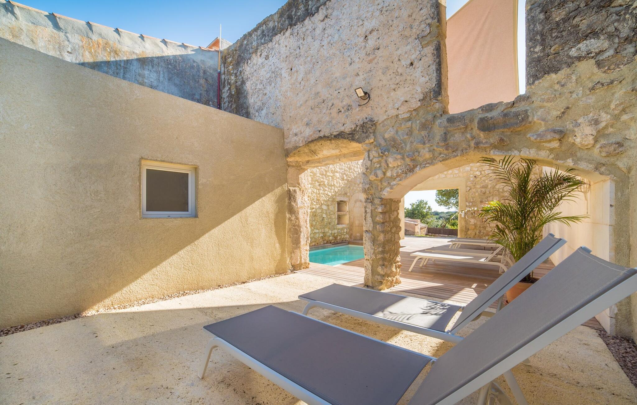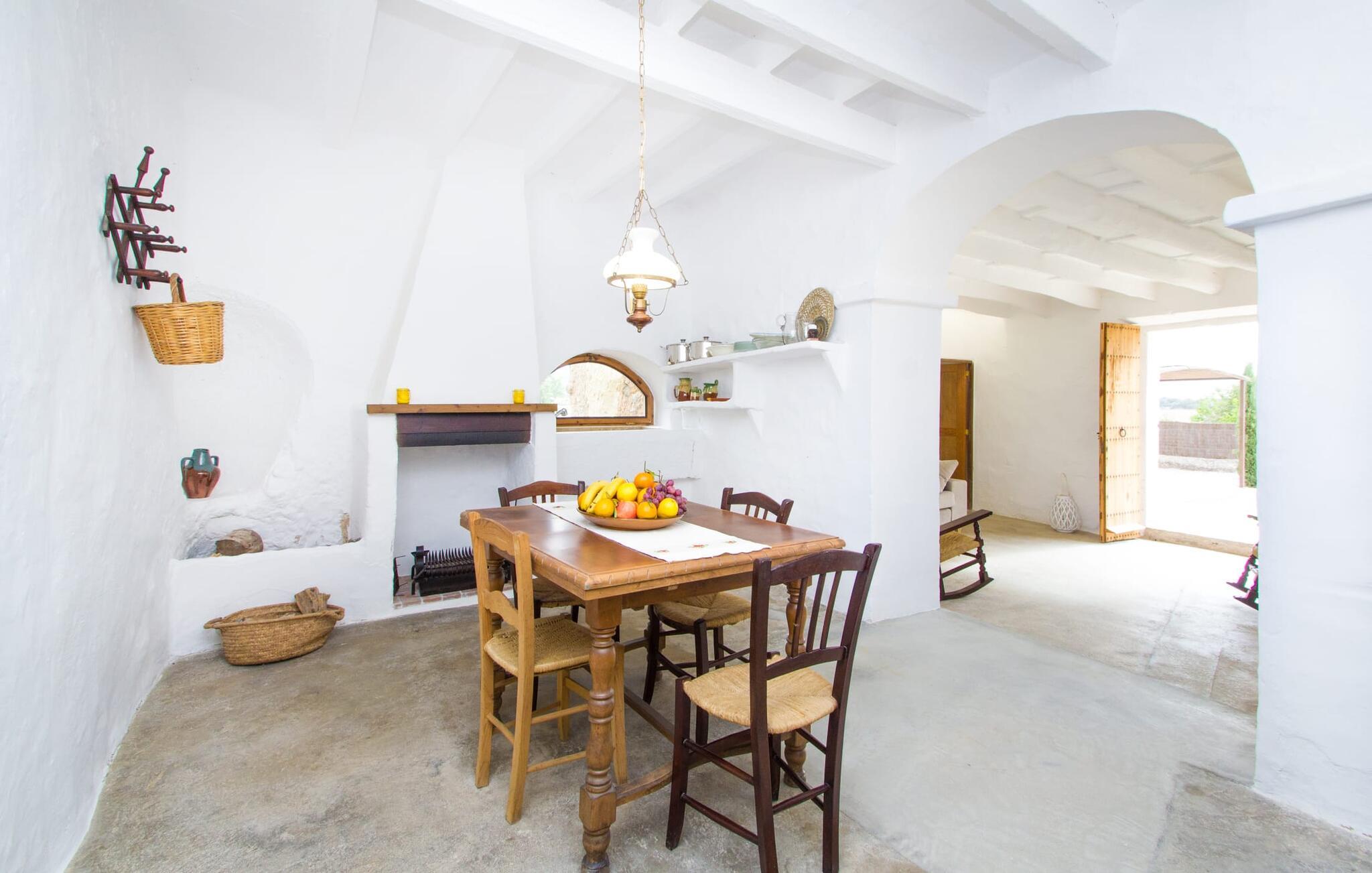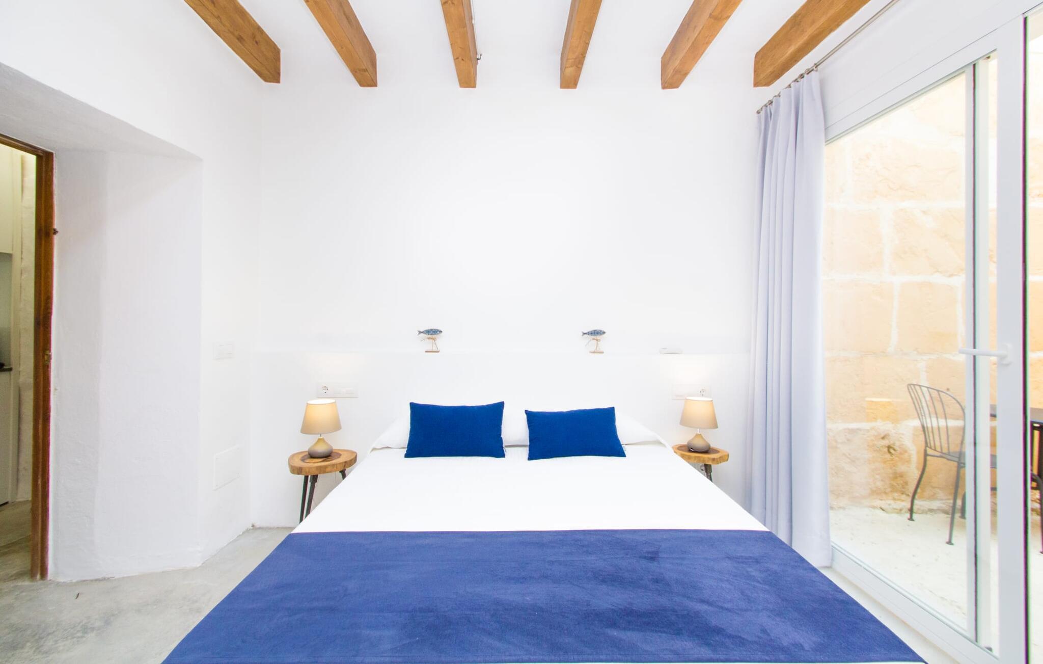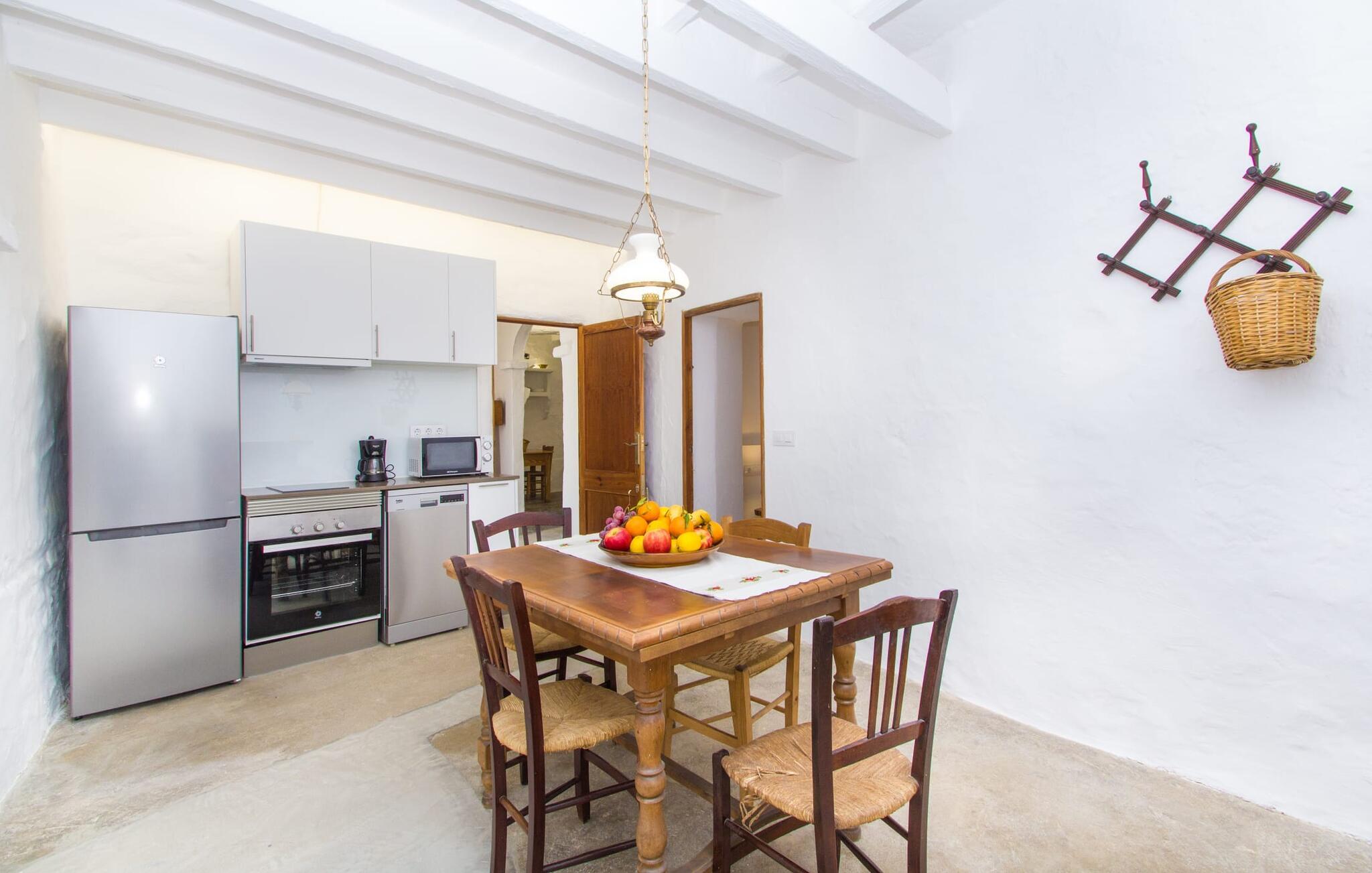 Det 215 m² store interiøret i gårdshuset, som ble bygget i 1850, er preget av en vellykket kombinasjon av originale elementer og moderne komfort. Rommene er behagelig kjølige selv ved høye temperaturer, og man har tilgang til dem via to separate innganger. I første etasje er det, i tillegg til oppholdsrommet med flere sittegrupper, en spiseplass med bord og to kjøkken, hvorav det ene har enda et spisebord. Fire av de fem soverommene ligger på bakkeplan, og på et galleri i øverste etasje er det ytterligere et soverom for to gjester med eget bad. På høyre side av huset er det to soverom for to personer hver, mens det på venstre side er et dobbeltrom og et enkeltrom. I begge områdene er det integrert moderne bad med store dusjkabinetter. Ett av rommene har en liten privat terrasse. Feriehuset er utstyrt med WLAN og stabilt mobildekning.