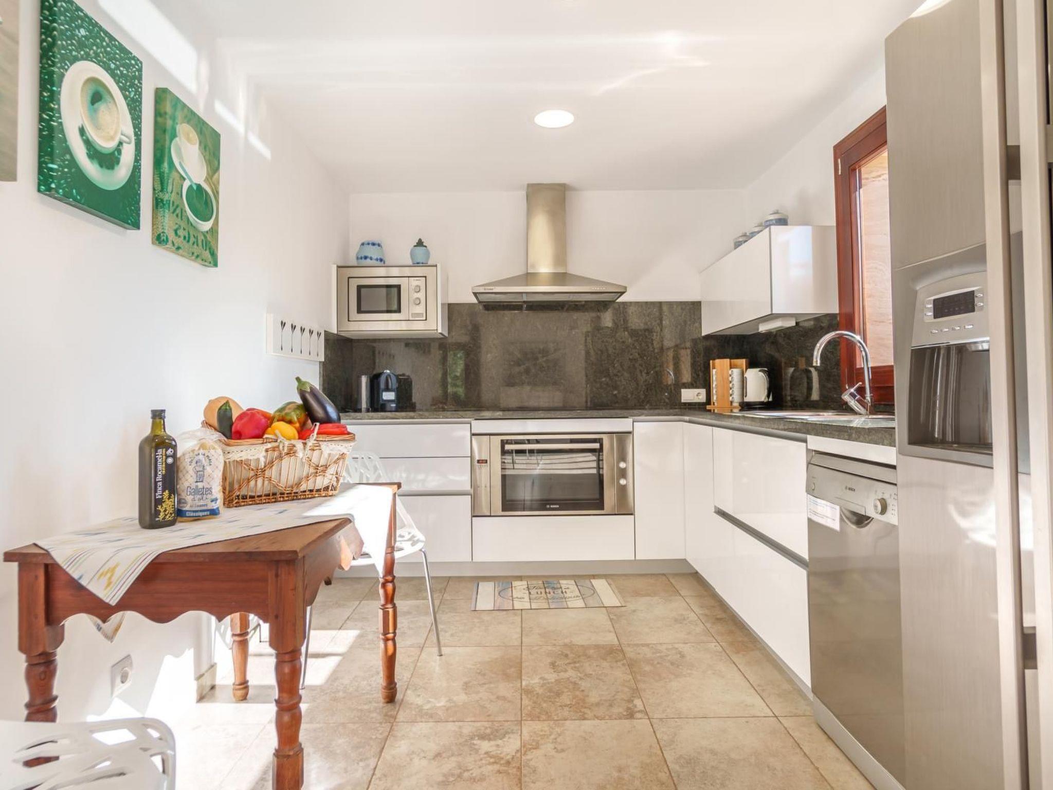 The villa offers approximately 213 m² of living space on two floors, a living room with satellite TV and dining area, a fully equipped kitchen with dishwasher, 4 bedrooms (2x double bed, 2x single beds) and 2 bathrooms and therefore enough space for up to 8 guests. The amenities also include WiFi internet, central air conditioning, a washing machine, a dryer and a baby bed and high chair.