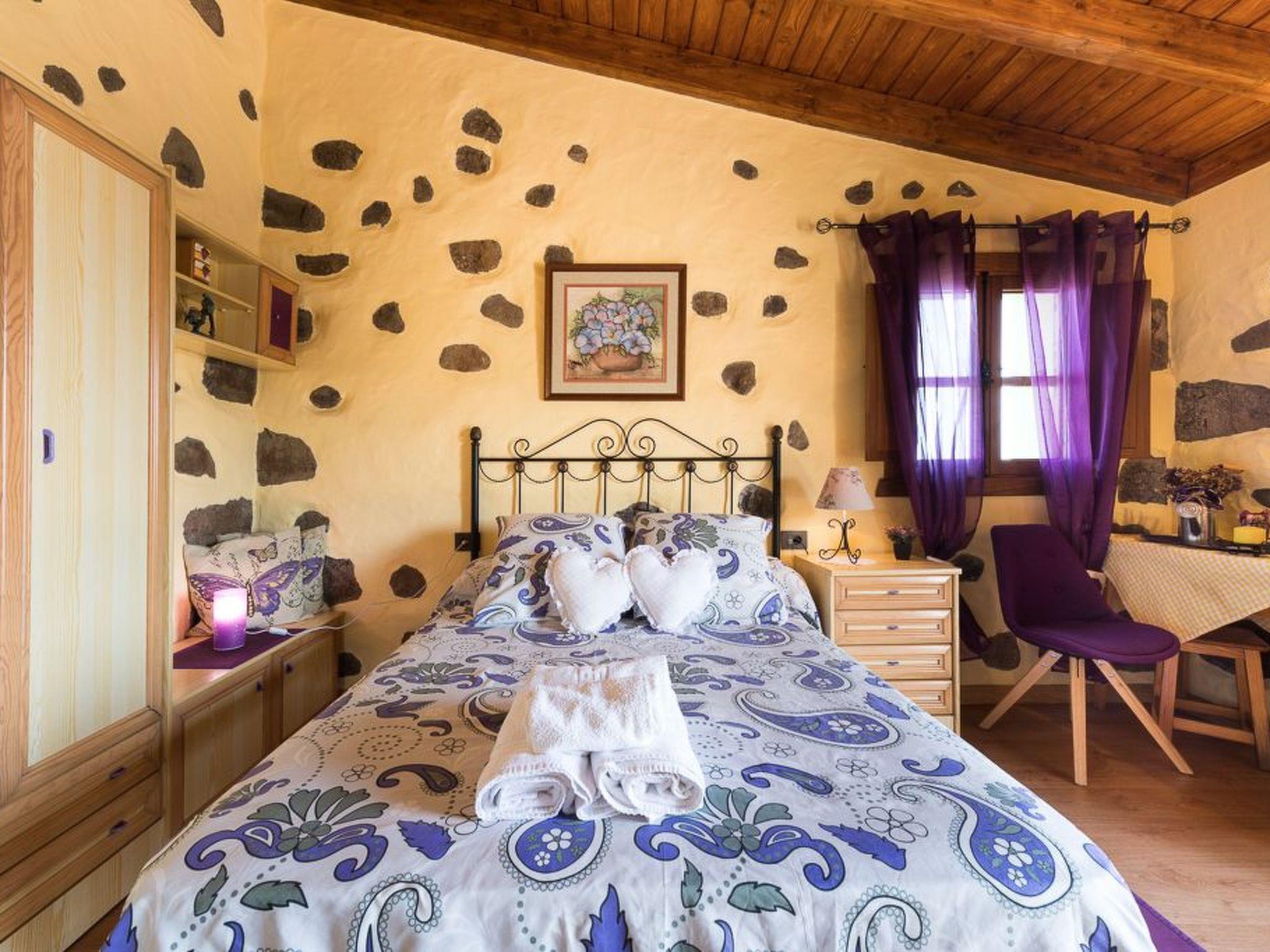 Old detached barn next to the swimming pool, restored as a charming and romantic suite with small kitchen and dining room. It is located 2.5 km from Fontanales, in the upper part of the Finca. From here there are beautiful panoramic views of the mountains of the islet and the sea, as well as a chestnut forest on the Finca. Ideal for couples. Optional Jacuzzi on request.