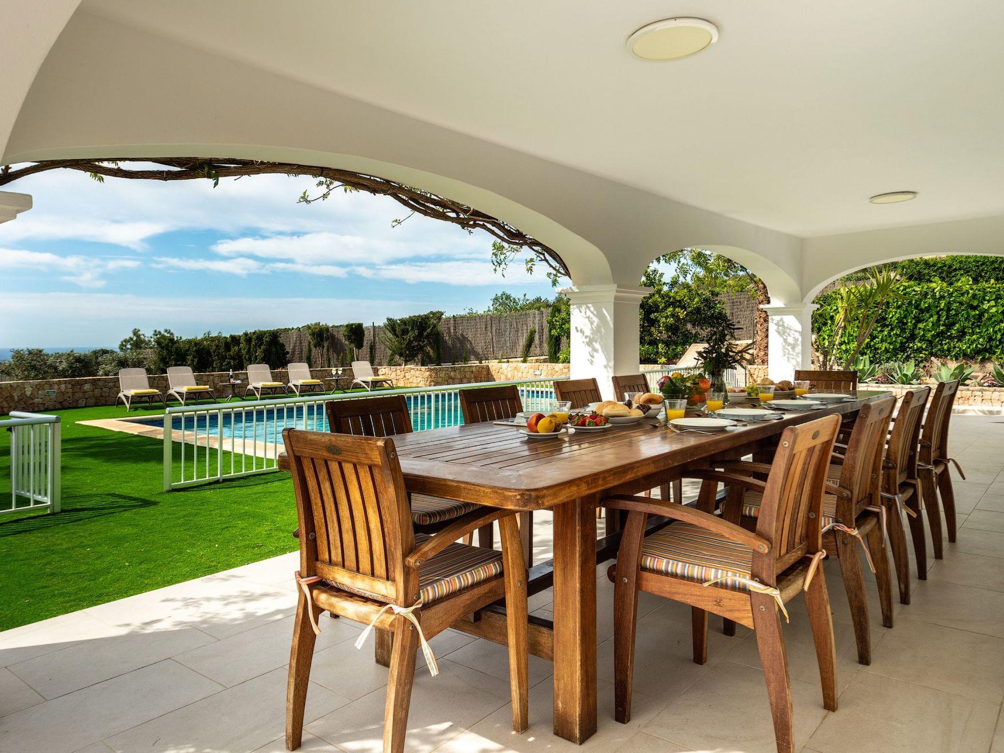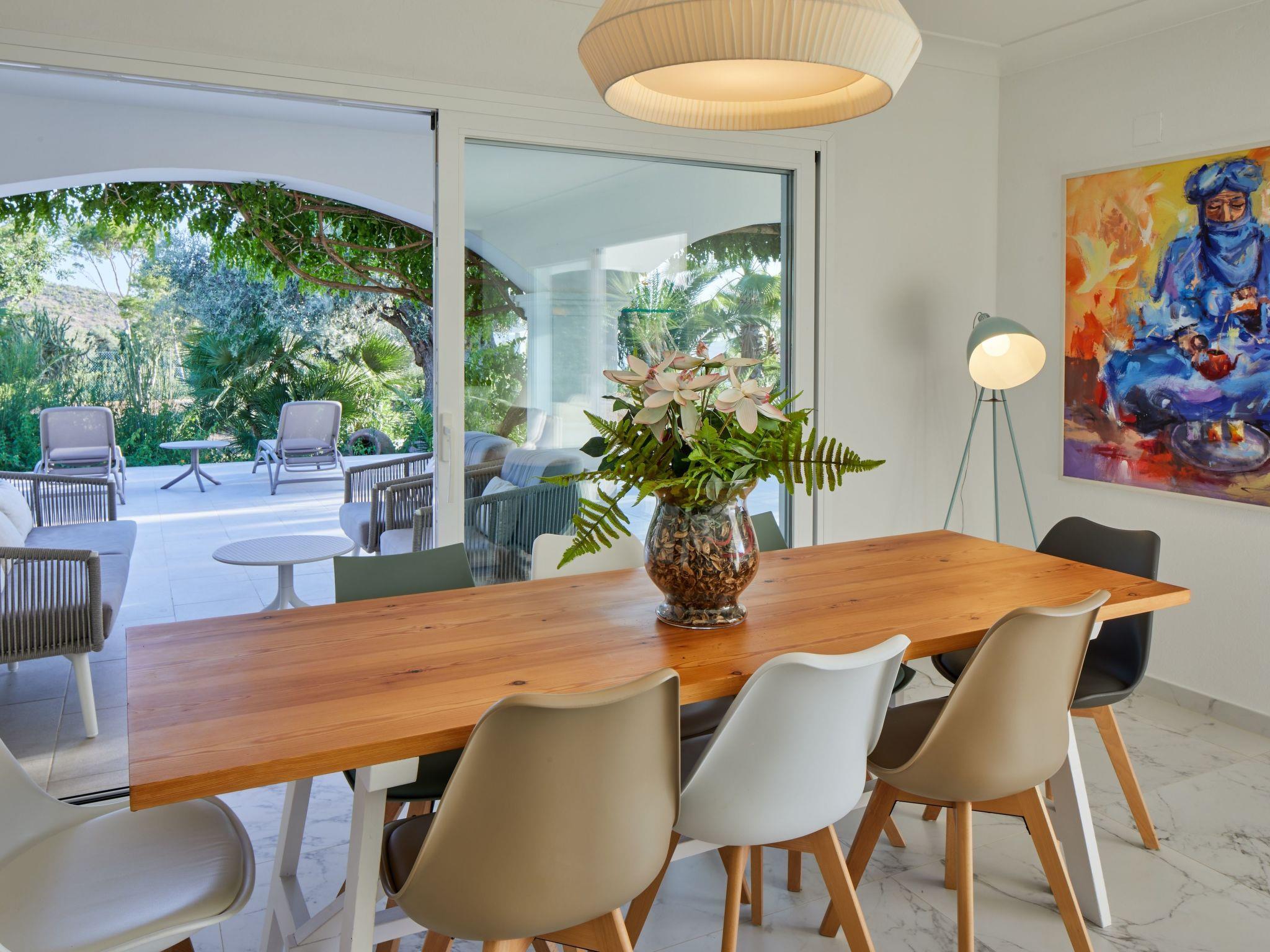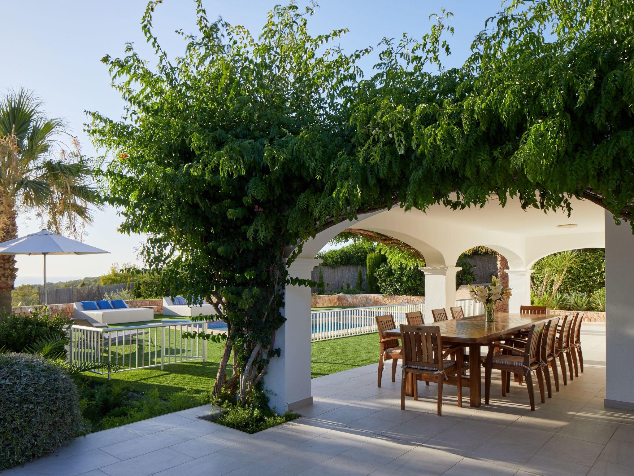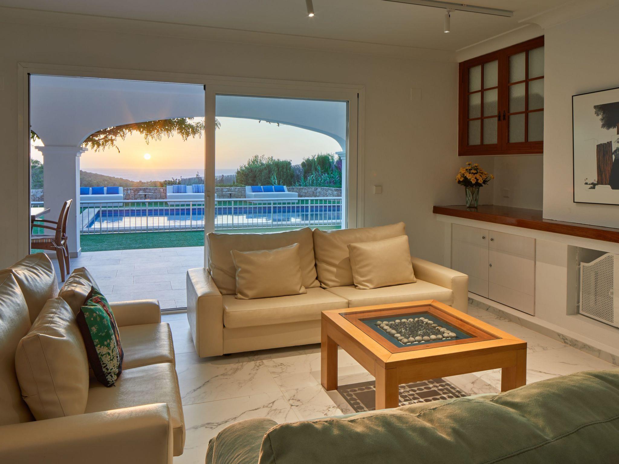 Villa of 300 m2, completely refurbished between 2021 and 2022. It has 4 double bedrooms (two bedrooms with double bed and two bedrooms with twin beds) with en-suite bathroom and 1 double bedroom and 1 bathroom, which can comfortably accommodate 8 adults. The villa has a fully equipped kitchen with high quality appliances, living-dining room with satellite TV and stereo system, which opens onto a large terrace with a shaded area for alfresco dining, with a large table for 12 guests. The private swimming pool, which is enclosed by a railing as a safety measure for children, has sun loungers and lounge chairs to enjoy the fantastic sunset views. In the beautiful gardens there is an outdoor barbecue, oven and seating area, with toilet and shower. Children welcome. Pets are not allowed.