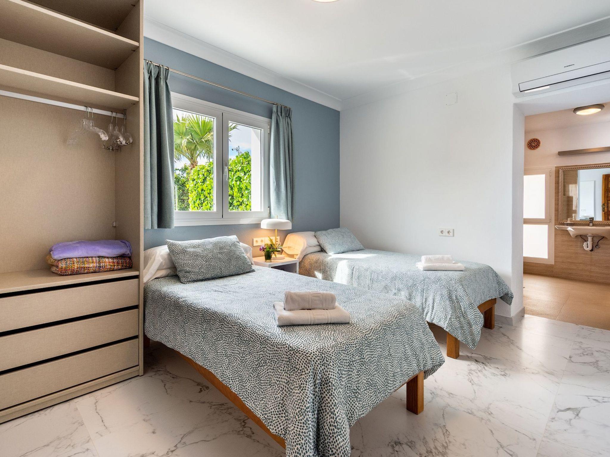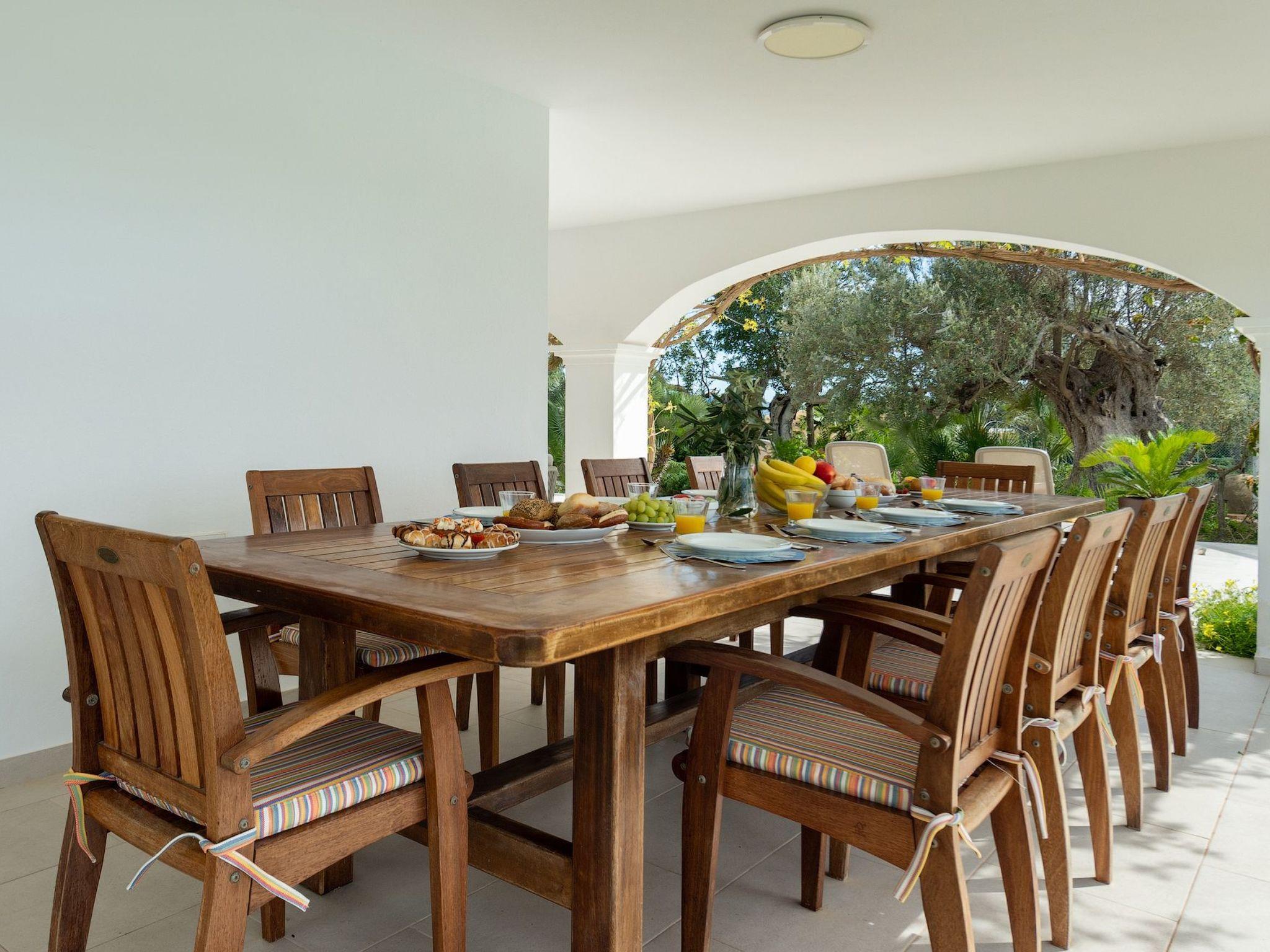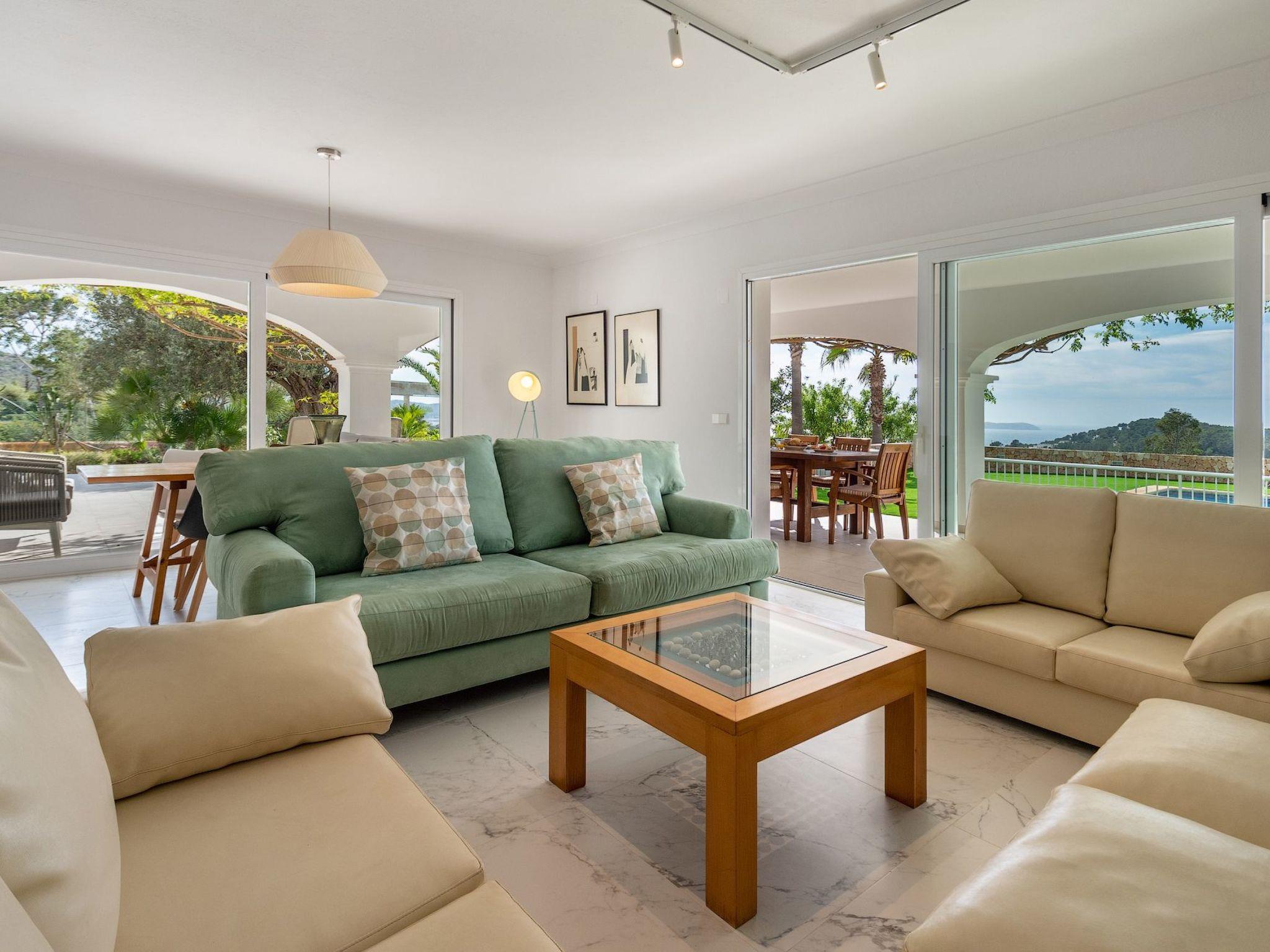 Villa of 300 m2, completely refurbished between 2021 and 2022. It has 4 double bedrooms (two bedrooms with double bed and two bedrooms with twin beds) with en-suite bathroom and 1 double bedroom and 1 bathroom, which can comfortably accommodate 8 adults. The villa has a fully equipped kitchen with high quality appliances, living-dining room with satellite TV and stereo system, which opens onto a large terrace with a shaded area for alfresco dining, with a large table for 12 guests. The private swimming pool, which is enclosed by a railing as a safety measure for children, has sun loungers and lounge chairs to enjoy the fantastic sunset views. In the beautiful gardens there is an outdoor barbecue, oven and seating area, with toilet and shower. Children welcome. Pets are not allowed.