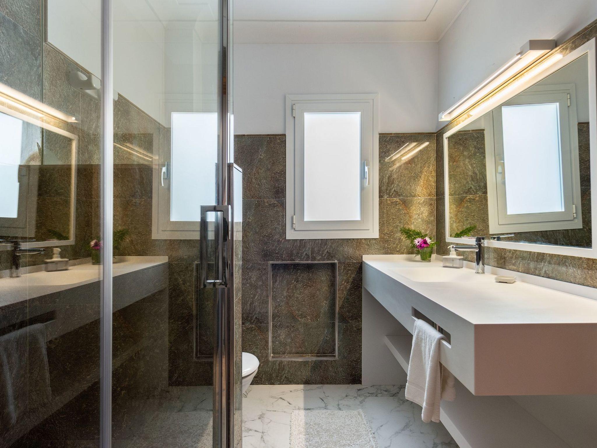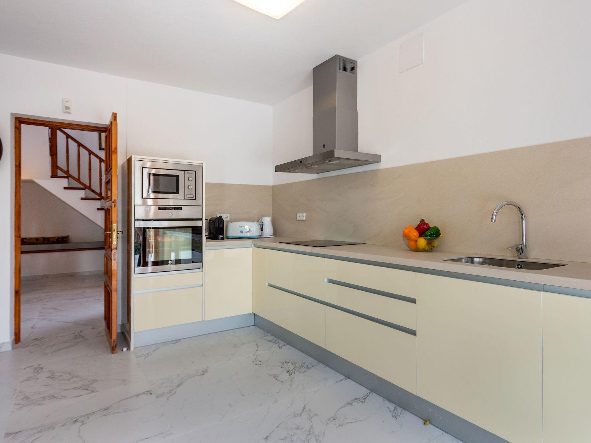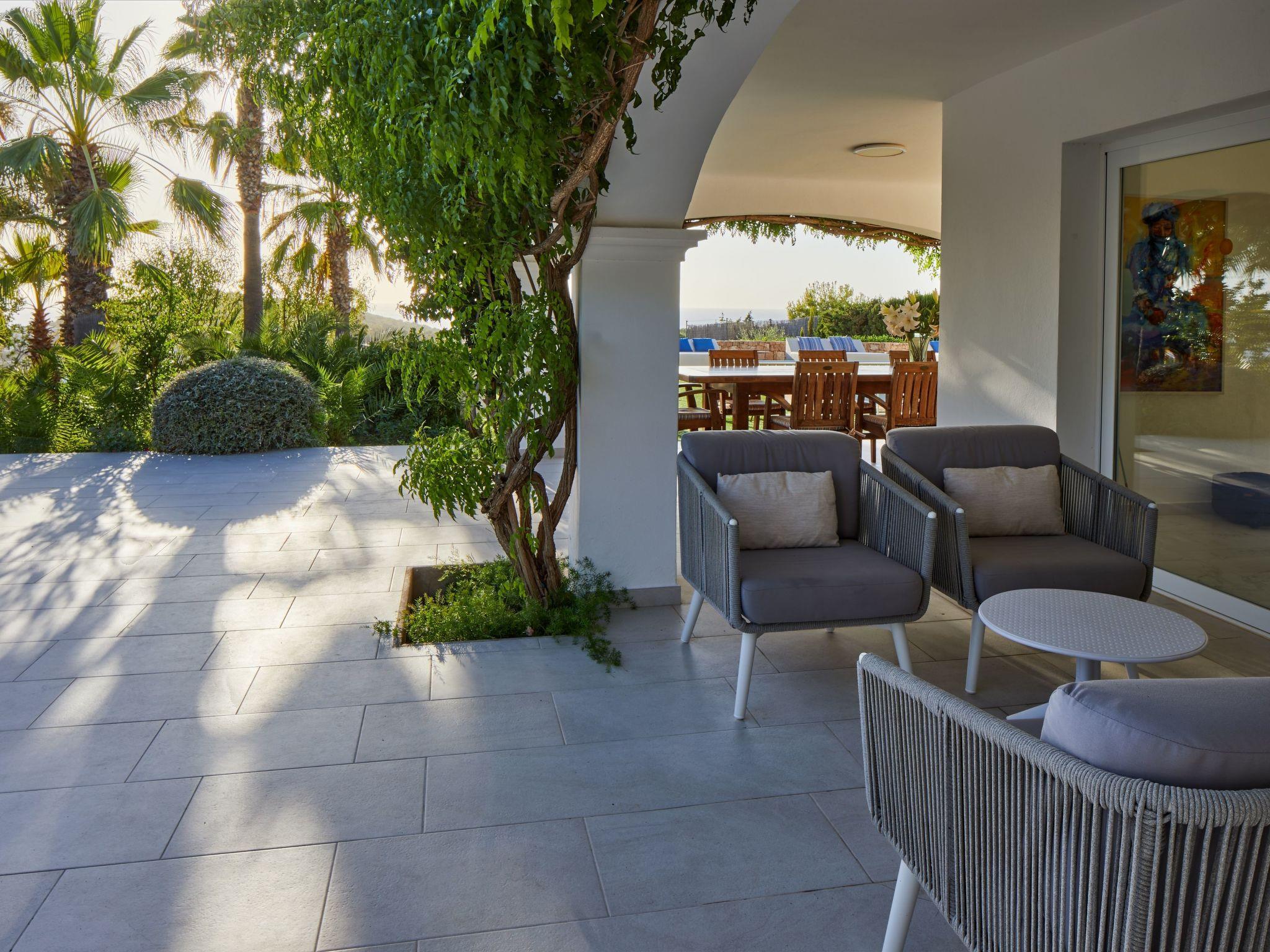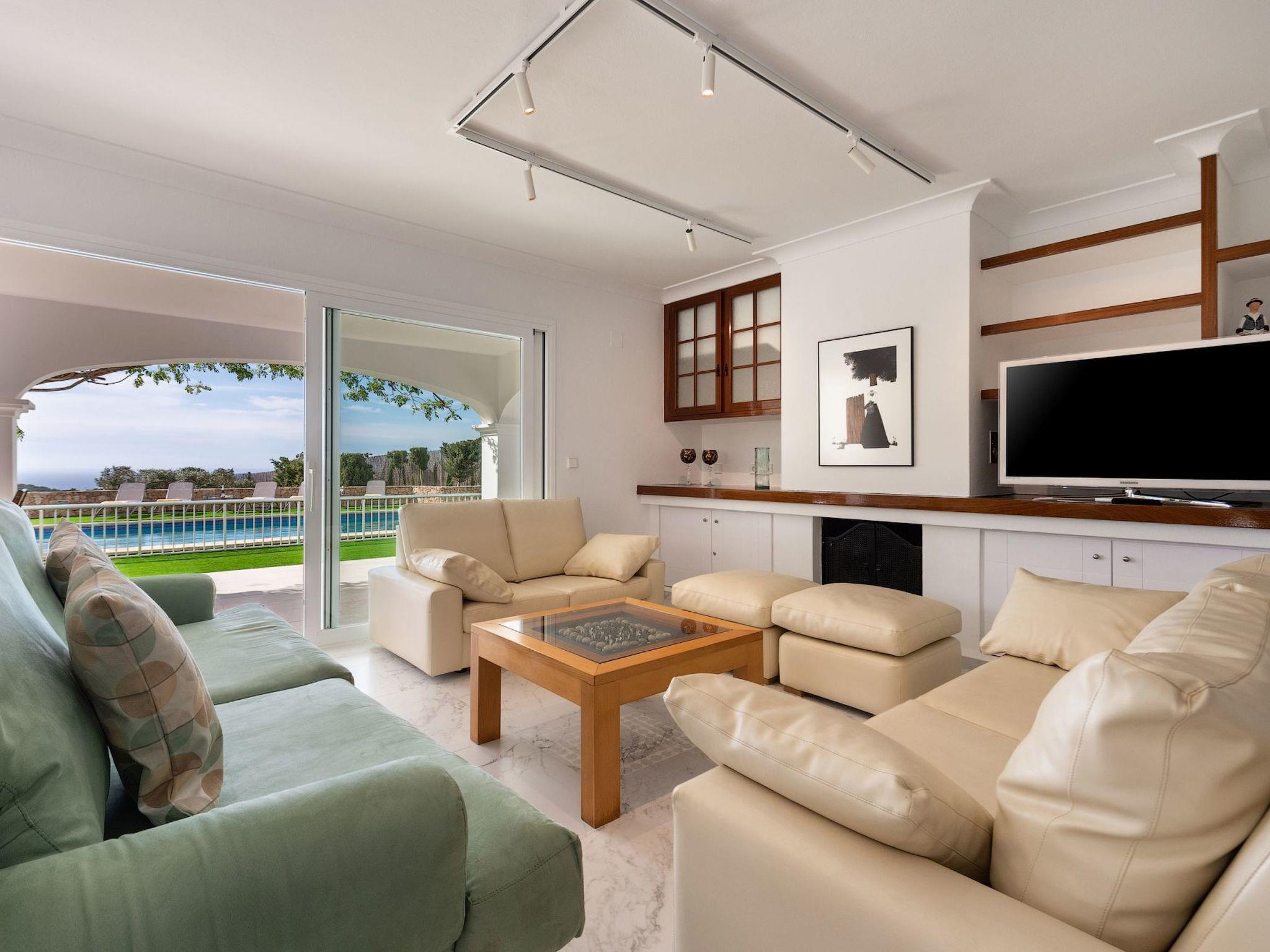 Villa of 300 m2, completely refurbished between 2021 and 2022. It has 4 double bedrooms (two bedrooms with double bed and two bedrooms with twin beds) with en-suite bathroom and 1 double bedroom and 1 bathroom, which can comfortably accommodate 8 adults. The villa has a fully equipped kitchen with high quality appliances, living-dining room with satellite TV and stereo system, which opens onto a large terrace with a shaded area for alfresco dining, with a large table for 12 guests. The private swimming pool, which is enclosed by a railing as a safety measure for children, has sun loungers and lounge chairs to enjoy the fantastic sunset views. In the beautiful gardens there is an outdoor barbecue, oven and seating area, with toilet and shower. Children welcome. Pets are not allowed.