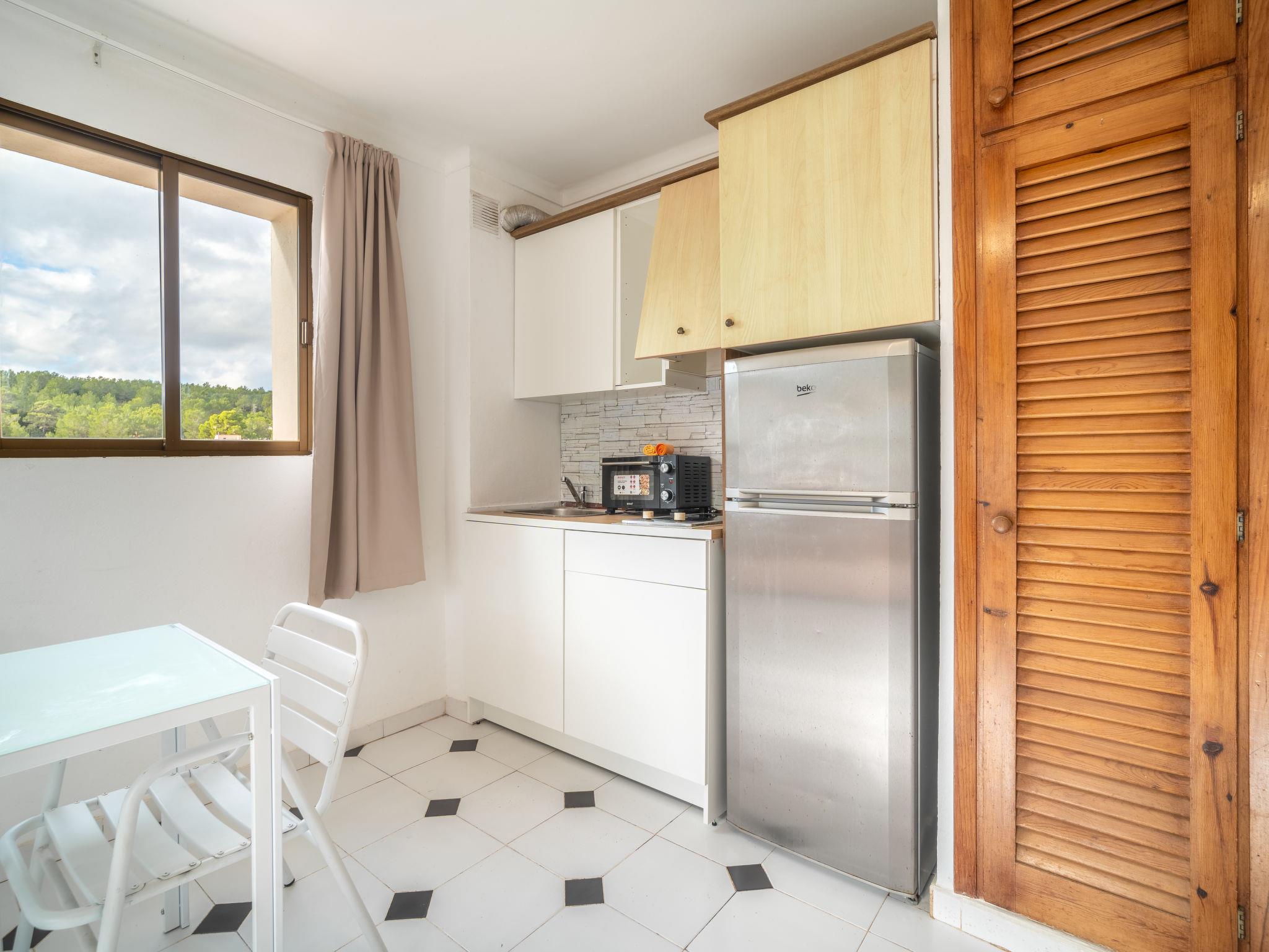 "Es Grop", 3-room apartment 70 m2. Object suitable for 4 adults. Simple furnishings: living/dining room with 1 bed (90 cm, length 190 cm), air conditioning and forced-air heating. Exit to the balcony. 1 room with 1 bed (90 cm, length 190 cm), 1 french bed (1 x 135 cm, length 190 cm), satellite TV. 1 small room with 1 bed (90 cm, length 190 cm). Kitchen-/living room (mini-oven, oven, 2 ceramic glass hob hotplates, toaster, microwave, electric coffee machine). Bath/WC. Natural stone floors. Terrace furniture. No view. Facilities: baby cot for up to 2 year olds, hair dryer. Internet (WiFi, free). Parking (fenced 10 cars). Suitable for families. AT/02033-APM